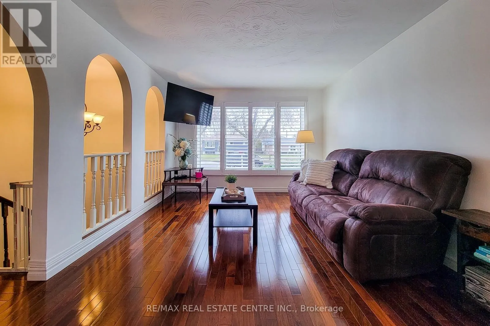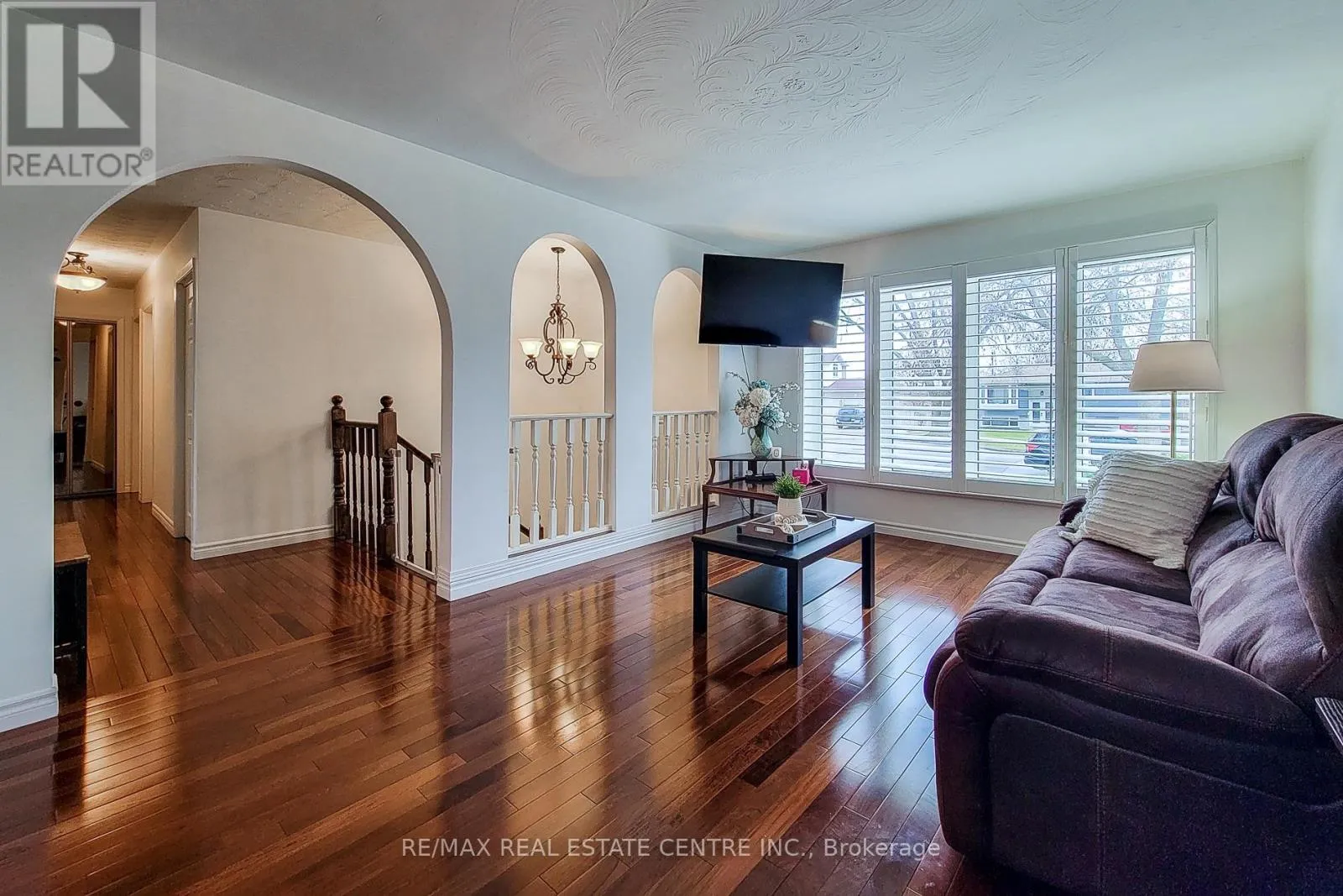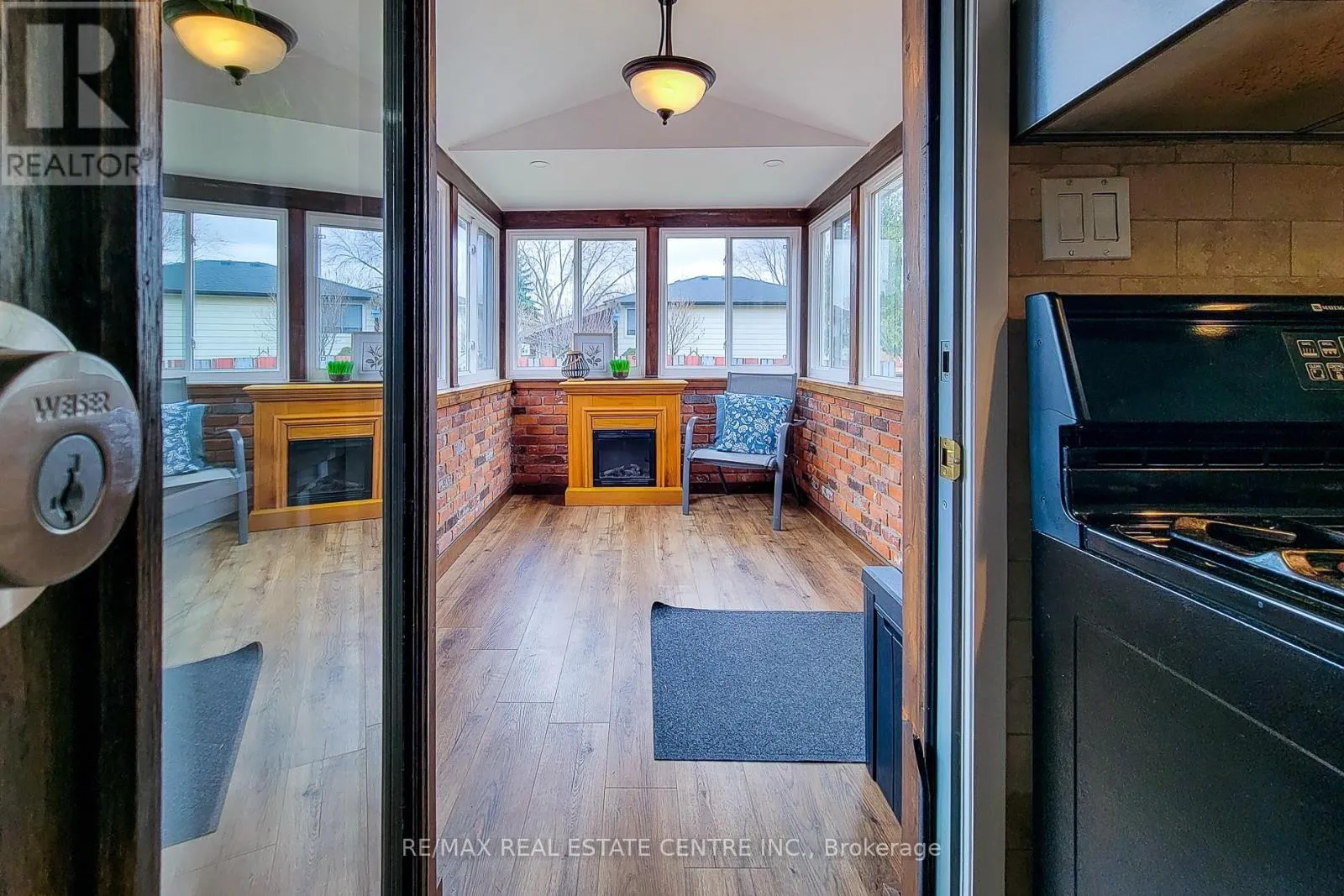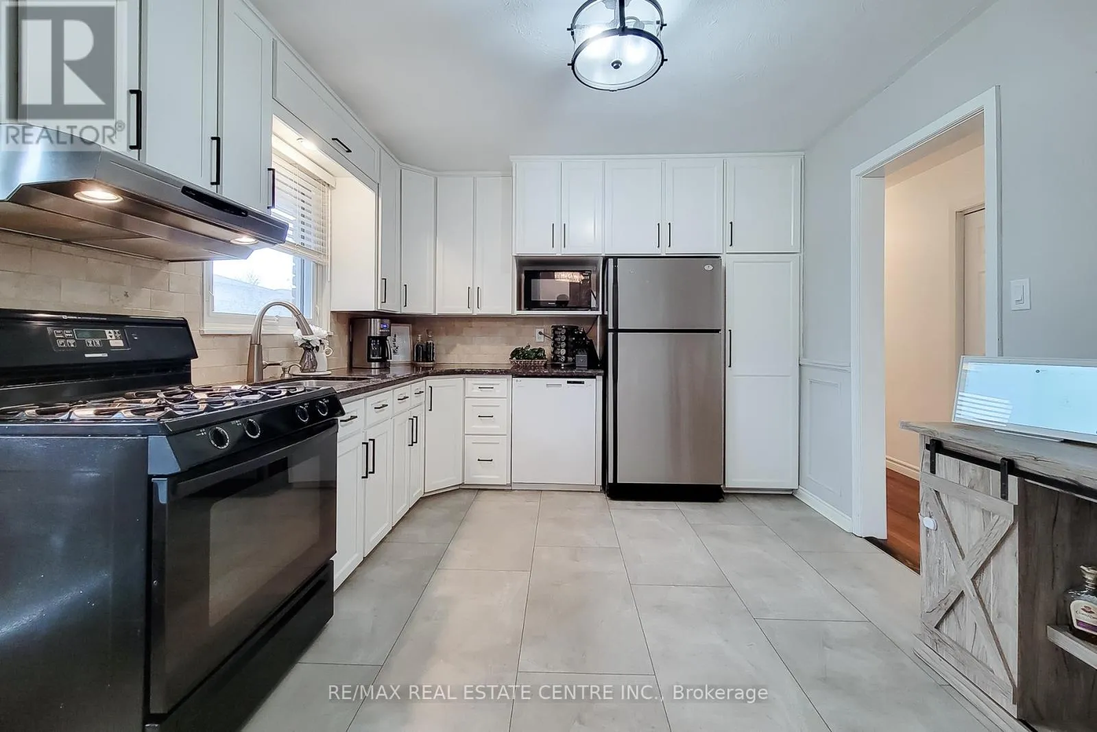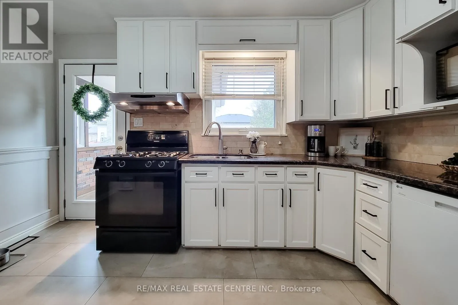 Cross Streets: Green & Carpenter. ** Directions: Green Road to Carpenter to Kingswood to Ashwood. Welcome to this beautifully maintained raised ranch bungalow nestled in a quiet, family-friendly court in desirable Stoney Creek-where kids play, neighbours connect, and lasting memories are made. Offering just over 1,150 sq ft of bright, functional living space, this home features gleaming hardwood floors, California shutters, and a spacious open-concept living and dining area filled with natural light from large windows. The updated kitchen includes a brand new dishwasher and flows seamlessly into a sunroom addition, creating the perfect space to relax and enjoy views of the backyard. The main level offers three generously sized bedrooms and beautifully updated bathrooms finished in a modern white palette with stylish black accents. The raised ranch design provides a bright, fully finished lower level featuring a cozy family room with a wood-burning fireplace, an additional bedroom or office space, laundry, and ample storage. The lower level bedroom offers flexibility and can be converted back to a garage if desired. Step outside to your fully fenced backyard retreat, complete with a gazebo, updated deck, and two storage sheds-perfect for entertaining or relaxing. This home also boasts excellent curb appeal with a durable metal roof, new eavestroughs, and a furnace updated in 2025 for added peace of mind. Located within walking distance to schools, parks, and public transit, and just minutes from highway access, this home offers the perfect blend of comfort, convenience, and community. (id:27476)