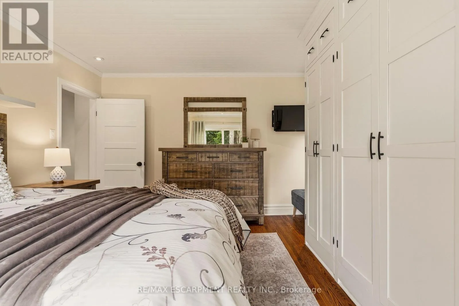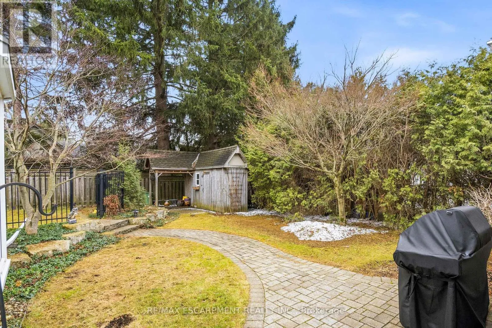Cross Streets: Jerseyville Rd W & Lover's Lane. ** Directions: Lovers Lane to Parker Ave. Welcome to this beautifully maintained home in the highly desirable Oakhill neighbourhood in the heart of Old Ancaster. Situated on a large, mature lot, this property offers charm, space, and exceptional outdoor living. The main level features 3 spacious bedrooms and an updated 3piece bathroom, along with a bright living and dining room combination with hardwood floors throughout and a cozy gas fireplace. The kitchen is well appointed with brand new quartz countertops (2026) and stainless steel appliances. The primary bedroom features built ins as well as sliding doors to the backyard. Stunning finished basement offers excellent additional living space with a large rec room, fourth bedroom, laundry area, and an oversized bathroom featuring a soaker tub and separate shower. The basement walk-up to the side entrance provides excellent potential for a future in-law suite or secondary unit. Step outside to your private backyard oasis with beautiful landscaping, mature greenery, and plenty of space to relax or entertain. Additional features include a detached single car garage with new concrete floor, an 8' x 16' storage room addition beside garage, and a separate backyard shed. A gas BBQ line adds extra convenience for outdoor entertaining. A rare opportunity to own a charming bungalow in the coveted Old Ancaster community, close to parks, schools, and all local amenities. (id:27476)