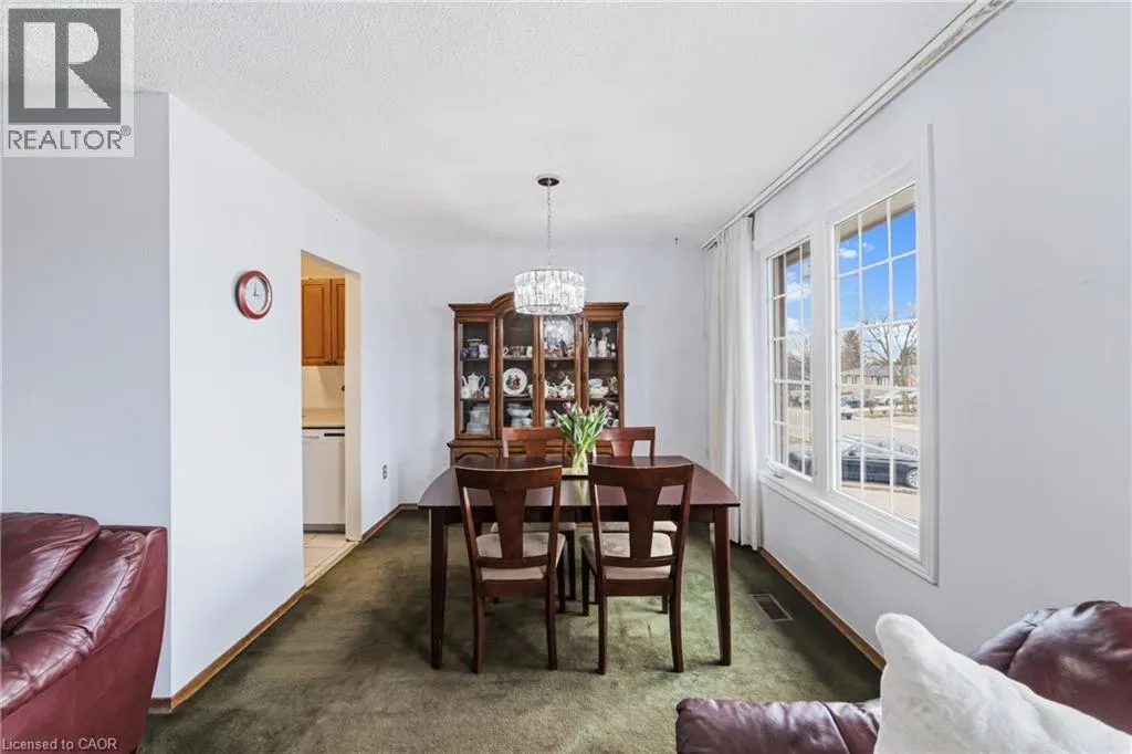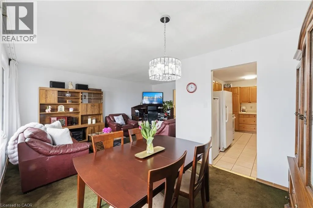 Stonechurch Road West to Omni Blvd. Upper Horning to Almafi St to Greencedar Dr. Welcome to this spacious semi-detached raised bungalow, offering incredible potential in a prime, family-friendly neighbourhood. Featuring 3 generously sized bedrooms, the primary bedroom boasts double closets and ample space, while the additional bedrooms are perfect for family, guests, or a home office. The main level offers a bright and inviting layout with large windows that flood the home with natural light. Enjoy a well sized kitchen with plenty of cabinet space, a separate dining area for entertaining, and an open living room designed for comfort and relaxation. A spacious main bathroom completes this level. The lower level presents excellent versatility, featuring a second kitchen and an additional bathroom, with a layout offering great potential for an in-law suite or a duplex conversion for rental income. The expansive space can easily be divided into an additional bedroom and living area or used as a large family recreation room. Outside, a private, single-wide driveway allows for 3 parked cars. This home is perfect for those looking to add their personal touch and create something truly special. Conveniently located close to shopping, schools, and parks, with easy access to major highways, this property offers both value and opportunity in a highly desirable location. (id:27476)
