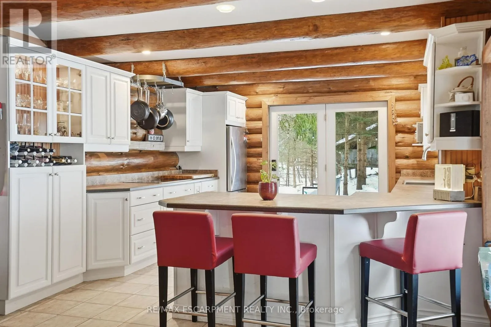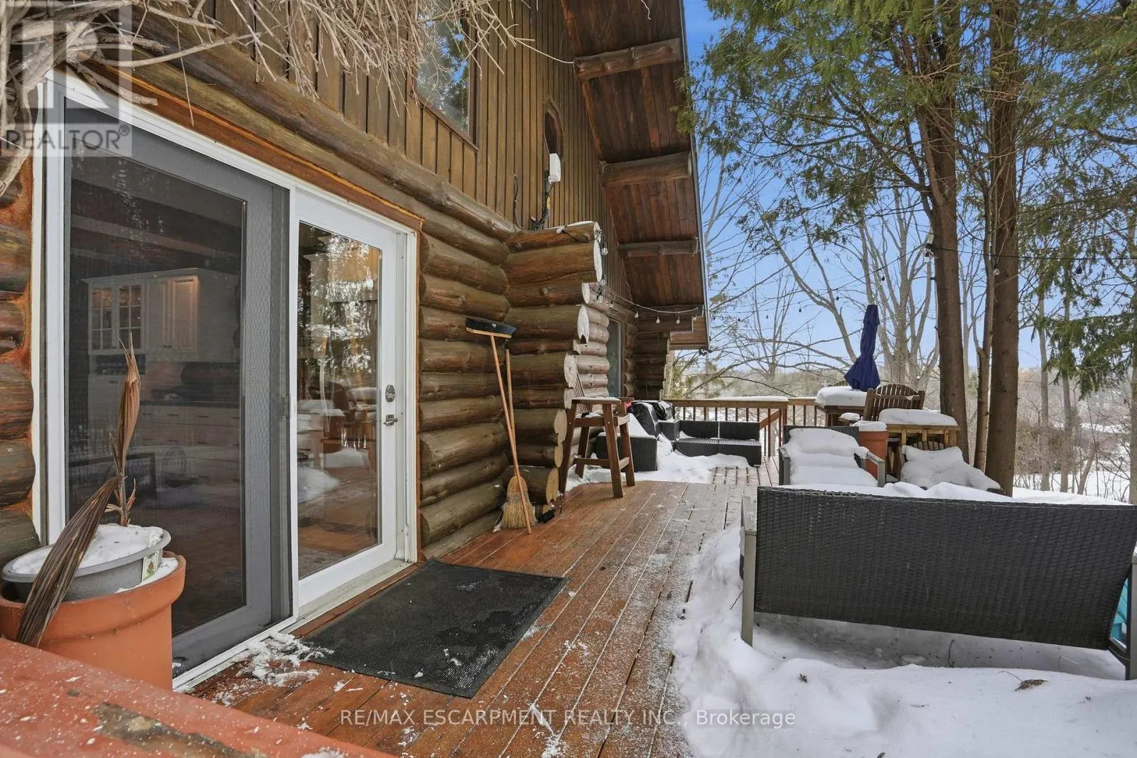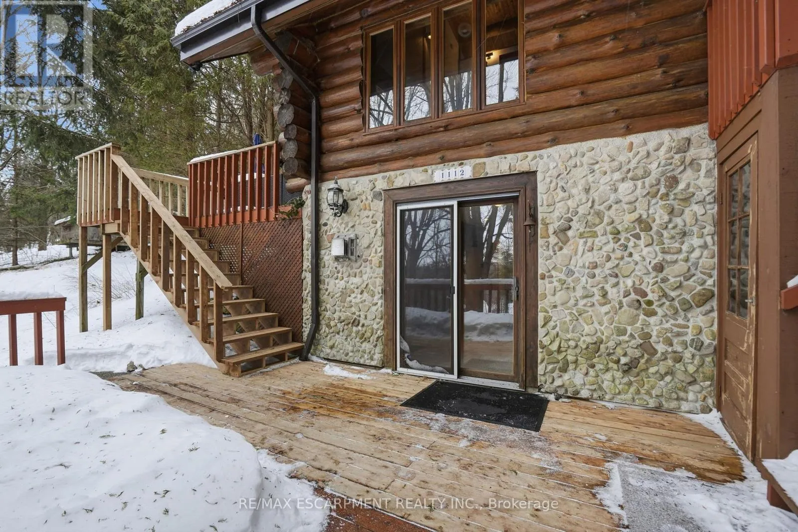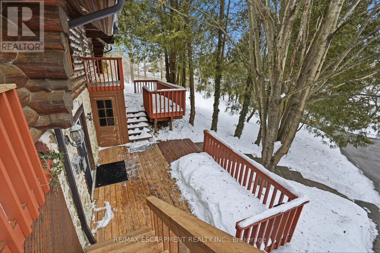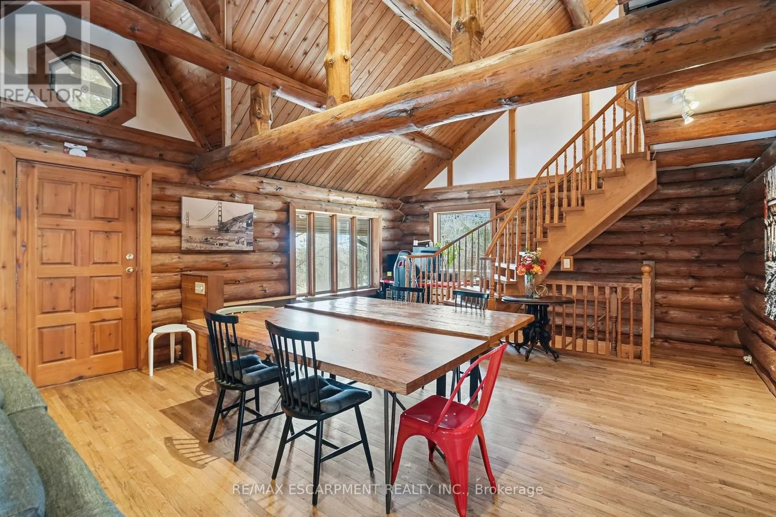 Brock Road & Safari Road Introducing this beautifully crafted 1,771 square foot log bungaloft offering the perfect blend of rustic charm and modern comfort in a peaceful country setting. Soaring vaulted ceilings with exposed log beams create a warm and inviting first impression in the massive living and dining area, complete with a cozy gas fireplace. The spacious kitchen features abundant counter space and overlooks the welcoming family room warmed by an Elmira wood stove, ideal for gatherings year-round. Step outside to enjoy two separate decks, one off the family room and another off the kitchen, perfect for entertaining or relaxing in nature. The upper-level primary retreat offers a generous walk-in closet; large enough to double as a nursery or home office and a beautifully renovated ensuite with dual vanities and a glass-enclosed shower. The finished walk-out lower level adds exceptional living space with two well-sized bedrooms, an updated 3-piece bath and a comfortable rec room with its own gas fireplace. Outdoors, you'll find a detached single-car garage, a charming chicken coop and a powered shed with 100-amp service-originally planned as a home office. A concrete pad is ready for your future hot tub, while walking trails right at your doorstep complete this serene and private country lifestyle. This is more than a home-it's a retreat. RSA. (id:27476)