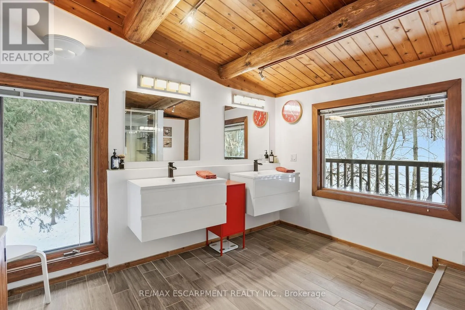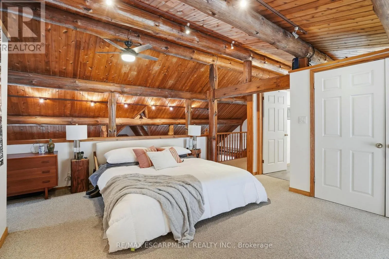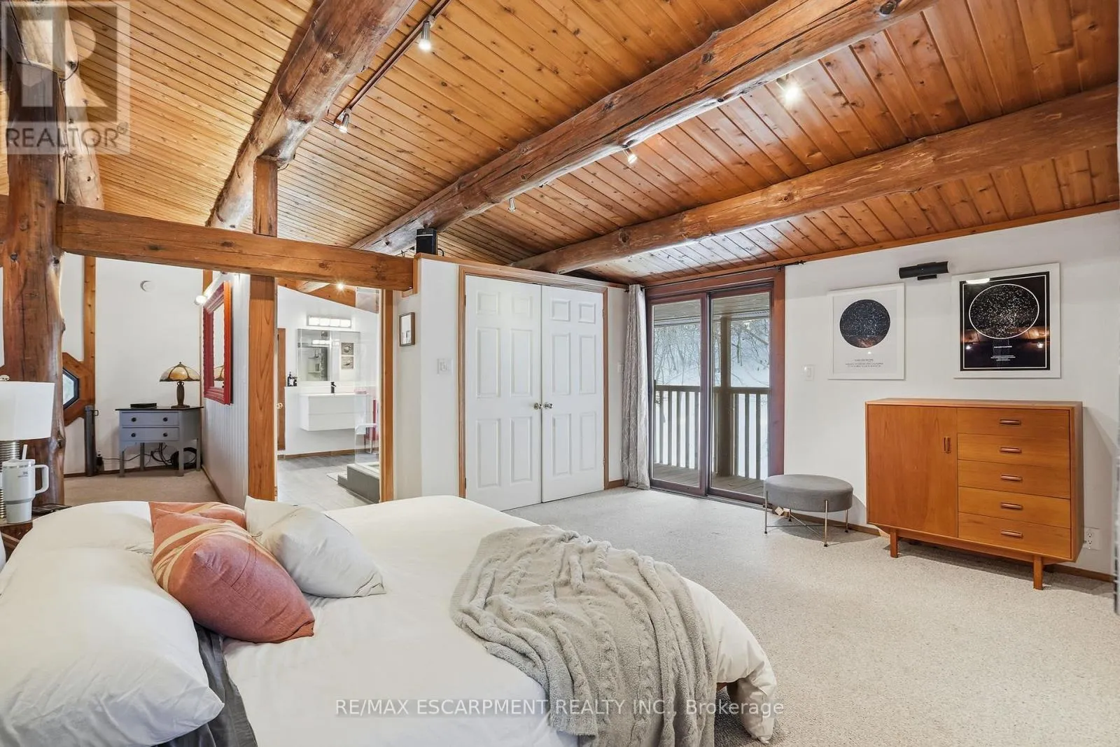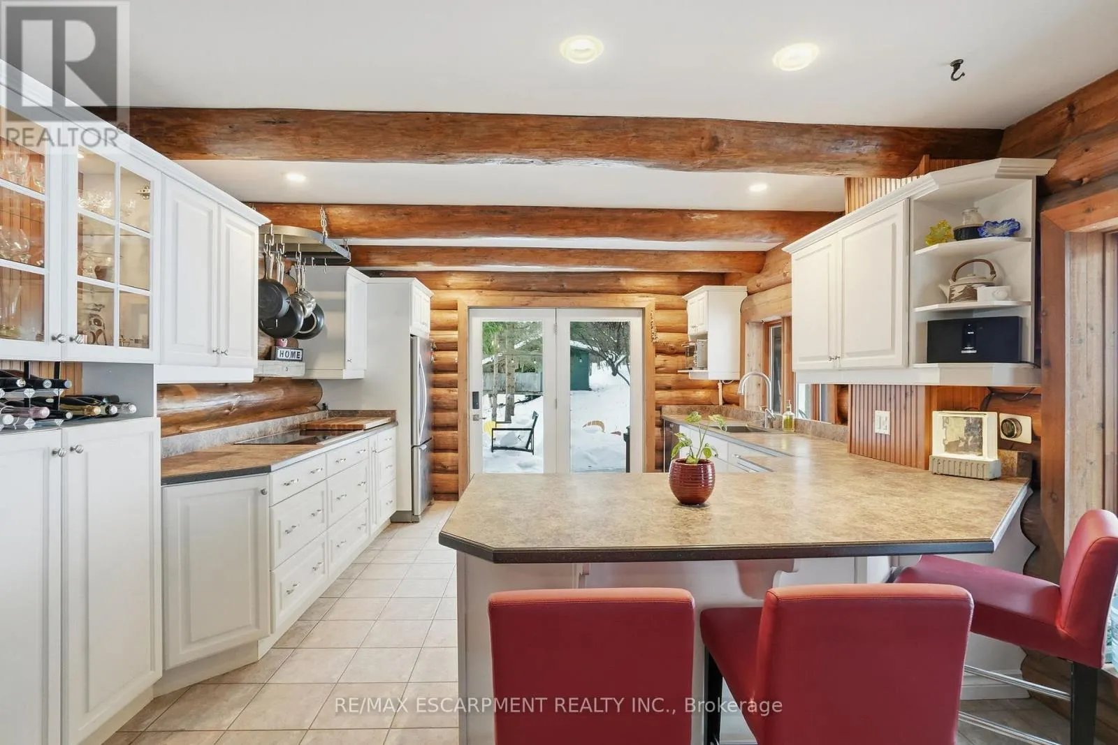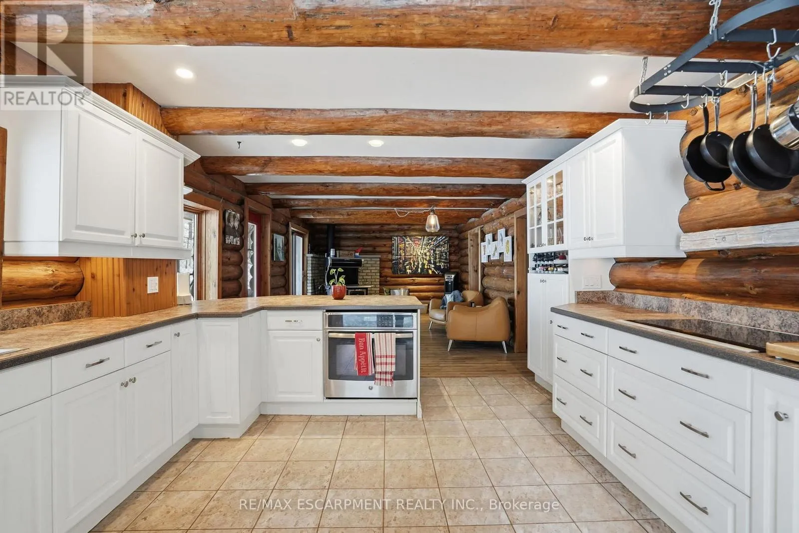 Brock Road & Safari Road Introducing this beautifully crafted 1,771 square foot log bungaloft offering the perfect blend of rustic charm and modern comfort in a peaceful country setting. Soaring vaulted ceilings with exposed log beams create a warm and inviting first impression in the massive living and dining area, complete with a cozy gas fireplace. The spacious kitchen features abundant counter space and overlooks the welcoming family room warmed by an Elmira wood stove, ideal for gatherings year-round. Step outside to enjoy two separate decks, one off the family room and another off the kitchen, perfect for entertaining or relaxing in nature. The upper-level primary retreat offers a generous walk-in closet; large enough to double as a nursery or home office and a beautifully renovated ensuite with dual vanities and a glass-enclosed shower. The finished walk-out lower level adds exceptional living space with two well-sized bedrooms, an updated 3-piece bath and a comfortable rec room with its own gas fireplace. Outdoors, you'll find a detached single-car garage, a charming chicken coop and a powered shed with 100-amp service-originally planned as a home office. A concrete pad is ready for your future hot tub, while walking trails right at your doorstep complete this serene and private country lifestyle. This is more than a home-it's a retreat. RSA. (id:27476)