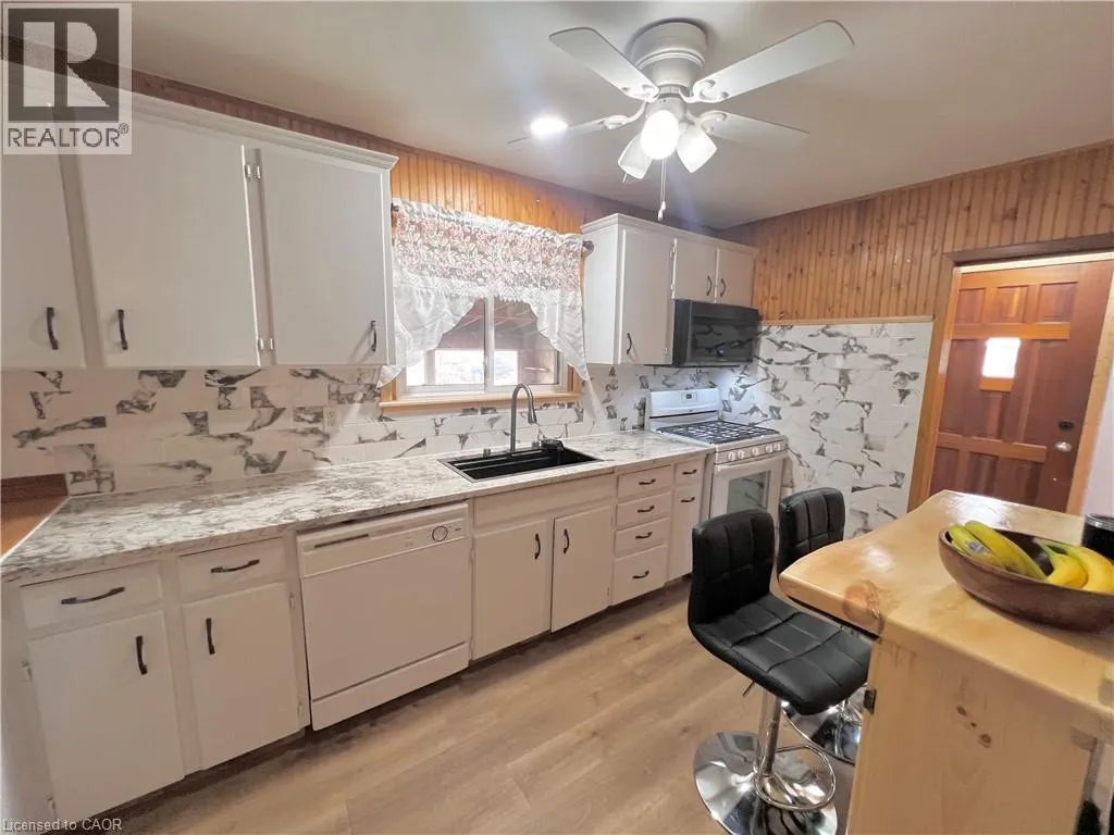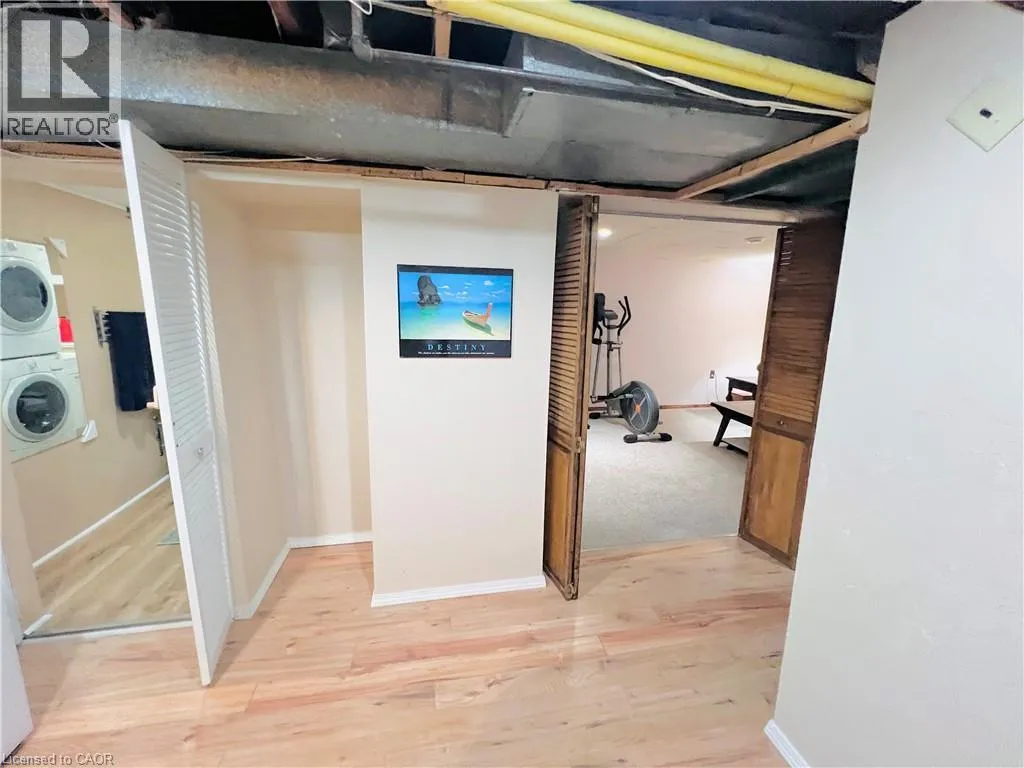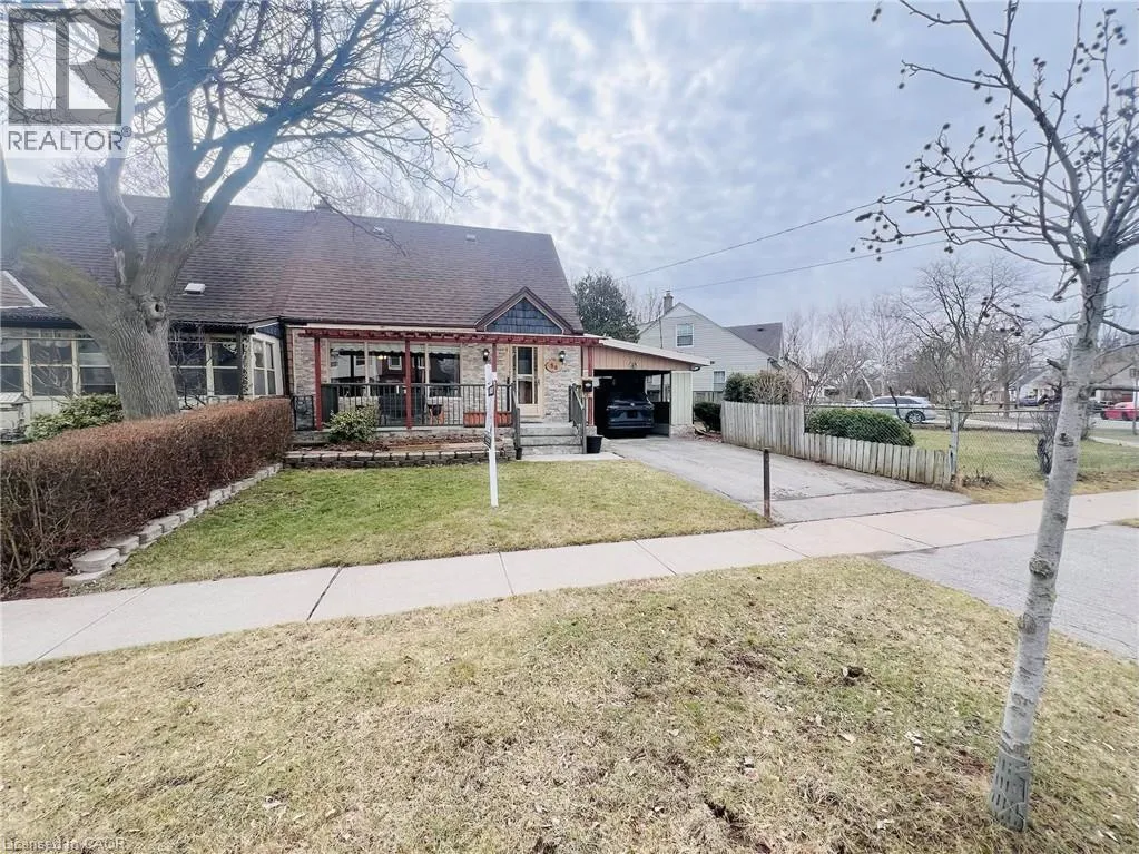 Reid Ave N to Glengrove Ave to Armstrong Ave to Eastvale Place Welcome to 56 Eastvale Place, a charming semi-detached 1.5-storey home on a unique inverted pie-shaped lot. Lovingly maintained for 13 years, this home features custom woodwork throughout and a warm, functional layout. Enjoy a bright living room with electric fireplace, pot lights, and hardwood flooring, open to the dining area. The updated kitchen offers white cabinetry, granite countertops, tiled backsplash, and ample storage. The main floor includes a full bath with an antique-style soaker tub. Upstairs features 2 spacious bedrooms. The finished basement adds extra living space and a second full bathroom. A rear extension with gas fireplace provides additional room. Carport offers potential for future garage conversion. Conveniently located near the Red Hill Valley Parkway. Sqft and room size are approx. (id:27476)