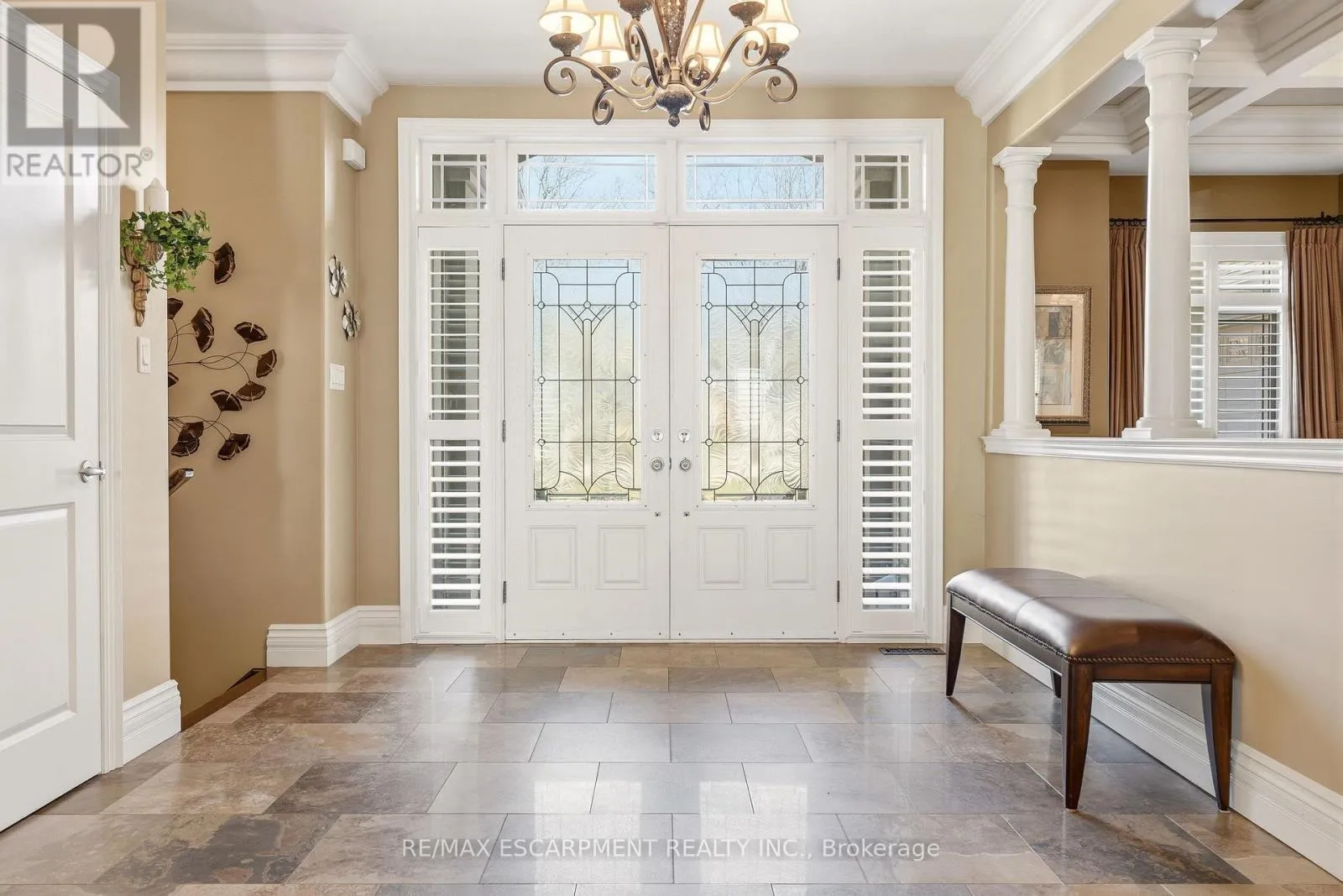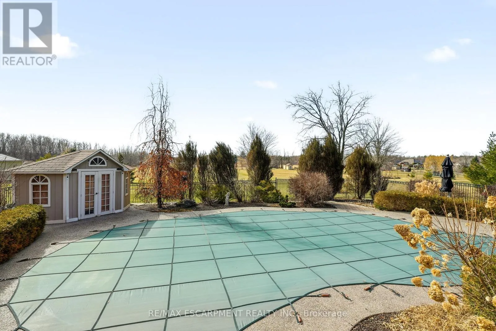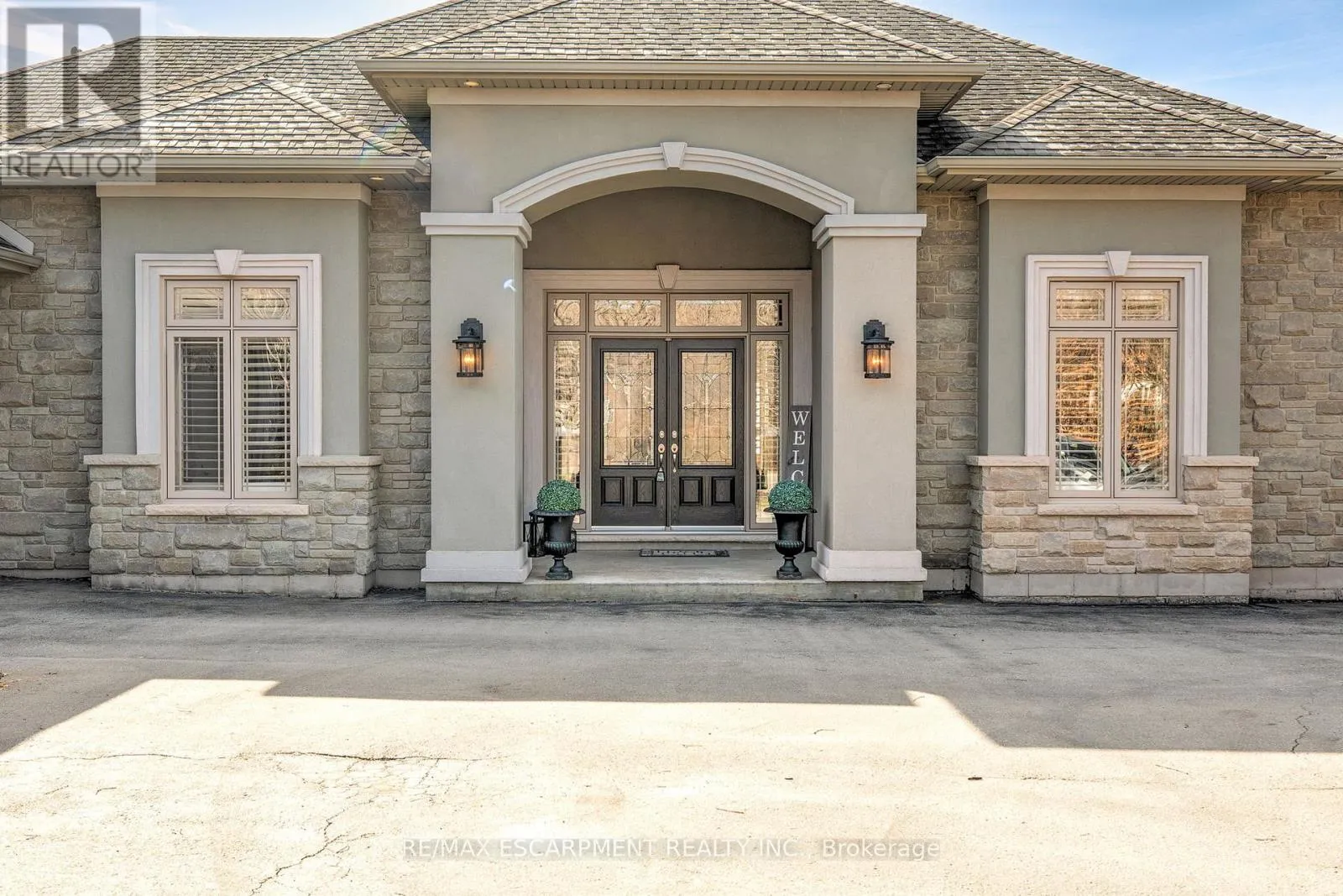 WESTOVER ROAD AND 6TH CONCESSION ROAD WEST Welcome to 1318 Concession Road 6 W, Millgrove - where luxury meets country living. Originally built as the model home in 2011, this stunning 2,833 sq ft stone and stucco bungalow sits on a breathtaking 2.53-acre lot (100 x 1,102 ft) with professional landscaping, an inground pool, pergola and a long private asphalt driveway. The grand main entrance opens to a thoughtfully designed layout featuring rich hardwood floors, coffered ceilings and elegant columns. The living room boasts a propane fireplace, while the chef's kitchen impresses with granite counters, glazed cabinetry and Viking Professional appliances, flowing seamlessly to a breakfast room with deck and pergola access - perfect for entertaining poolside. The principal suite offers a spa-like five-piece ensuite with jacuzzi tub, double sinks and a walk-in closet. Two additional main floor bedrooms, a four-piece bath, and a convenient laundry room with garage access complete the main level. The fully finished basement with nine-foot ceilings adds two bedrooms, a three-piece bath and a large family room with propane fireplace - ideal for extended family. Additional highlights include a three-car garage, cistern, drilled well, septic, 200-amp panel, whole-home generator, inground irrigation, central vac, new furnace (2023) and California shutters throughout. A rare opportunity - this is country luxury at its finest. RSA. (id:27476)