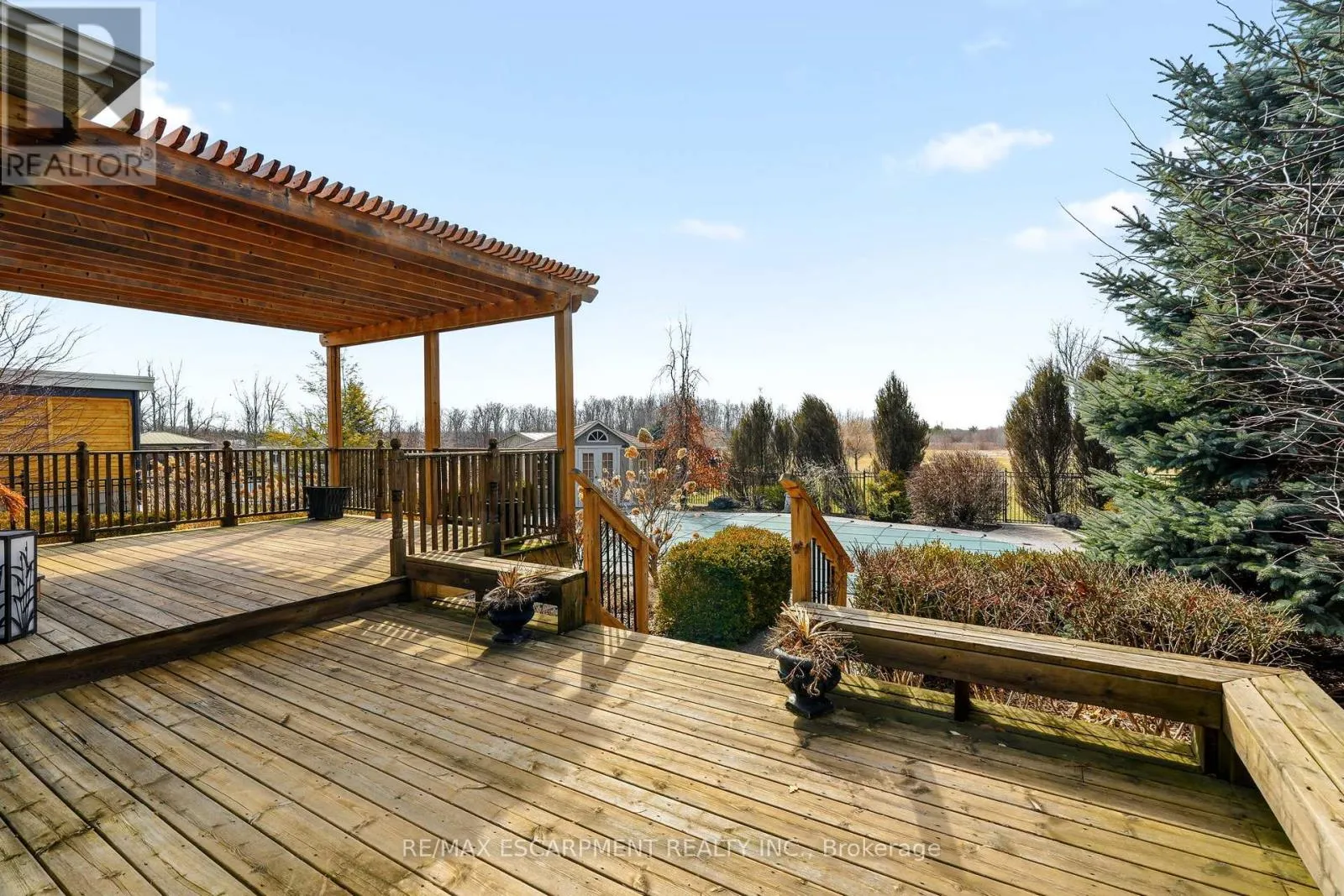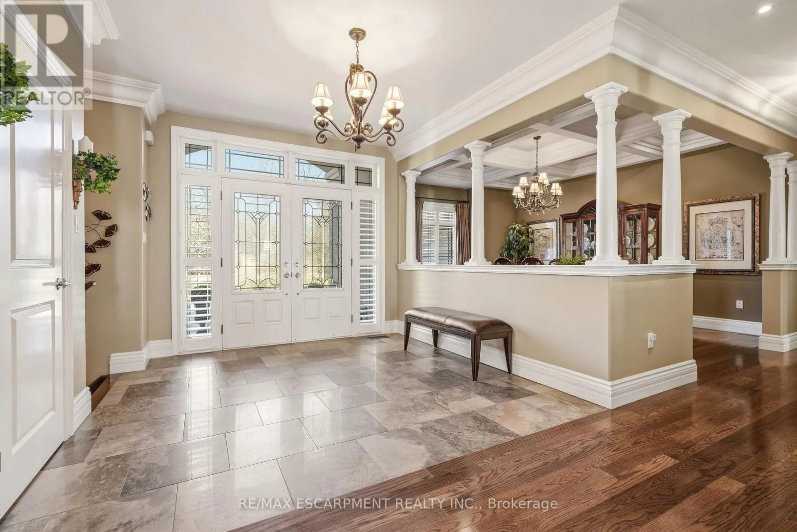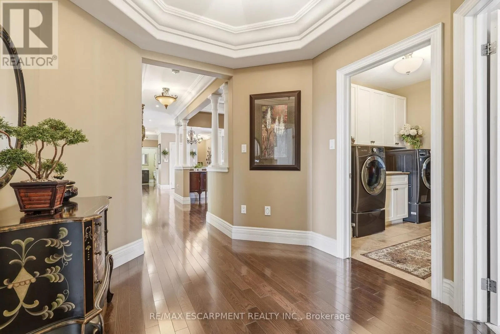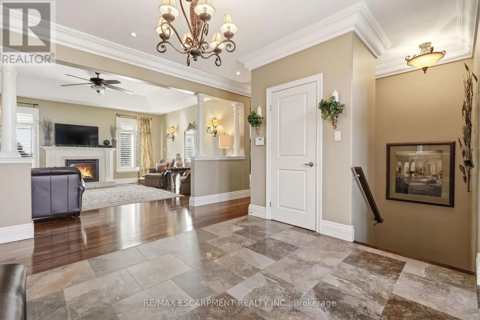 WESTOVER ROAD AND 6TH CONCESSION ROAD WEST Welcome to 1318 Concession Road 6 W, Millgrove - where luxury meets country living. Originally built as the model home in 2011, this stunning 2,833 sq ft stone and stucco bungalow sits on a breathtaking 2.53-acre lot (100 x 1,102 ft) with professional landscaping, an inground pool, pergola and a long private asphalt driveway. The grand main entrance opens to a thoughtfully designed layout featuring rich hardwood floors, coffered ceilings and elegant columns. The living room boasts a propane fireplace, while the chef's kitchen impresses with granite counters, glazed cabinetry and Viking Professional appliances, flowing seamlessly to a breakfast room with deck and pergola access - perfect for entertaining poolside. The principal suite offers a spa-like five-piece ensuite with jacuzzi tub, double sinks and a walk-in closet. Two additional main floor bedrooms, a four-piece bath, and a convenient laundry room with garage access complete the main level. The fully finished basement with nine-foot ceilings adds two bedrooms, a three-piece bath and a large family room with propane fireplace - ideal for extended family. Additional highlights include a three-car garage, cistern, drilled well, septic, 200-amp panel, whole-home generator, inground irrigation, central vac, new furnace (2023) and California shutters throughout. A rare opportunity - this is country luxury at its finest. RSA. (id:27476)