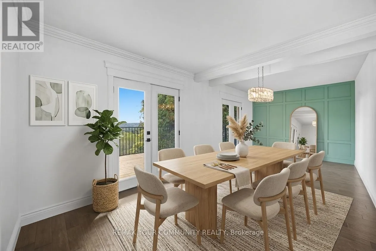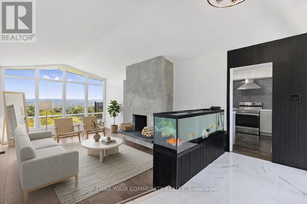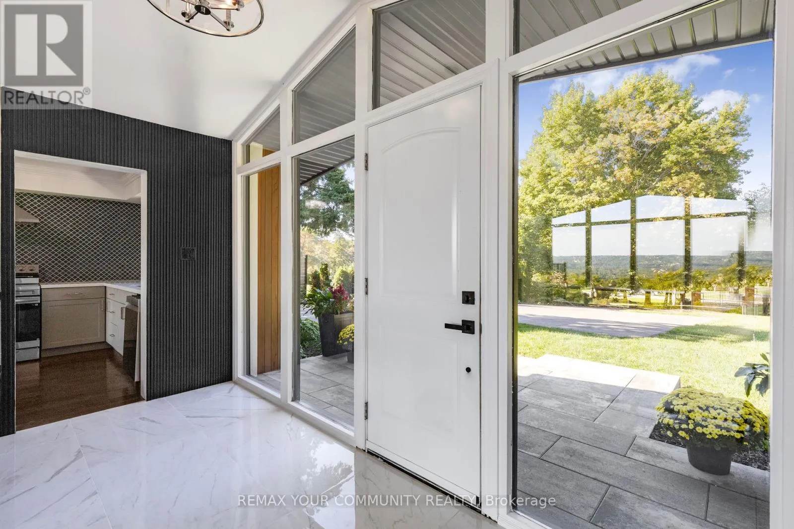 Cross Streets: Hwy 8 & Rosebough. ** Directions: Hwy 8, Rosebough, Oak. RARE ONE-ACRE ESCARPMENT ESTATE ON A DRAMATIC CLIFF-LEDGE IN THE HEART OF DUNDAS. This is a once-in-a-lifetime opportunity to own one of Greensville's most prestigious and versatile properties, set on an extraordinary parcel perched along a breathtaking Niagara Escarpment cliff ledge. Surrounded by natural wildlife and panoramic valley scenery, this south-facing residence is perfectly positioned to capture spectacular sunlight and uninterrupted views from virtually every principal room. Boasting a wide 144-foot frontage, the home is thoughtfully situated to one side of the lot, offering flexibility for future expansion, architectural reconfiguration, or the creation of a landmark luxury custom estate (subject to approvals). Whether you are a discerning family seeking privacy within reach of newly built schools and modern amenities, or a visionary builder searching for a showcase development site, this property presents a rare combination of width, acreage, and topography that is virtually impossible to replicate. The fully renovated modern residence features boutique architectural detailing and premium finishes throughout. A striking new cedar façade and expansive multi-level decks create a dramatic arrival experience while seamlessly connecting indoor living with the surrounding landscape. Inside, the 2,674 sq foot (total finished space) redesigned layout maximizes south-facing valley vistas, highlighted by a distinctive integrated koi aquarium feature, a private fitness studio, and a sleek open-concept kitchen and inspired bathrooms. An impressive dining room offers the perfect setting for grand entertaining, framed by panoramic views. Zoning supports a luxury single-family residence with accessory structures (buyer to verify), delivering the ultimate balance of immediate lifestyle enjoyment and long-term investment upside against the backdrop of the Niagara Escarpment. A rare offering for those seeking privacy, natural beauty, and architectural freedom. (id:27476)