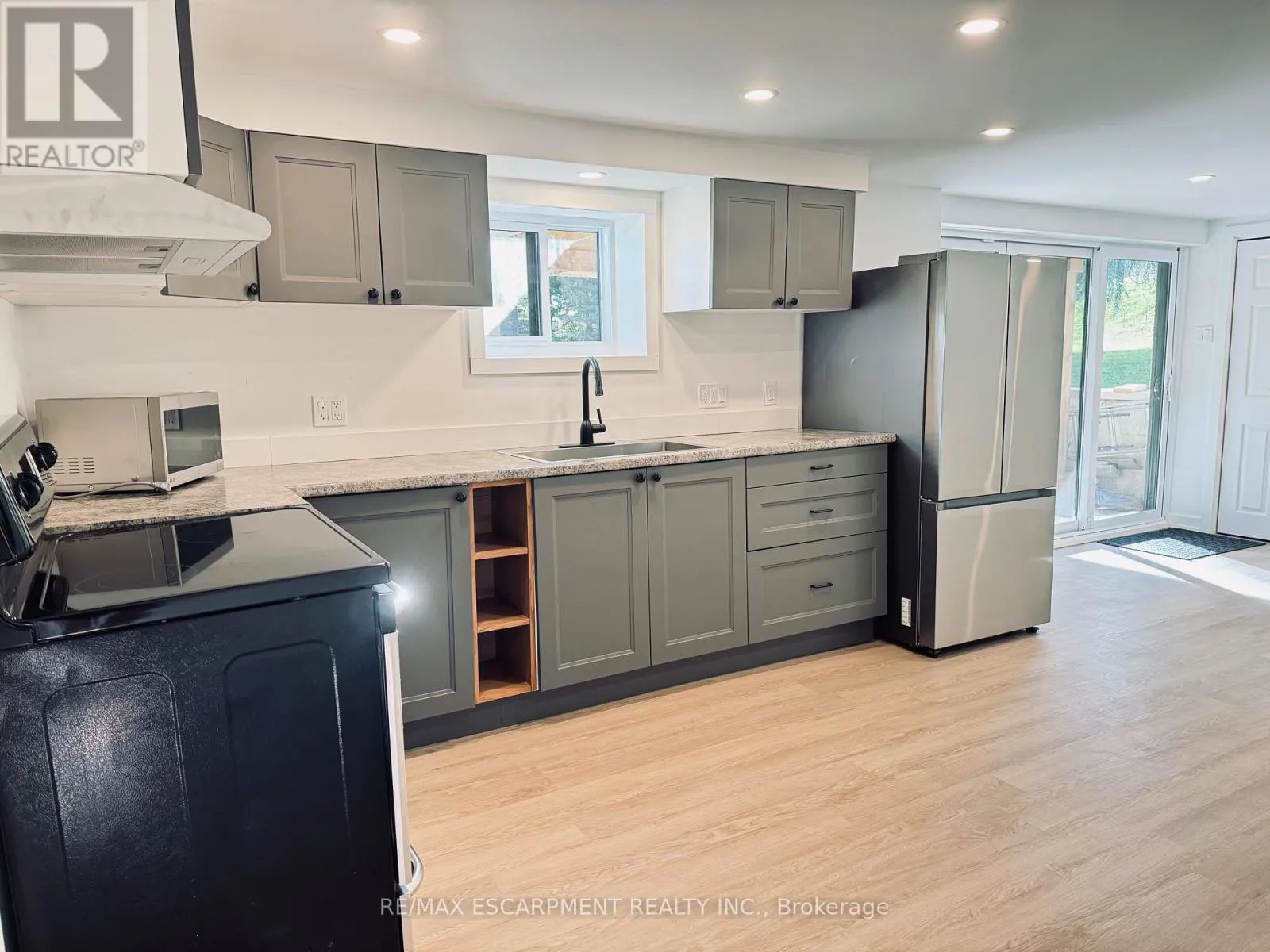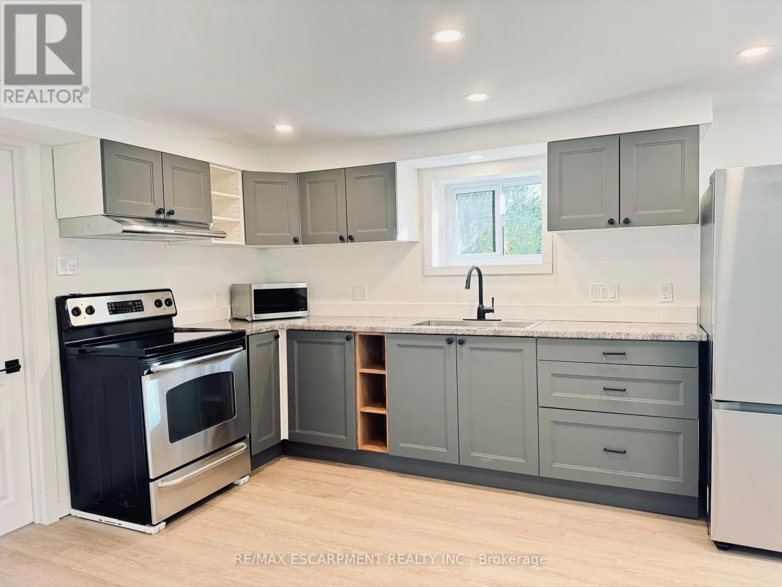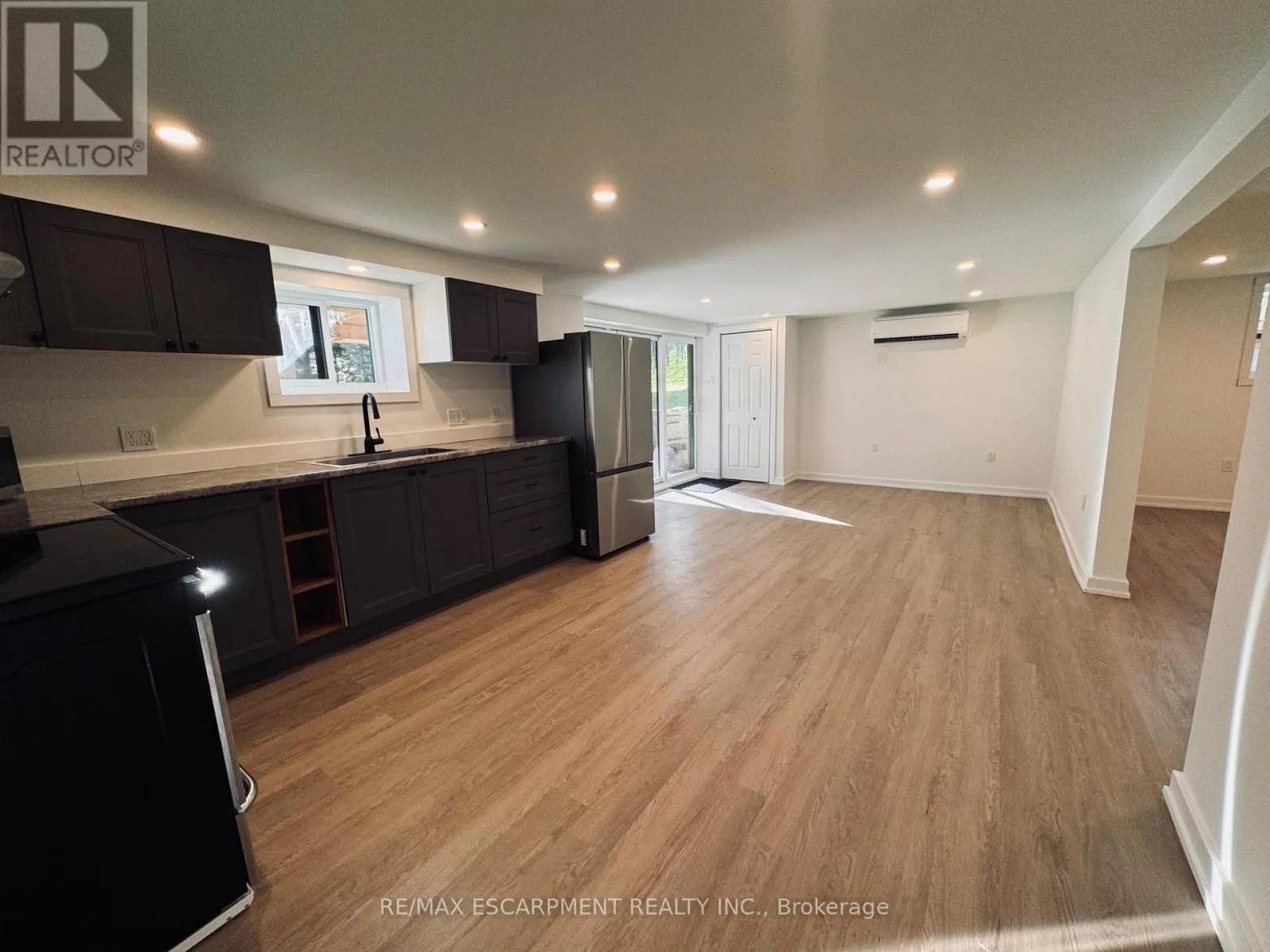 Cross Streets: Bayview and Dundas. ** Directions: Dundas St East from hwy 6 on the south side. Welcome to this beautifully renovated 1-bedroom plus den basement suite in the heart of Waterdown. Thoughtfully designed with comfort and functionality in mind, this bright and inviting space features full-size windows and large patio doors that open to a private covered porch, allowing for plenty of natural light throughout.The modern kitchen features stylish finishes and ample storage, while the convenience of in-suite full-size laundry adds to the ease of everyday living. A versatile den provides the perfect space for a home office, guest area, or additional living space. Located in a quiet, family-friendly neighbourhood with easy access to downtown Waterdown, parks, shopping, and major routes, this is an ideal opportunity for a professional tenant or couple seeking a well-appointed space in a great community. (id:27476)