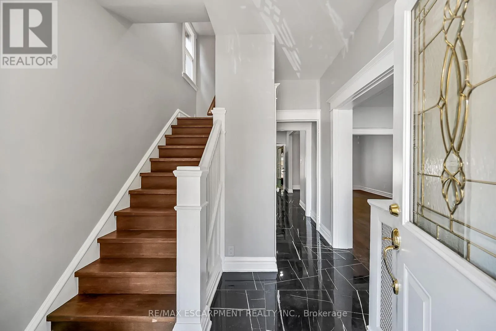 Cross Streets: Delaware Ave. ** Directions: Sherman Av S and Delaware Av. venue South! This impressive 2.5-storey brick home is located in the highly desirable St. Clair neighbourhood,surrounded by beautiful character homes and just minutes to Gage Park, the Bernie Morelli Recreation Centre, schools, shopping, downtownaccess and major highways. Step inside to discover a spacious, thoughtfully updated interior featuring a large welcoming foyer, formal livingroom with decorative fireplace, formal dining room, and an open-concept eat-in kitchen perfect for everyday living and entertaining. A coveredrear porch/mudroom adds convenient access to the backyard. The second level offers three generously sized bedrooms with ample closet spaceand a beautifully updated three-piece bath with an oversized walk-in shower. The third level provides incredible additional living space with twomore bedrooms and another three-piece bath - ideal as a teenage retreat, children's playroom, guest space, or dedicated home office. Outside,enjoy a shared side driveway leading to a detached garage and private rear yard. Notable updates include electrical and plumbing improvements,select window replacements, roof (stripped and re-shingled in 2021), soffits, eaves and downspouts (2021), new gas boiler (2023), owned hotwater heater (2023), and new flooring throughout. With five bedrooms, multiple living areas, and extensive updates, this home offersexceptional space and flexibility for a growing family. Don't miss your opportunity to own in one of Hamilton's most sought-after neighbourhoods! (id:27476)