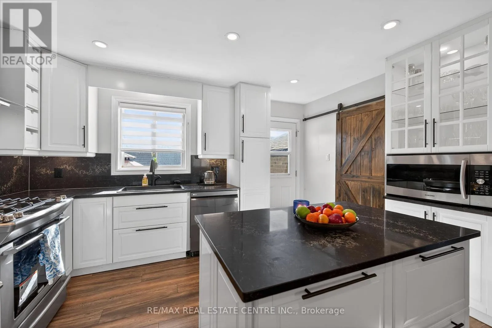 Cross Streets: Marion St. ** Directions: SOUTH ON UPPER JAMES - RIGHT ON AIRPORT ROAD - LEFT ON MARION - RIGHT ON LONGVIEW. Welcome to 36 Longview - a beautifully updated raised ranch tucked away on a quiet cul-de-sac, ideal for families and multi-generational living. Thoughtfully upgraded throughout, this home showcases a fully renovated main kitchen (2021) with modern appliances, cabinetry, countertops, and flooring, opening into a bright, open-concept living space. The main level offers three generously sized bedrooms, a full bathroom with ensuite privilege, a newly added powder room, and a well-designed layout that balances comfort and functionality. The fully finished lower level adds exceptional versatility, complete with a second kitchen, two additional bedrooms, a spacious family room, full bathroom, and a laundry room with walk-up access to the garage. With potential for a separate entrance, this space is ideal for an in-law suite or extended family living. Recent updates include new basement flooring, a custom closet in the downstairs bedroom, and the addition of a powder room. Additional upgrades (2021) include pot lights throughout the interior and exterior, a stylish accent wall with fireplace and lighting, new railing, foyer, and a gazebo - perfect for enhancing both comfort and entertaining. The home is also equipped with seven exterior security cameras for added peace of mind. Roof replaced in 2019. Step outside to a multi-level deck and patio with a gas line for your BBQ - an ideal setting for hosting family and friends. With parking for up to seven vehicles and located in the growing community of Mount Hope, close to schools, parks, trails, and with easy access to major routes and highways, this home offers the perfect balance of suburban living and city convenience. A move-in ready home with extensive upgrades - don't miss this opportunity. (id:27476)
