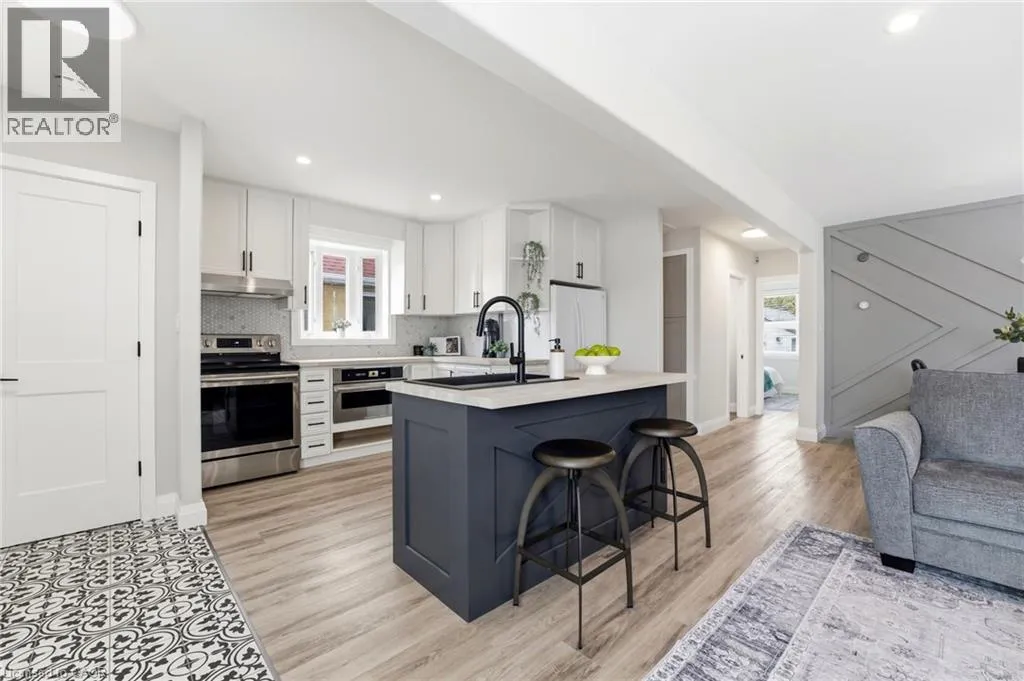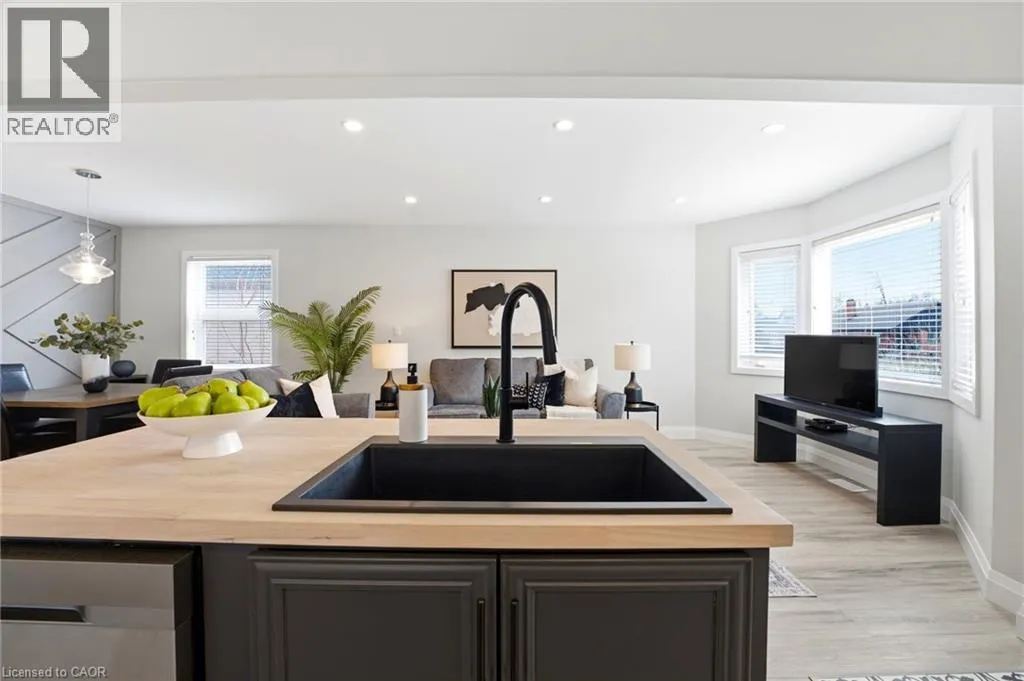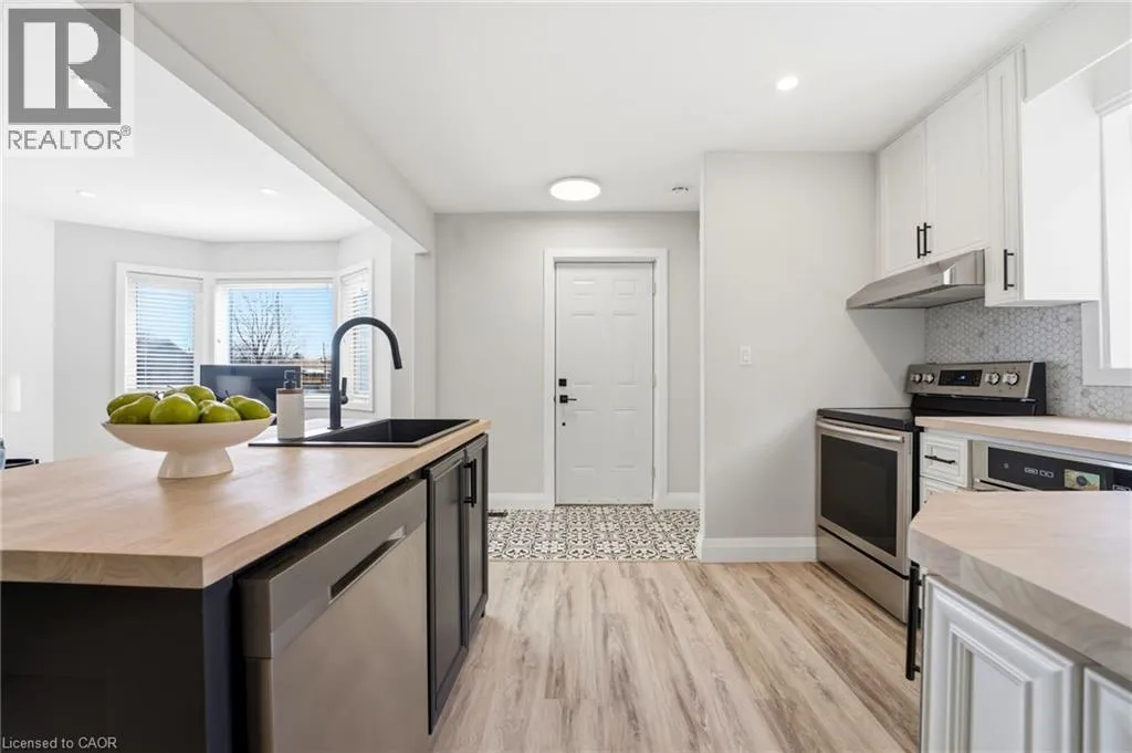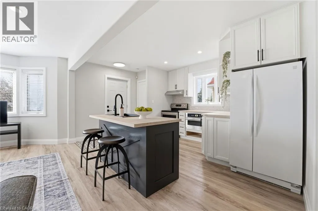 Upper Gage to Queensdale Avenue East Nestled in the Sunninghill neighborhood, this charming brick bungalow offers a thoughtfully updated home perfect for young buyers and downsizers alike. The home welcomes you with an inviting, open concept living space designed to maximize natural light and functional flow. At its heart sits a modern kitchen featuring a central island, butcher block countertops, a stylish backsplash, and ample storage with a built-in microwave. The interior has been extensively transformed including new framing, drywall, and insulation bringing the home up to modern standards of energy efficiency. High quality updates include a new oak staircase with matching handrails, new flooring and trim, lighting and potlights throughout, freshly painted interior and exterior, every detail has been handled with care. The versatility of this property extends to the finished lower level, which is accessible via a separate side entrance. This additional living space includes a cozy family room, a third bedroom, a laundry room and one of the homeâs two newly renovated bathrooms. Outside, the private backyard and patio offer a quiet escape, complemented by the convenience of a detached garage and a long private driveway. Easy access to local schools, parks, shopping and major transit routes, making it an ideal blend of modern comfort and established charm. (id:27476)