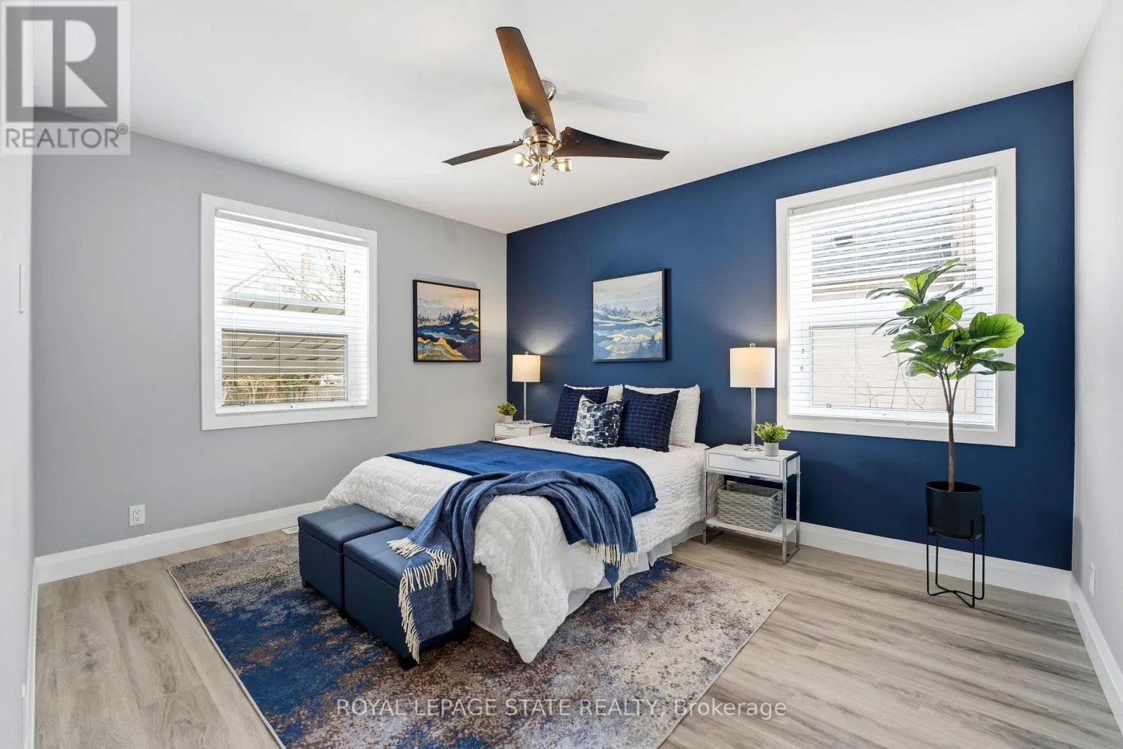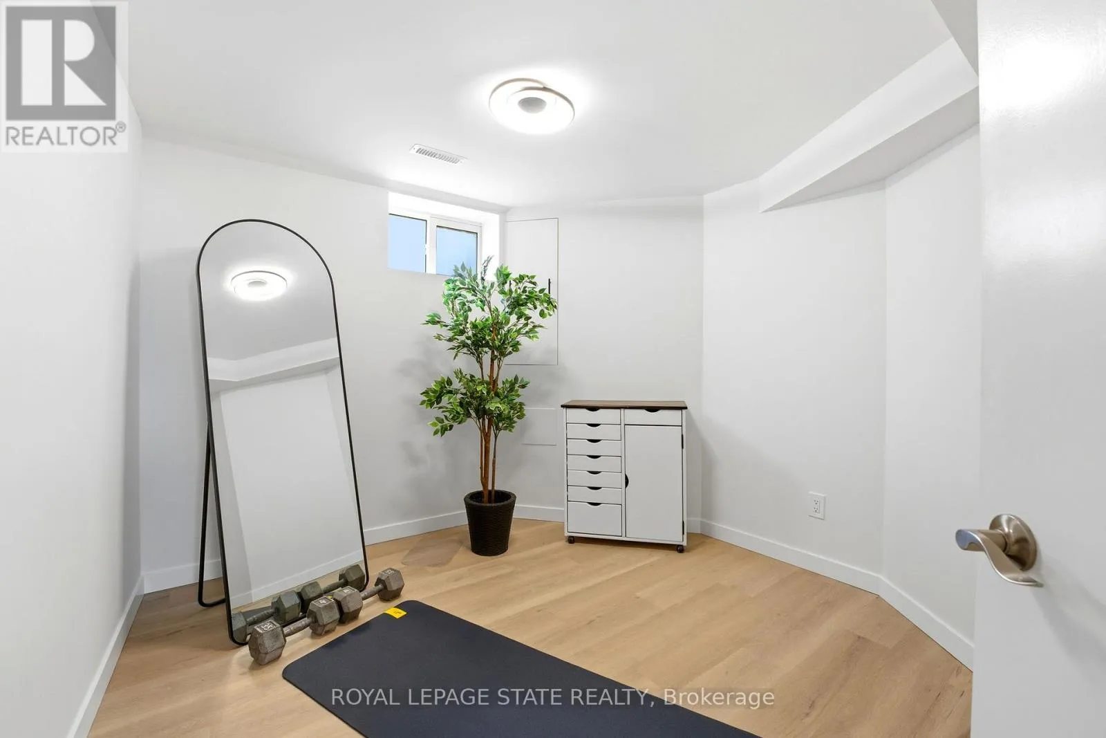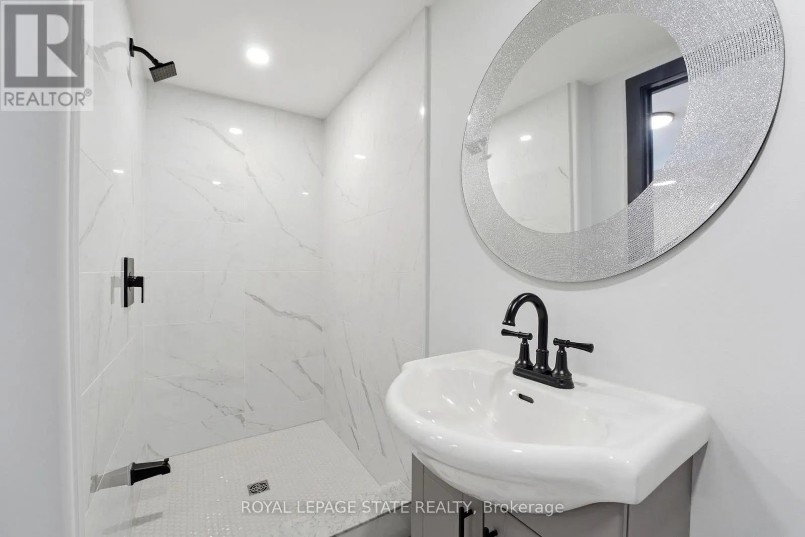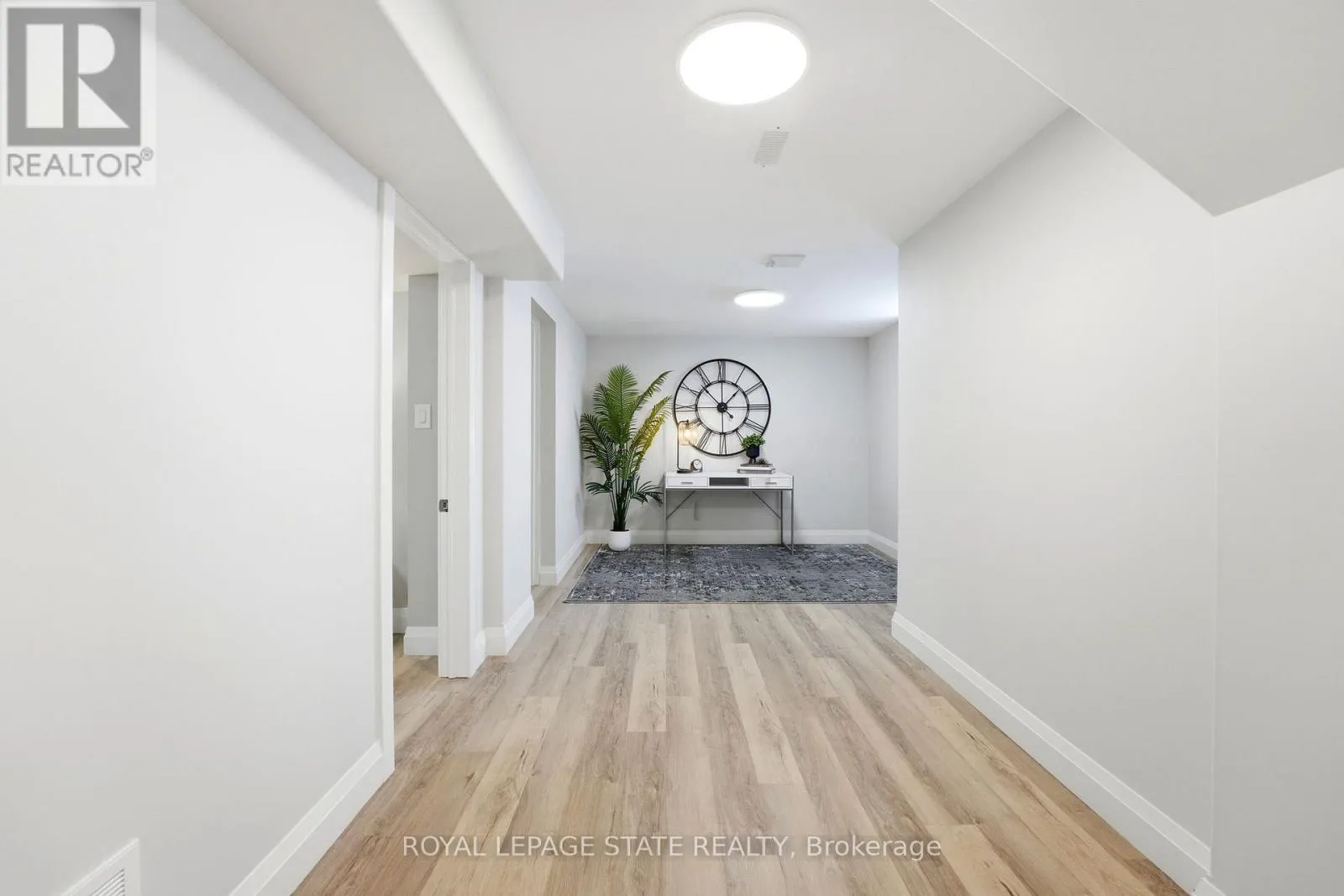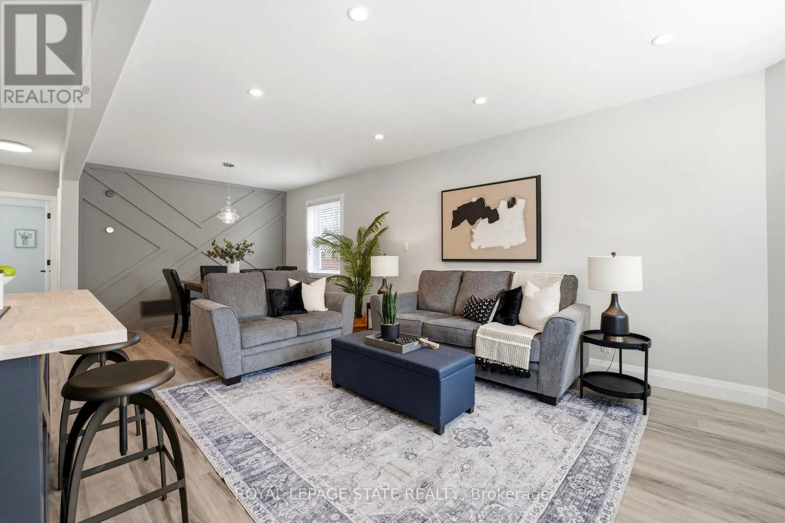 Cross Streets: Upper Gage and Queensdale. ** Directions: Upper Gage to Queensdale Avenue East. Nestled in the Sunninghill neighborhood, this charming brick bungalow offers a thoughtfully updated home perfect for young buyers and downsizers alike. The home welcomes you with an inviting, open concept living space designed to maximize natural light and functional flow. At its heart sits a modern kitchen featuring a central island, butcher block countertops, a stylish backsplash, and ample storage with a built-in microwave. The interior has been extensively transformed including new framing, drywall, and insulation bringing the home up to modern standards of energy efficiency. High quality updates include a new oak staircase with matching handrails, new flooring and trim, lighting and potlights throughout, freshly painted interior and exterior, every detail has been handled with care. The versatility of this property extends to the finished lower level, which is accessible via a separate side entrance. This additional living space includes a cozy family room, a third bedroom, a laundry room and one of the home's two newly renovated bathrooms. Outside, the private backyard and patio offer a quiet escape, complemented by the convenience of a detached garage and a long private driveway. Easy access to local schools, parks, shopping and major transit routes, making it an ideal blend of modern comfort and established charm. (id:27476)