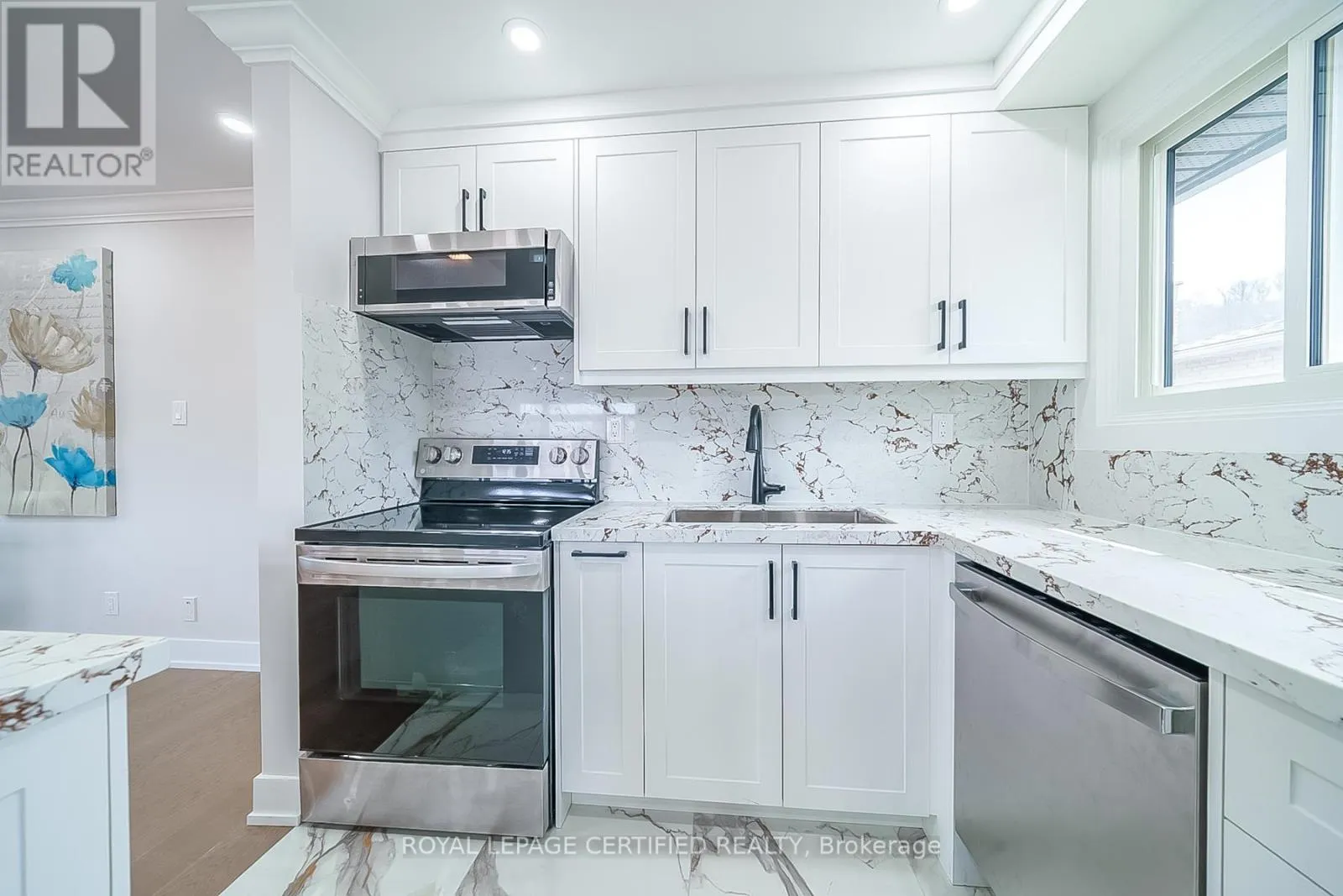 Cross Streets: Greenhill Ave & Summercrest Dr. ** Directions: Greenhill Ave & Quigley Rd. Wow! Immaculate raised bungalow renovated top-to-bottom in the highly desirable Gershome neighbourhood. Custom renovated and thoughtfully designed with high-end finishes throughout. Featuring a stunning open-concept living space with wide-plank hardwood flooring, modern slat feature wall with built-in electric fireplace, flat ceilings, crown moulding, and abundant pot lights-creating a bright and inviting atmosphere. The designer kitchen showcases sleek cabinetry, quartz countertops, stainless steel appliances, a modern island that seats four, and a stylish backsplash-perfect for both everyday living and entertaining. Enjoy beautifully updated bathrooms, upgraded trim work, and a seamless layout that flows effortlessly from room to room, complemented by the added convenience of separate upstairs laundry. Large windows flood the home with natural light, enhancing the elegant finishes and contemporary design that make this home truly move-in ready. Extensively upgraded inside and out with new windows, doors, hardware, soffit, fascia, exterior lighting, a new front door, and fresh professional landscaping-offering incredible curb appeal and peace of mind. The lower level provides additional living space featuring a cozy gas fireplace, two bedrooms, a brand new kitchen, and a custom-designed full bathroom-ideal for relaxing, extended family living, or hosting guests. This family-friendly location offers exceptional convenience-just minutes to the Red Hill Valley Parkway, and close to shops, healthcare, parks, Eastgate Square, and all essential amenities your family needs. Don't miss your chance to live in this amazing neighbourhood! It's the perfect place to put down roots. Perfect for a first-time buyer, investor, or downsizer. Nearby amenities include Glendale Golf Club, Confederation GO Station, Hamilton Beach, QEW, Lincoln M. Alexander Parkway, HWY 8, and more! (id:27476)
