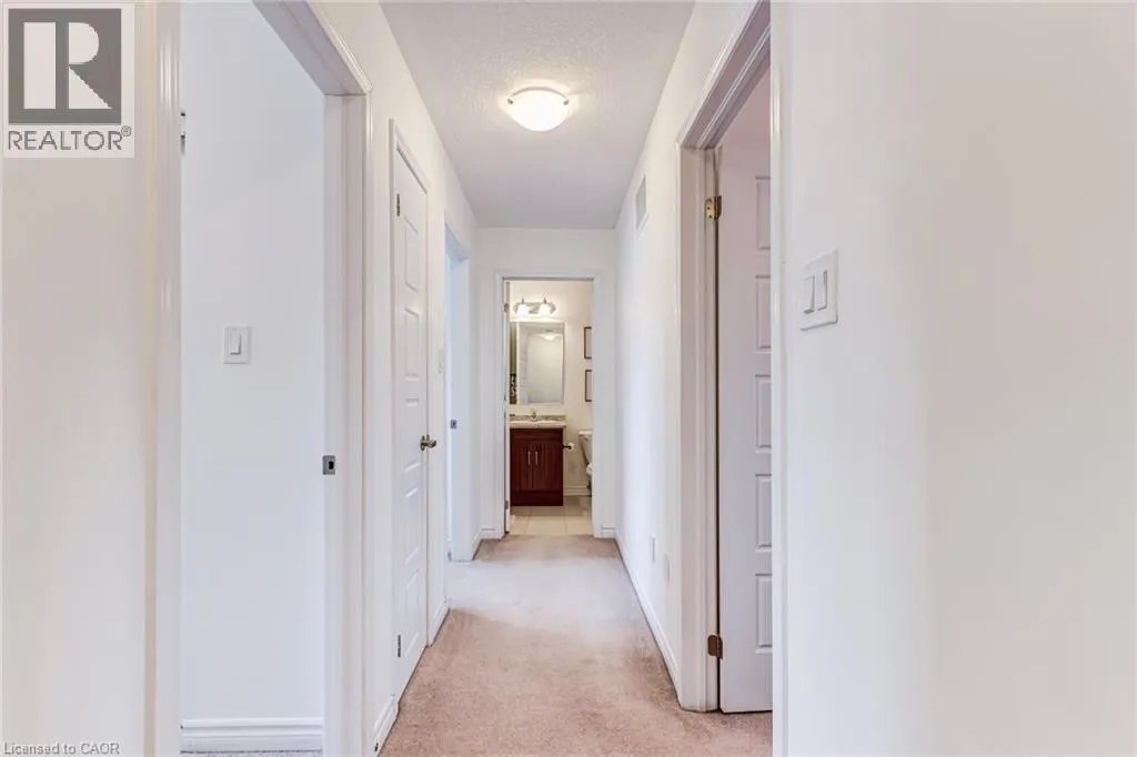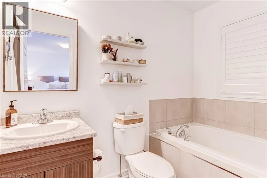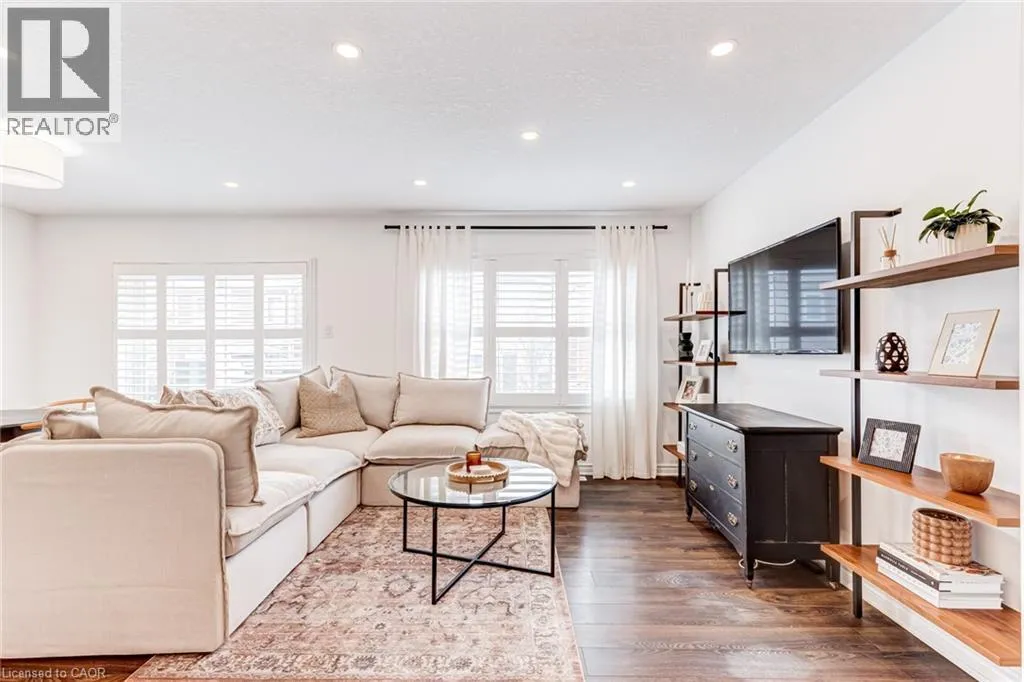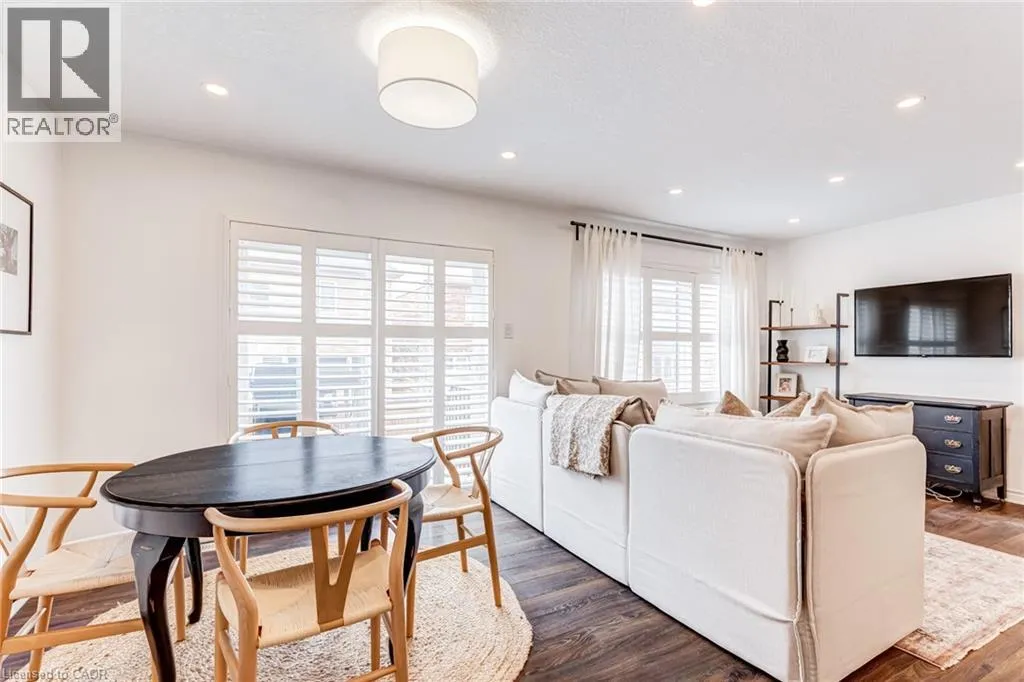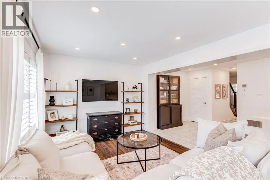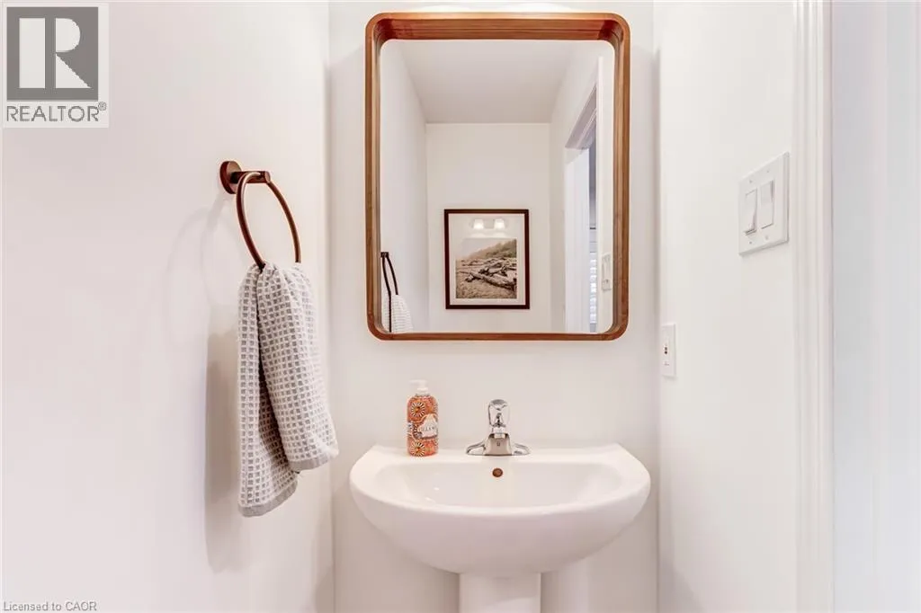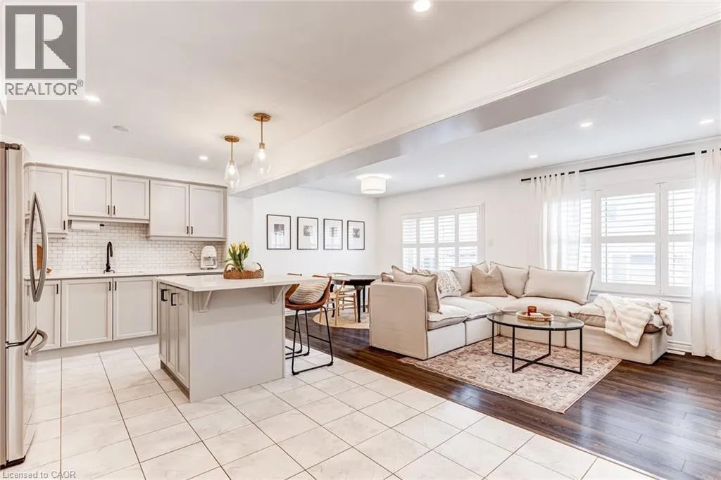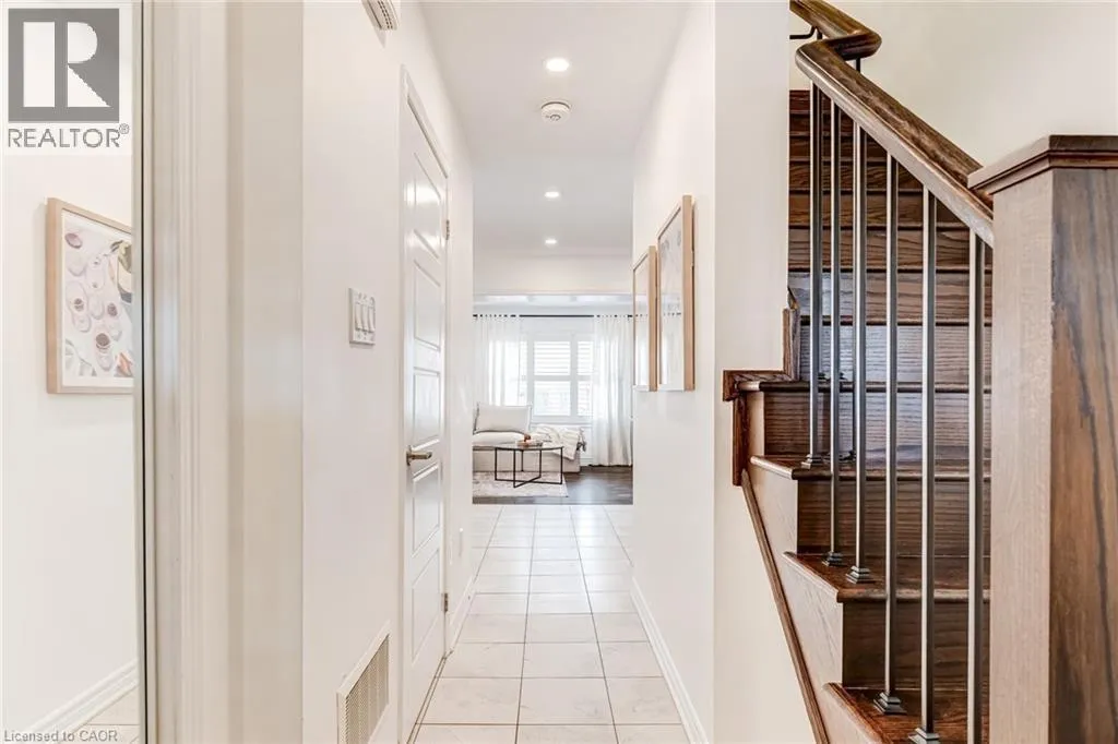 Spring Creek Drive to McMonies Drive FREEHOLD 2-storey home in the charming neighbourhood of Waterdown East! This 3 bedroom, 2.5 bathroom home has just under 1400 square feet and has been wonderfully maintained. The main floor has been refined with tasteful updates throughout ownership. The kitchen features painted cupboards with upgraded hardware, stone countertops with a stainless steel under-mount sink, stainless steel appliances and a large kitchen island with added seating. The spacious dining/living room boasts a flexible layout with two options for a dining area, cozy lounging space and a walk-out to the backyard. The main level is complete with a 2-piece powder room, smooth ceilings, neutral colour palette and pot lights. The second level has great functionality with 3 spacious bedrooms and an additional 4-piece bathroom. The primary bedroom features amazing storage with TWO large walk-in closets and a 4-piece ensuite. The unfinished basement can be customized to any buyers wants and needs and adds an additional 600 square feet to the overall living space, with an oversized double window for plenty of natural light, laundry space and storage space. This property is situated at the back of a very quiet street with a large covered front porch, serene fully fenced backyard, 1-car garage and 2-car driveway. A short drive to all the restaurants and amenities of Downtown Waterdown, a quick walk to parks and trails. (id:27476)