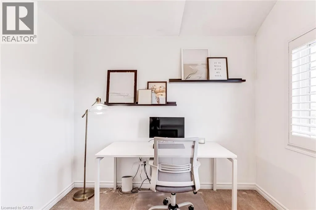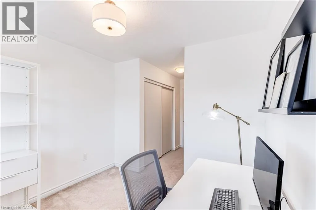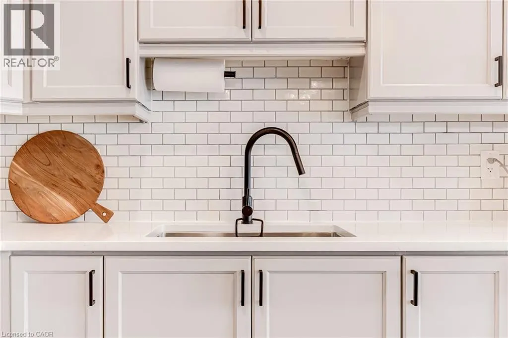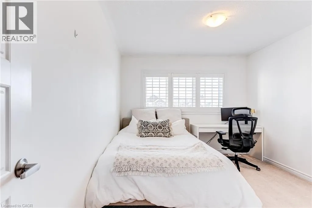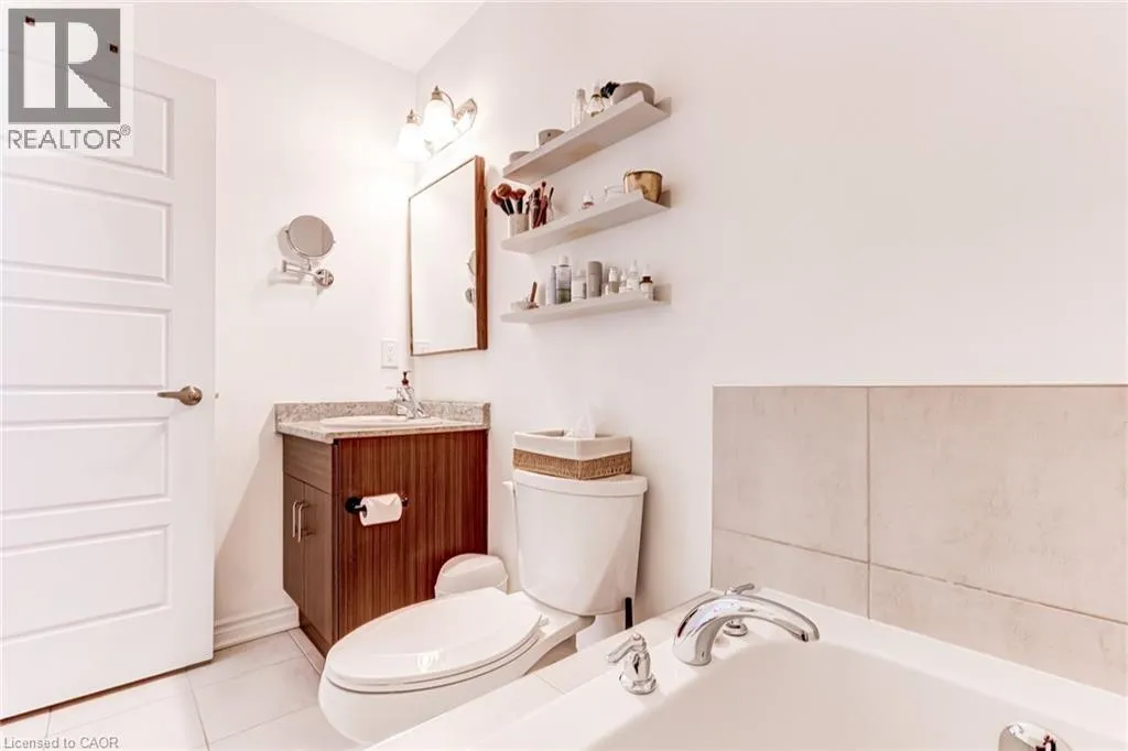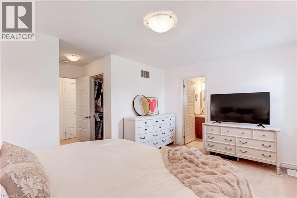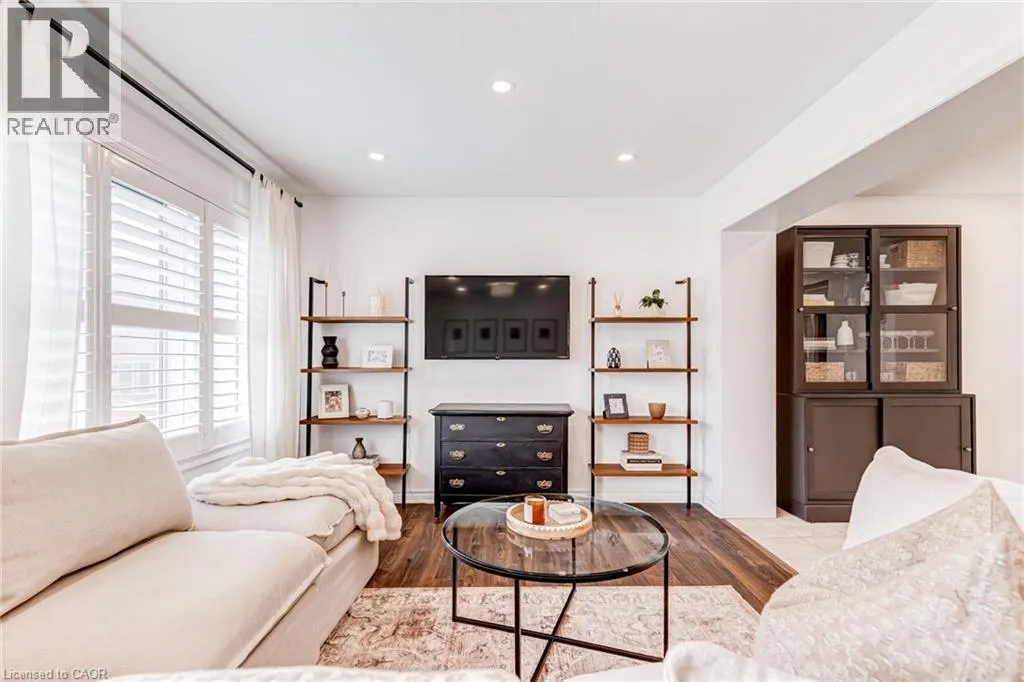 Spring Creek Drive to McMonies Drive FREEHOLD 2-storey home in the charming neighbourhood of Waterdown East! This 3 bedroom, 2.5 bathroom home has just under 1400 square feet and has been wonderfully maintained. The main floor has been refined with tasteful updates throughout ownership. The kitchen features painted cupboards with upgraded hardware, stone countertops with a stainless steel under-mount sink, stainless steel appliances and a large kitchen island with added seating. The spacious dining/living room boasts a flexible layout with two options for a dining area, cozy lounging space and a walk-out to the backyard. The main level is complete with a 2-piece powder room, smooth ceilings, neutral colour palette and pot lights. The second level has great functionality with 3 spacious bedrooms and an additional 4-piece bathroom. The primary bedroom features amazing storage with TWO large walk-in closets and a 4-piece ensuite. The unfinished basement can be customized to any buyers wants and needs and adds an additional 600 square feet to the overall living space, with an oversized double window for plenty of natural light, laundry space and storage space. This property is situated at the back of a very quiet street with a large covered front porch, serene fully fenced backyard, 1-car garage and 2-car driveway. A short drive to all the restaurants and amenities of Downtown Waterdown, a quick walk to parks and trails. (id:27476)