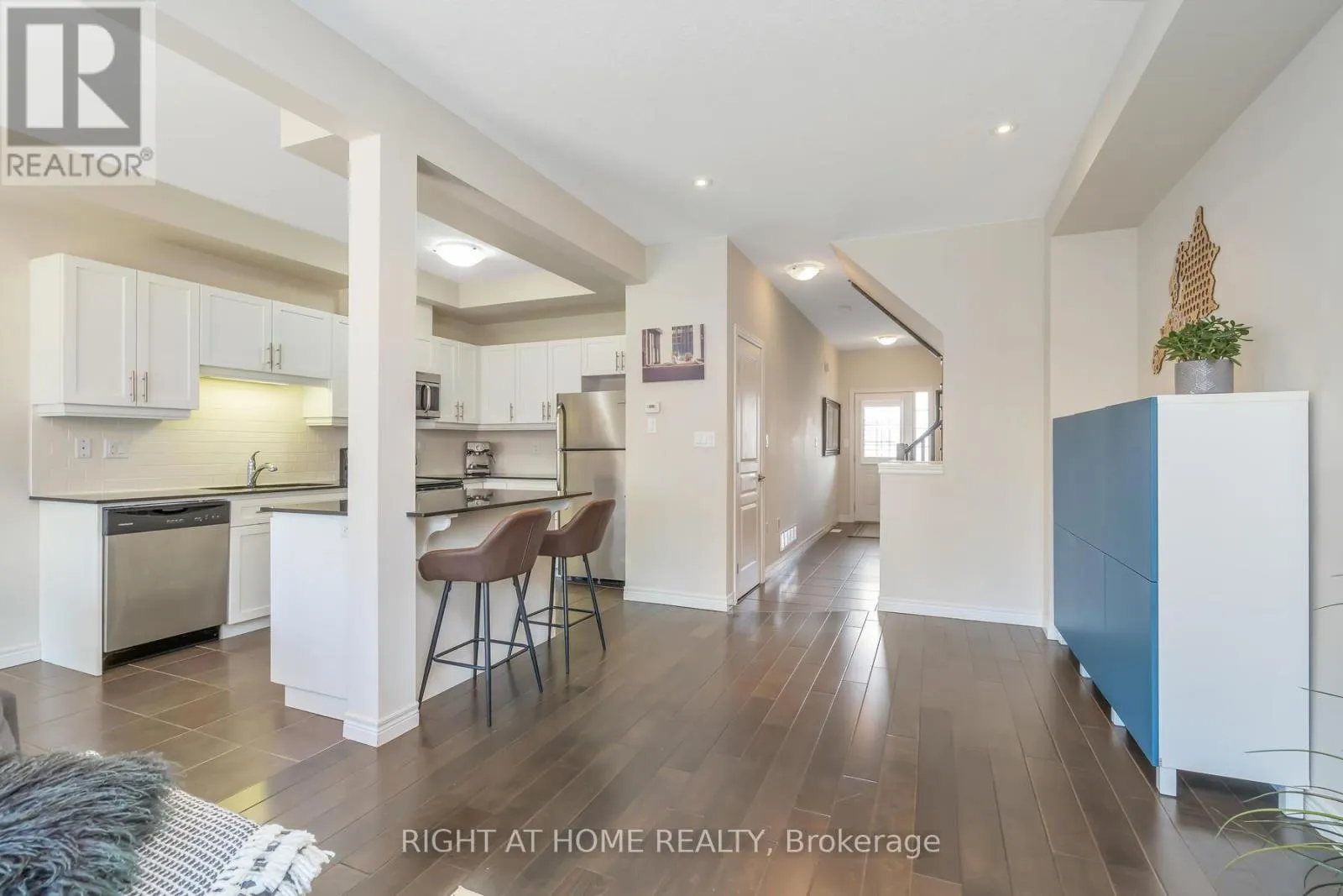 Royal Winter Dr. / Pumpkin Pass Arguably the best deal in Binbrook! Fully renovated freehold property on a quiet street. This 3 bed townhome offers an open concept main floor with 9" ceilings, California shutters, pot lights. Main floor featuring ceramic tile & rich hardwood floors through the living room & eat-in kitchen. Modern white kitchen cabinets, 4 stainless steel appliances & granite counters. Large kitchen island includes a breakfast bar overlooking the living room & loads of storage. The upper level offers new laminate flooring throughout with a spacious master bedroom with walk-in closet, a 4-pc ensuite bath with separate shower. Two other good size bedrooms. Another 4-pc bath & laundry. The untouched basement is ready to be finished and includes a rough-in for a 3-pc bath. Fully fenced backyard is ready for your personalized landscaping. The growing community of Binbrook offers a relaxed lifestyle with easy access to parks, conservation & recreational facilities, as well as providing all the conveniences & amenities such as grocery, restaurants & more. Note some photos are computer-modified. No Road Fees. (id:27476)