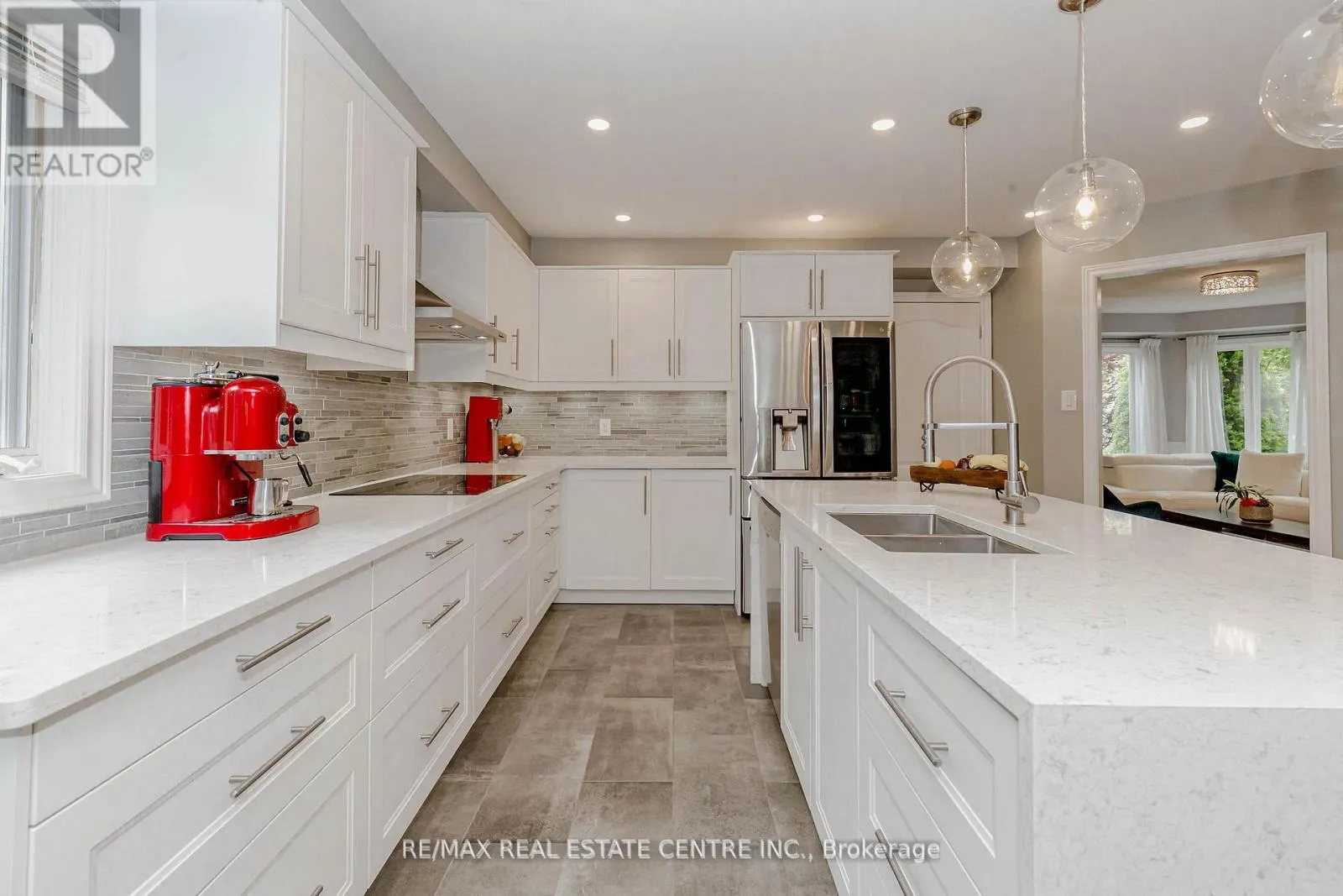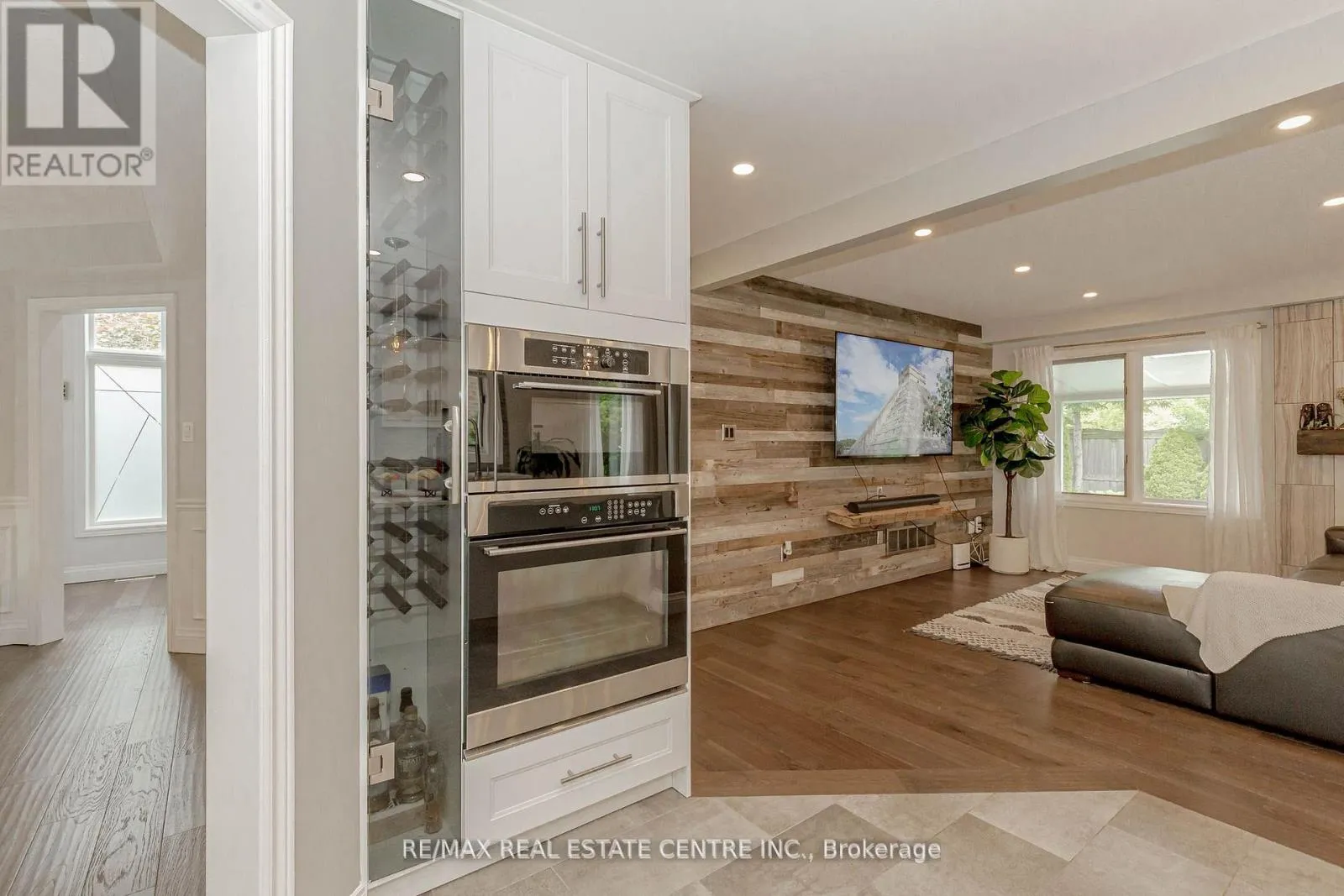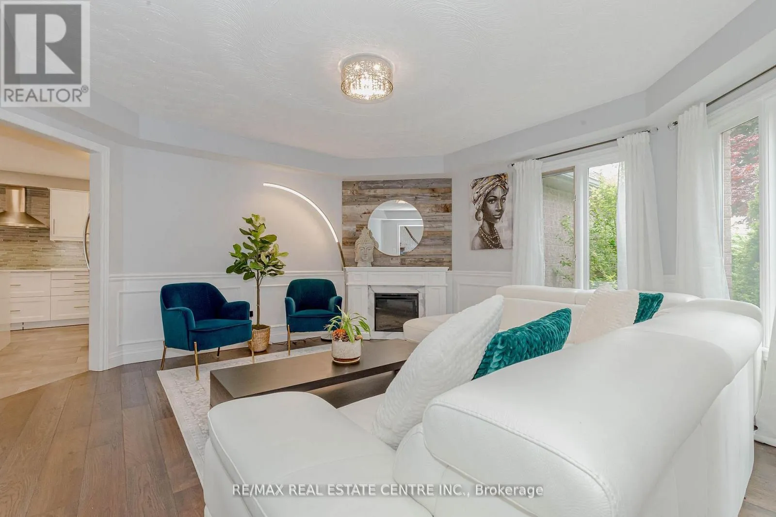 Parkside/Hollybush/Strathroy Stunning 3 bedrooms exec. double garage detached house 2566 sq. ft. (converted from 4 bedroom plan) on a premium 131' deep pie-shaped lot that is 61' wide across back of the house! Main floor has a bright & airy high ceiling foyer. New upgraded staircase and new wood flooring 2nd floor and landing areas (2026), upgraded wide-plank hardwood floors, formal liv. room with bay window, spacious dining room w/coffered ceiling & wainscotting, large family room w/rustic wood feature wall, gas fireplace w/porcelain tile surround & sliding door walk-out to sun room with skylight & walk-outs to back yard. Completely renovated designer kitchen w/custom white cabinetry, quartz counters, high-end built-in S/S appliances, large island with breakfast bar, open to family room. The professionally landscaped backyard oasis with covered interlock stone patio, BBQ area, lighting & inground heated saltwater pool w/newer liner (2019), new pool heater & pool pump (2025), great for time spend w/family and friends! (id:27476)