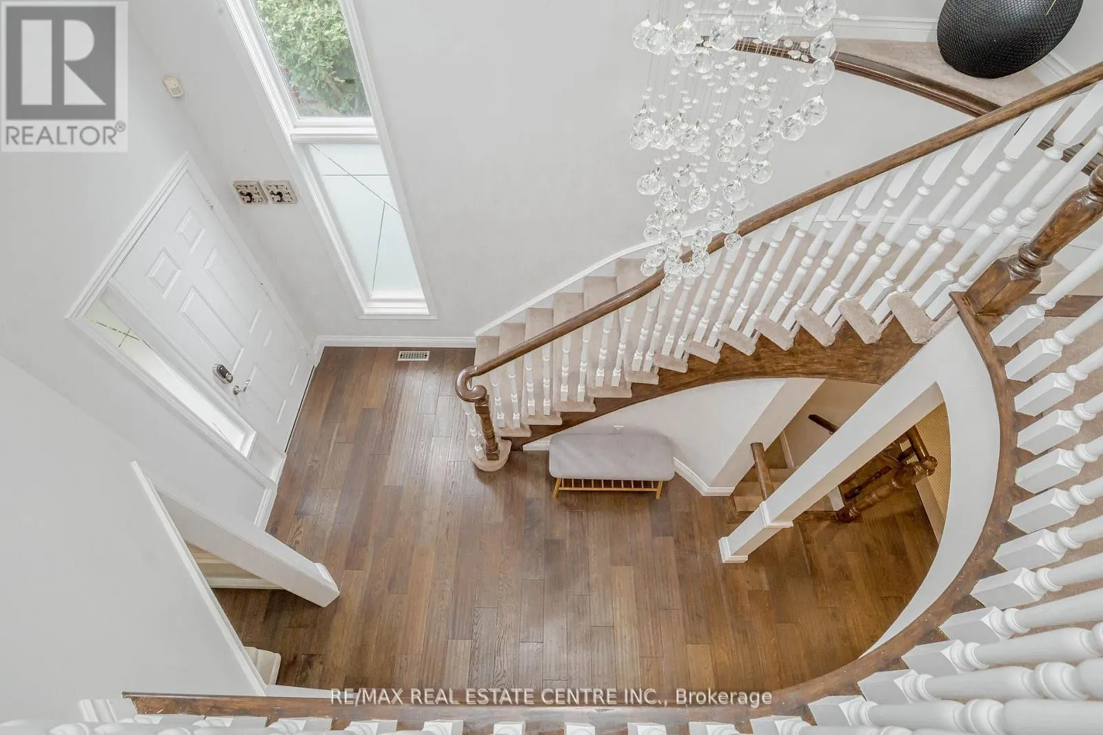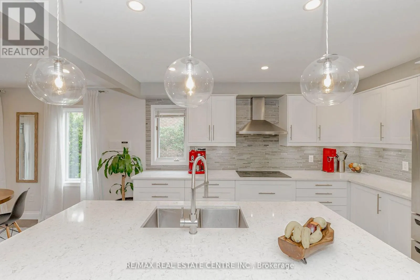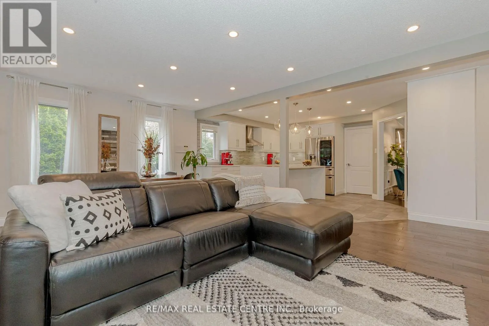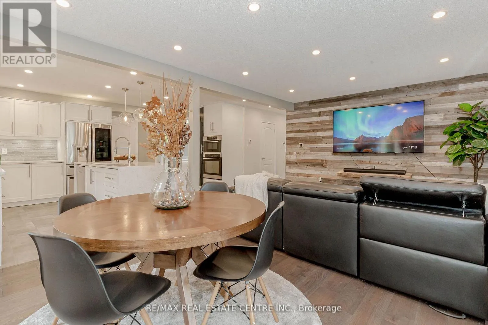 Parkside/Hollybush/Strathroy Stunning 3 bedrooms exec. double garage detached house 2566 sq. ft. (converted from 4 bedroom plan) on a premium 131' deep pie-shaped lot that is 61' wide across back of the house! Main floor has a bright & airy high ceiling foyer. New upgraded staircase and new wood flooring 2nd floor and landing areas (2026), upgraded wide-plank hardwood floors, formal liv. room with bay window, spacious dining room w/coffered ceiling & wainscotting, large family room w/rustic wood feature wall, gas fireplace w/porcelain tile surround & sliding door walk-out to sun room with skylight & walk-outs to back yard. Completely renovated designer kitchen w/custom white cabinetry, quartz counters, high-end built-in S/S appliances, large island with breakfast bar, open to family room. The professionally landscaped backyard oasis with covered interlock stone patio, BBQ area, lighting & inground heated saltwater pool w/newer liner (2019), new pool heater & pool pump (2025), great for time spend w/family and friends! (id:27476)
