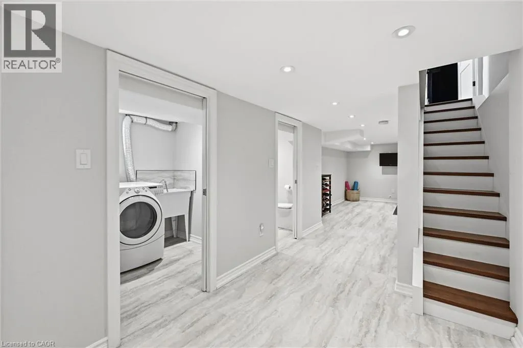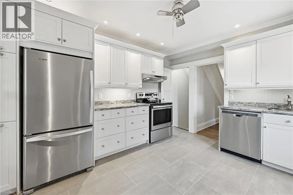 DUNSMURE AVE/BELLVIEW AVE Welcome home! This beautifully renovated detached century home offers 3 bedrooms and 2 full bathrooms, thoughtfully updated from top to bottom, inside and out. Step onto the newly replaced front porch and into a bright, open living and dining area showcasing refinished hardwood floors, crown moulding, and a cozy electric fireplace that highlights the homeâs timeless charm and character. The white eat-in kitchen has been replaced and features quartz countertops, stainless steel appliances, and direct access to a generous bonus space; perfect as a mudroom and pantry. The private, fully fenced backyard is a true retreat, complete with a newly replaced upper porch and lower deck surrounded by mature trees. Upstairs, the spacious primary bedroom features a bay window and a large closet with built-in organizers. Two additional spacious bedrooms, all with refinished hardwood floors, and a beautifully renovated 4-piece bathroom complete the second level. The fully finished lower level adds exceptional value with a comfortable recreation room, laundry area, large storage room, and a full 3-piece bathroom, ideal for guests or extra living space. Extensive updates include a replaced roof and eaves, siding, exterior doors, windows, driveway, porches, air conditioning, lead water service replacement, and backflow valve. Located in the heart of Downtown Hamilton, this beautiful, bright and spacious turnkey home is within walking distance to Gage Park and close to Hamilton GO, vibrant restaurants, shopping, and quick access to the QEW and Red Hill. A perfect opportunity to own in Hamiltonâs growing and dynamic market, do not miss it! (id:27476)