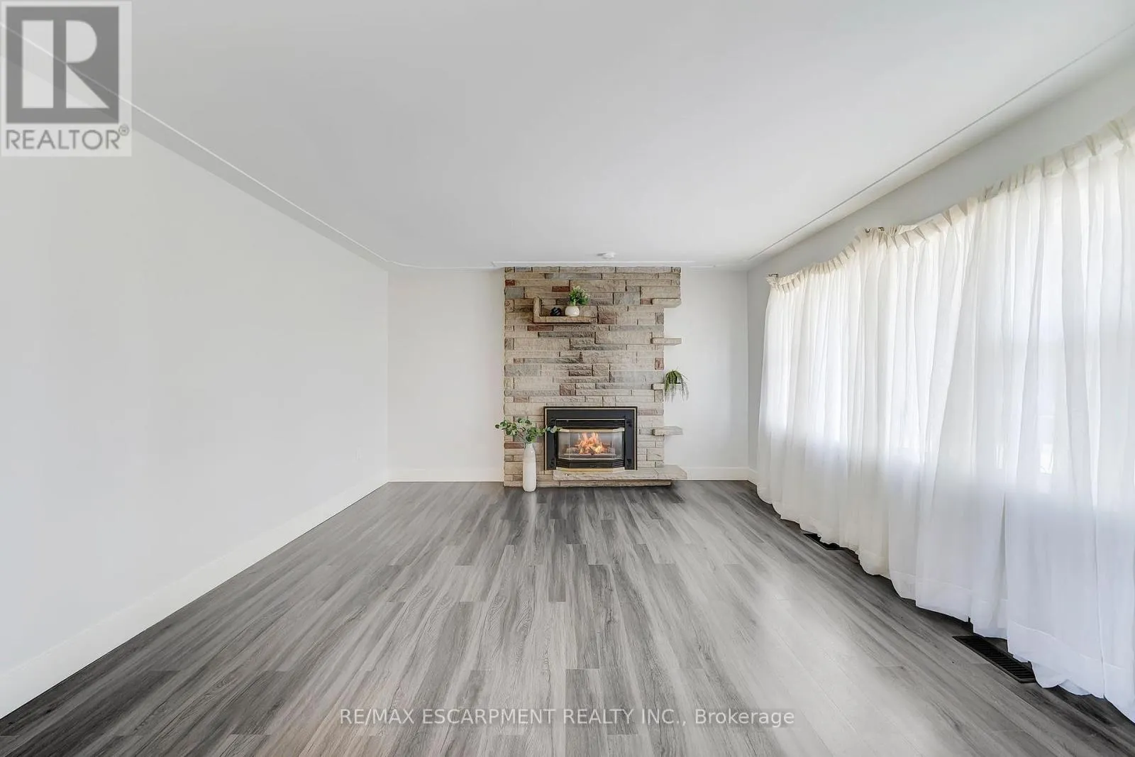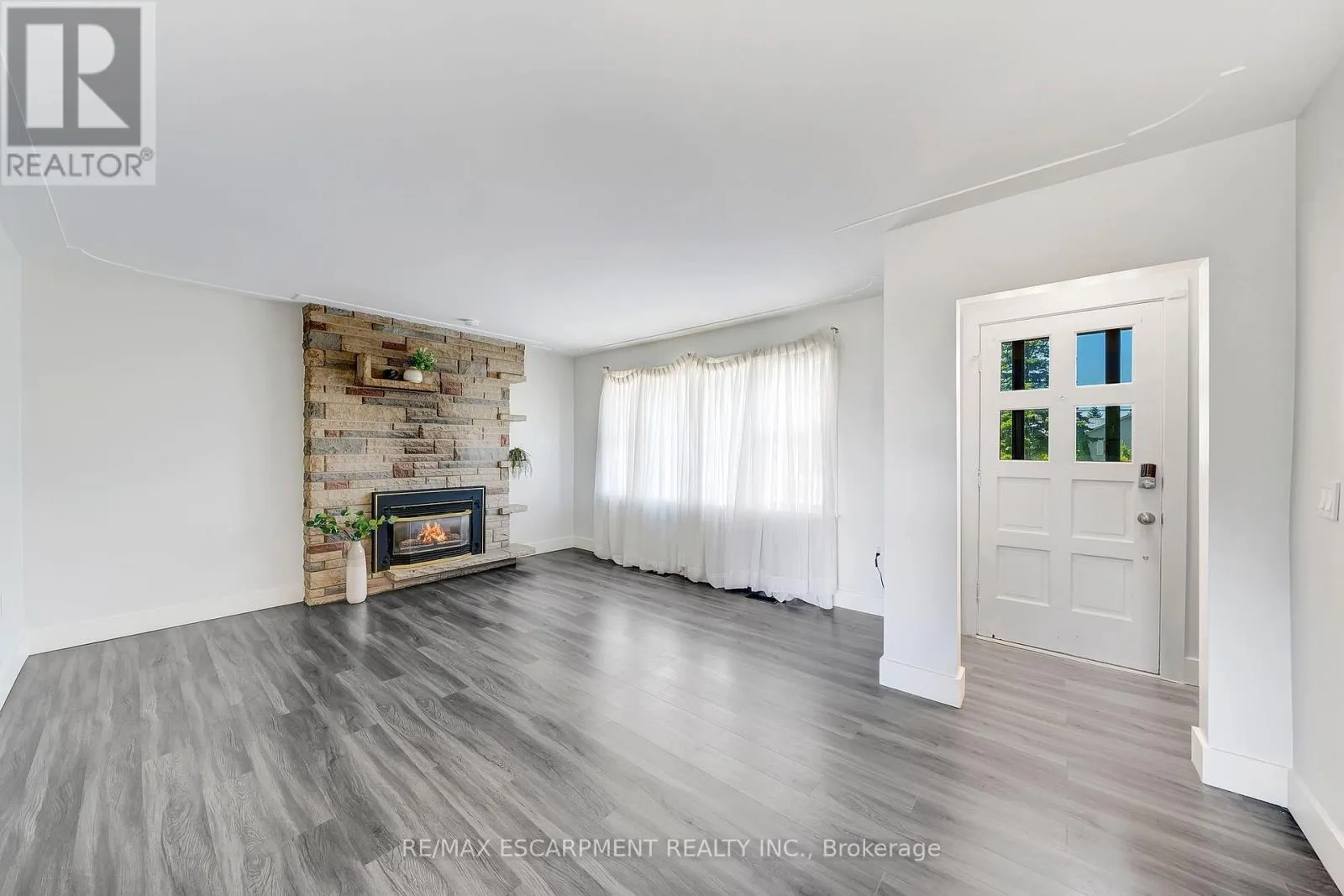 South on Miles Road from Rymal Rd E Welcome to your private retreat just seconds from city conveniences! Set on a beautifully treed 1.4-acre lot, this all-brick bungalow offers the perfect blend of peaceful country living and urban access. Surrounded by mature trees, this home provides a serene setting that feels miles away, while still being close to everything you need. The main floor features a modern kitchen, a bright and spacious dining area, and a large living room anchored by a stunning brick fireplace. With three generous bedrooms and a 4pc bathroom, there's plenty of room for comfortable family living. Downstairs, the lower level is ideal for extended family and features a shared laundry area, two additional bedrooms, a second 4pc bathroom, a full kitchen, and a bright open-concept living/dining area complete with an egress window. The home includes two separate entrances, offering added flexibility and convenience. Whether you're seeking space to grow, room for guests, or a multigenerational setup, this property checks all the boxes. Don't miss this rare opportunity to enjoy the best of both worlds, nature and convenience. (id:27476)