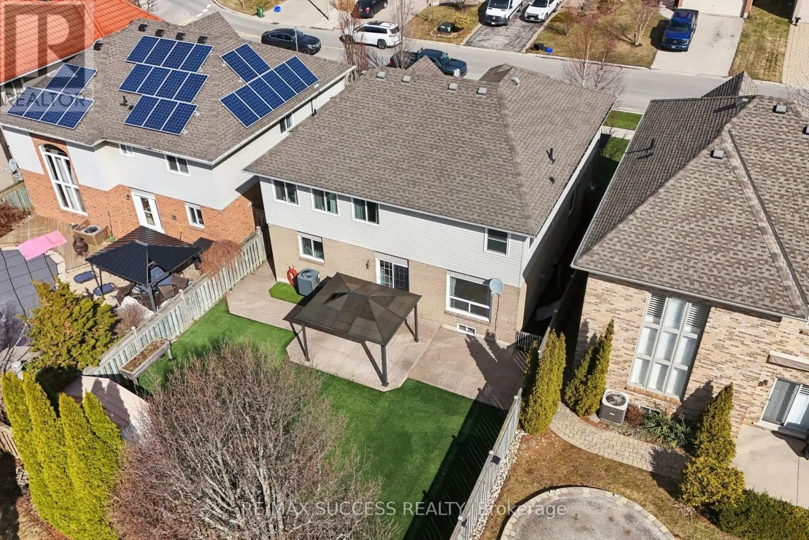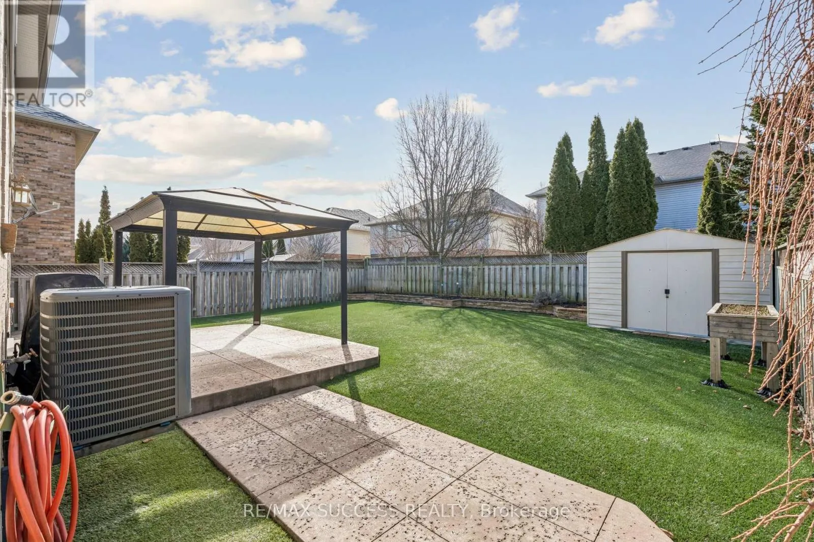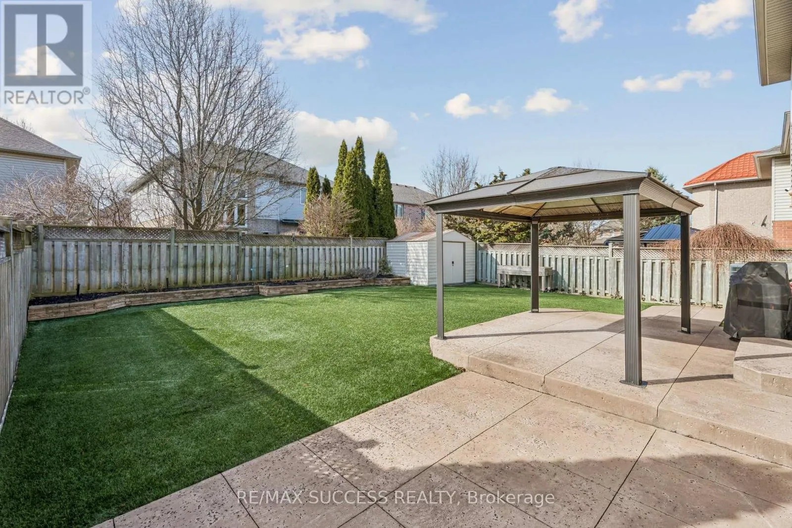 Cross Streets: Panabaker Dr or Liam Dr. ** Directions: Fiddlers Green Rd to Liam Dr to Braitwaite Ave. Executive home nestled in the highly sought-after Maple Lane Annex community of Ancaster. Outstanding curb appeal featuring professionally installed front turf and a stamped concrete double driveway -offering both style and convenience with minimal upkeep. At the heart of the home is a breathtaking gourmet, fully re-modelled designer kitchen that truly sets this property apart, featuring high-end custom cabinetry, pantry, an oversized island with seating, and premium built-in stainless steel appliances, including a gas stove with pot filler, bar fridge, and more, elegant pendant lighting, a timeless subway tile backsplash, and abundant natural light create a bright and sophisticated space ideal for both everyday living and entertaining. Walk out to your private backyard oasis complete with stamped concrete patio, gazebo, and professionally installed turf- enjoy a beautifully low maintenance yard. Main floor also offers a formal dining room and a welcoming family room with a cozy gas fireplace-perfect for gatherings with family and friends. Upstairs, the spacious primary retreat features his & hers walk-in closets and an exquisite 5-piece ensuite with heated floors, a soaker tub, and separate glass shower. The fourth bedroom has been thoughtfully converted into a convenient upper-level laundry room and can easily be reverted if desired. Additional highlights include a functional mudroom with garage access and a finished basement Perfectly located close to top-rated schools, parks, scenic trails, golf courses, and major highways, this home truly offers the best of Ancaster living. (id:27476)