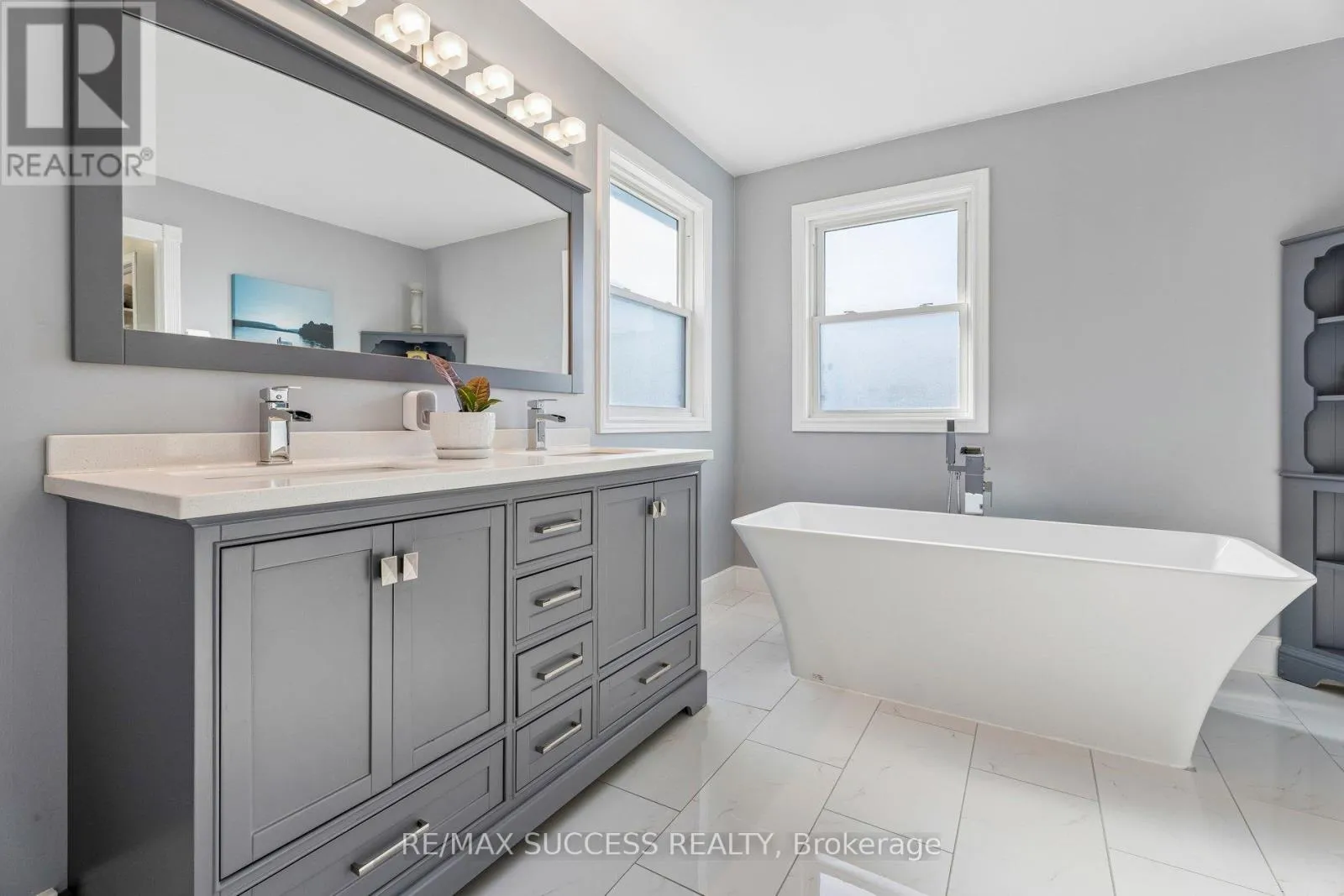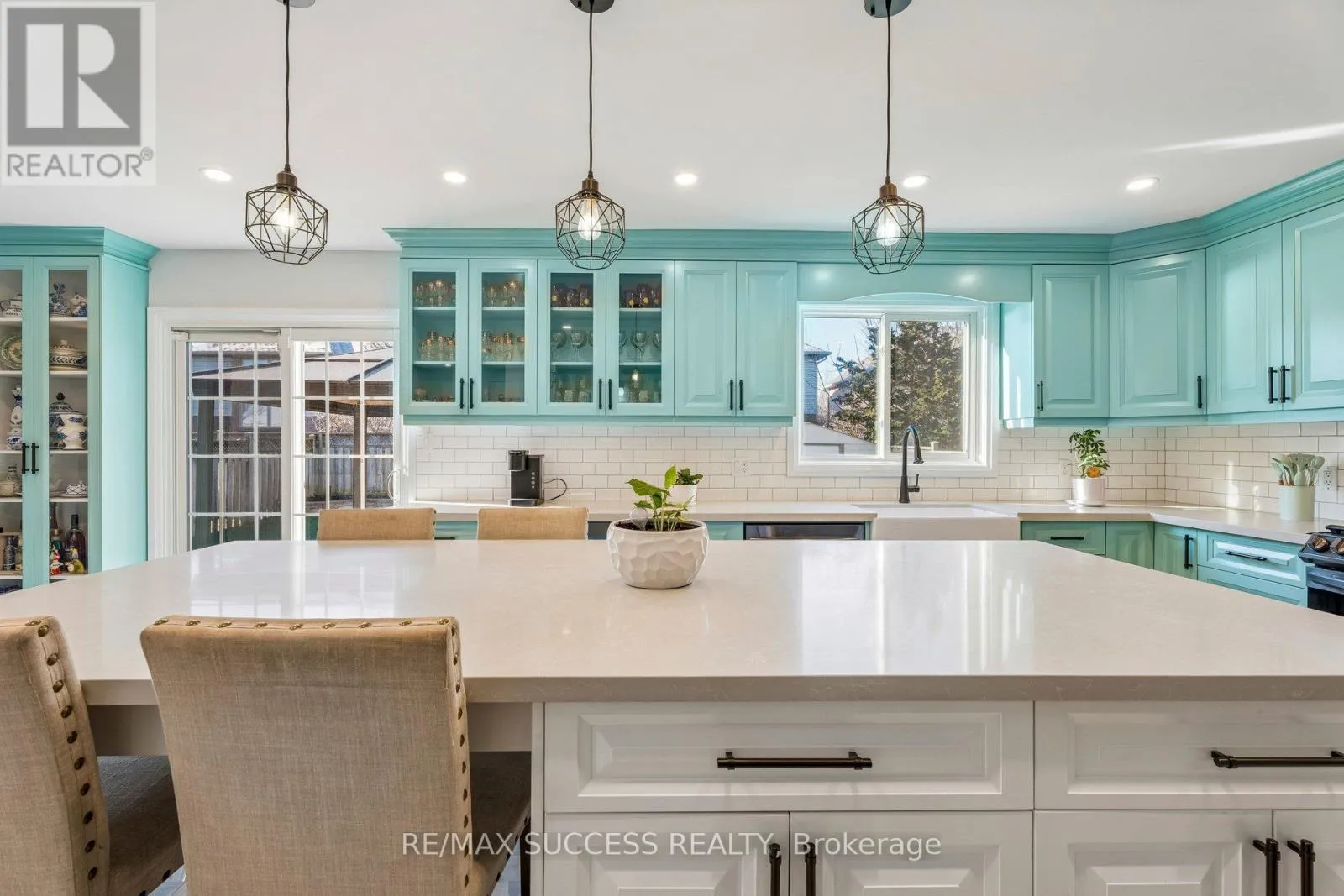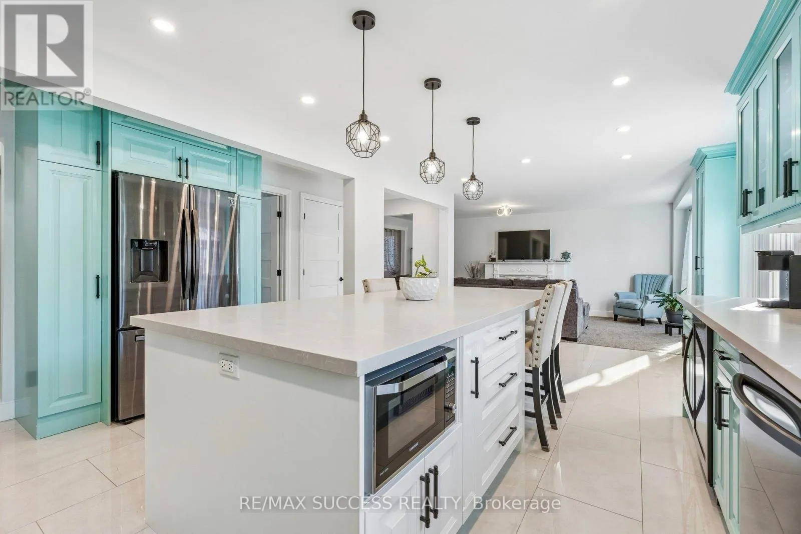 Cross Streets: Panabaker Dr or Liam Dr. ** Directions: Fiddlers Green Rd to Liam Dr to Braitwaite Ave. Executive home nestled in the highly sought-after Maple Lane Annex community of Ancaster. Outstanding curb appeal featuring professionally installed front turf and a stamped concrete double driveway -offering both style and convenience with minimal upkeep. At the heart of the home is a breathtaking gourmet, fully re-modelled designer kitchen that truly sets this property apart, featuring high-end custom cabinetry, pantry, an oversized island with seating, and premium built-in stainless steel appliances, including a gas stove with pot filler, bar fridge, and more, elegant pendant lighting, a timeless subway tile backsplash, and abundant natural light create a bright and sophisticated space ideal for both everyday living and entertaining. Walk out to your private backyard oasis complete with stamped concrete patio, gazebo, and professionally installed turf- enjoy a beautifully low maintenance yard. Main floor also offers a formal dining room and a welcoming family room with a cozy gas fireplace-perfect for gatherings with family and friends. Upstairs, the spacious primary retreat features his & hers walk-in closets and an exquisite 5-piece ensuite with heated floors, a soaker tub, and separate glass shower. The fourth bedroom has been thoughtfully converted into a convenient upper-level laundry room and can easily be reverted if desired. Additional highlights include a functional mudroom with garage access and a finished basement Perfectly located close to top-rated schools, parks, scenic trails, golf courses, and major highways, this home truly offers the best of Ancaster living. (id:27476)