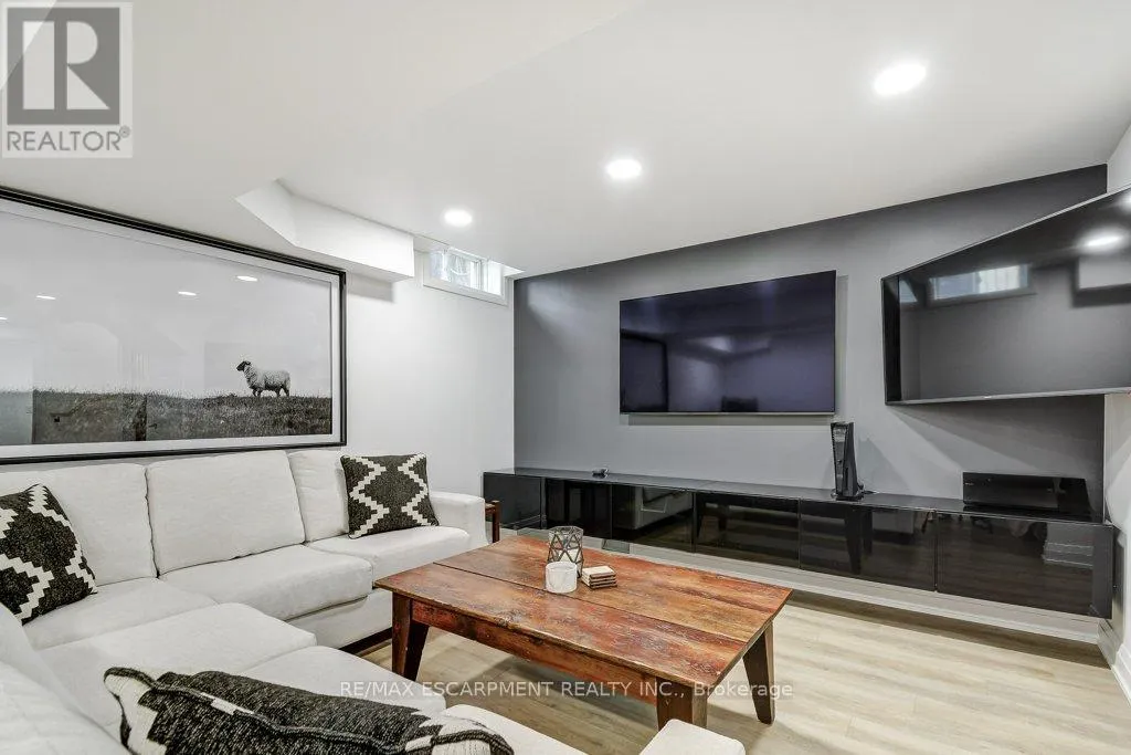 Cross Streets: HAMILTON ST N AND ROCKHAVEN LN. ** Directions: HAMILTON ST N, ROCKHAVEN LN, HARNESWORTH CRES. Beautifully renovated semi-detached home in one of Waterdown's most desirable neighbourhoods. The open concept main floor showcases stunning finishes, including a new gourmet kitchen with new appliances, oversized pots & pans drawers, pantry with pull out drawers, and a custom built-in bar. From the kitchen & dining area step out to a ground-level patio with gas BBQ hookup, ideal for easy indoor-outdoor living and entertaining. Thoughtful details like smart home features, custom live edge spalted maple shelving, upgraded lighting, flooring, baseboards, and trim elevate the space. The finished lower level features a cinema-worthy rec room designed for the tech-savvy, complete with smart WiFi features, double insulation, and soundproofing enhancements, perfect for movies, gaming, or entertaining. The lower level also comes with a home office and a modern laundry room. Enjoy a connected, active lifestyle just steps to parks, trails, schools, YMCA, shopping, restaurants, Memorial Park and the farmers' market. Only 10 minutes to Aldershot GO with quick access to Hwy 6, 403, 407, and the QEW, simplifying your daily commute. Designer finishes, smart features, and the perfect location - this home is not to be missed! (id:27476)