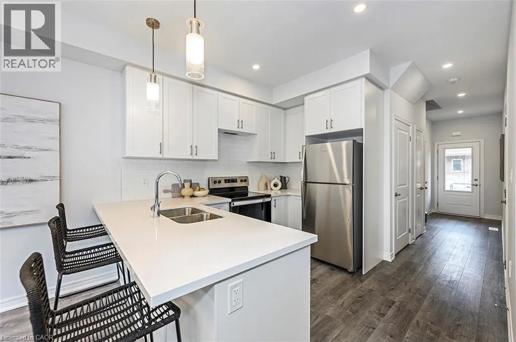 Upper James South White Church Road W Hampton Brook Way Thames Way. EVERYONE CAN BUY A NEW HOME WITHOUT TAXES - COME CHECK OUT OUR NEW PRICING. From the moment you step inside this brand-new freehold town you'll feel the DiCenzo difference. Flooded with natural light this brand-new townhome boasts 1430 sq ft of meticulously designed living space where every square foot has a purpose and no corner is wasted. Catering to modern-family living the main floor offers a sleek kitchen with peninsula, open concept layout a large family rom perfect for gathering with family and friends. The upper level offers a primary bedroom with 2 - yes you read that correctly - 2 walk in closets and a large tiled glass shower with built-in shelf and frameless glass door. Down the hall is a 4 pc bathroom, laundry and 2 generously - sized bedrooms. As part of our Pick-Your-Finishes collection this home already boasts approximately $18,000. in pre-construction upgrades including but not limited to; 200 amp service, Ac unit, oak stairs with 2 landings, pot lights, floor to ceiling bumpout with a 42 Napolean fireplace, smooth texture ceilings throughout, wide-plank vinyl flooring throughout the main level and a 3 pc rough-in for a future bathroom in the basement. This home is built however there is still time to choose your finishes - counters, cupboards, floors, vanities and carpet. Customize it in consultation with our design professionals. This home has the added advantage of backing onto no rear neighbors! Price is inclusive of government rebates. Please note this home is still under construction. Photos are of a similar model. (id:27476)
