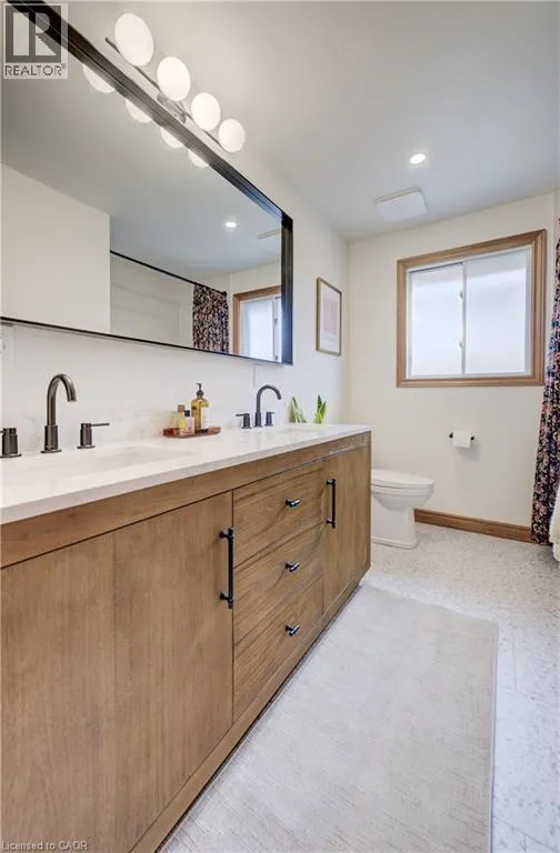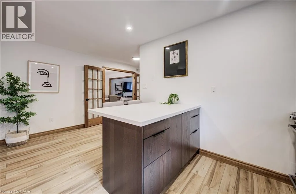 Upper Wellington, South of Stone Church, to DiCenzo Welcome to a beautifully updated three-bedroom raised bungalow nestled in a highly sought-after, family-friendly neighbourhood on the Central Hamilton Mountain. Step inside to discover modern flooring that flows seamlessly through the main living areas, creating a warm and cohesive feel. The bright dining room connects to the inviting front family room perfect for both everyday living and entertaining. The recently updated kitchen is sure to impress, featuring quartz countertops, a deep undermount sink, and thoughtfully designed cabinetry that offers both style and functionality. The main level is complete with three well-appointed bedrooms and a spacious five-piece bathroom, ideal for growing families or those seeking comfortable, single-level living. The lower level offers incredible versatility, with a separate entrance, generous ceiling height, and a flexible layoutâpresenting excellent potential for an in-law suite or multi-family setup and a large rec room provides additional living space. Full of character and loaded with updates, this home is a fantastic opportunity in a prime Hamilton Mountain location, close to schools, parks, shopping, and all essential amenities. (id:27476)