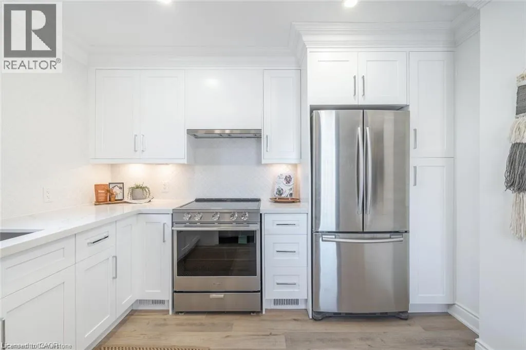 MAIN ST E, NORTH ON BARNESDALE AVE S TO EDWARD Welcome to hotel-quality living in the heart of Hamiltonâs vibrant Gibson Stipley neighbourhood! Recently renovated from top to bottom, this bright and sophisticated home delivers modern luxury, thoughtful design, and true move-in-ready convenience. Step inside to an open-concept main floor that feels straight out of a boutique hotel. Designer flooring flows seamlessly through the spacious living and dining area, leading to a stunning gourmet kitchen featuring custom white cabinetry, brand-new stainless-steel appliances, and an impressive countertop-to-ceiling tiled backsplash. The stylish 2-piece powder room adds a touch of elegance with its modern vanity and luxurious wallpaper. Upstairs, youâll find two bright and generous bedrooms, each with large windows and excellent closet space. The spa-inspired bathroom is a true showstopper, complete with a double-sink vanity, deep soaking tub, and a sleek glass rainfall shower, all finished to premium standards. Located steps from some of Hamiltonâs best amenities including Playhouse Cinema, Tim Hortons Field, trendy bars and restaurants, public transit, parks, and the hospital. If you're looking for a home that blends style, comfort, and impeccable upgrades, this is the one! (id:27476)