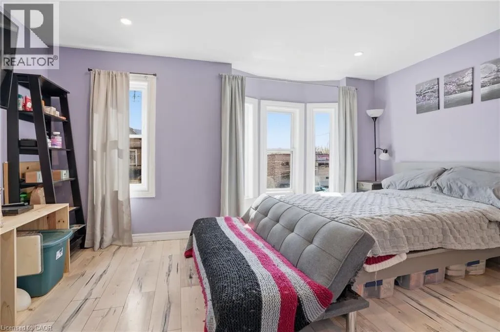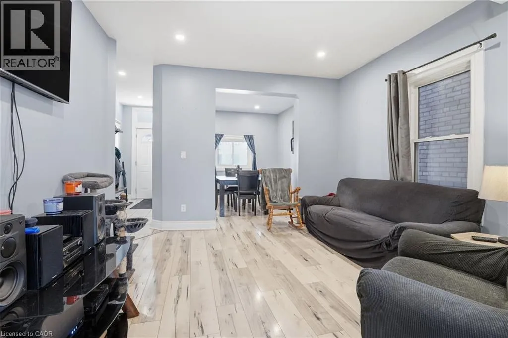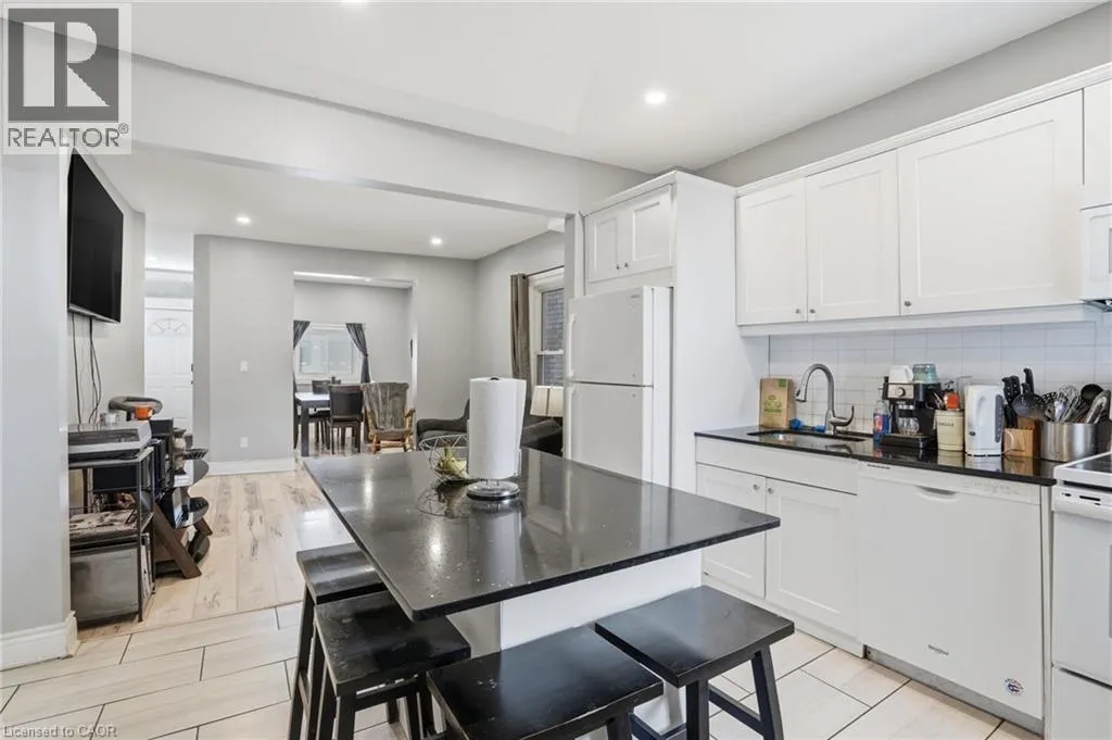 Welcome to 75 Niagara Street â a stunning fully renovated 2.5-storey residence offering over 1,900 sq. ft. of refined living space, thoughtfully redesigned with upscale finishes and modern functionality throughout. Featuring 4+1 bedrooms and 4 bathrooms, this exceptional home blends timeless character with contemporary luxury, ideal for families, professionals, or savvy investors seeking turnkey versatility. The open-concept main floor impresses with soaring ceilings, elegant laminate flooring, and an expansive living and dining area designed for both comfortable everyday living and entertaining. The custom kitchen showcases a generously sized island, premium granite countertops, stylish backsplash, and abundant cabinetry, creating a perfect balance of design and practicality. The second level features a luxurious primary retreat with a private 3-piece ensuite, while the spacious second bedroom offers access to a walkout balcony â ideal for morning coffee or evening relaxation. A beautifully finished full bathroom completes this level. The third floor provides two additional bright, well-proportioned bedrooms offering flexibility for family living, guests, or a home office. The professionally finished basement with separate entrance presents excellent in-law suite or income potential, complete with a kitchenette, additional bedroom, and modern 3-piece bathroom â ideal for multi-generational living or rental opportunities. Enjoy private outdoor living with a fully fenced backyard, stone patio, and newly constructed front deck, perfect for entertaining or unwinding. Extensive upgrades include a new roof, newer A/C, updated windows, modern finishes, and main floor laundry with backyard access. Ideally located minutes from downtown Hamilton, Bayfront Marina, West Harbour GO Station, cafés, parks, and major highways, this property offers an exceptional blend of luxury, lifestyle, and investment potential in a rapidly growing neighbourhood. (id:27476)