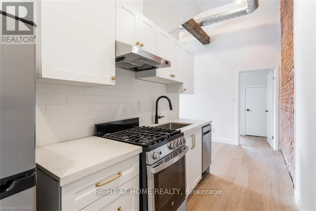 Wilson & Catharine Exceptional 1 Bedroom 1 Bathroom Unit. Top Level of Fully Renovated and Remodeled Century home. Separate Entrance With Private, Bright Windows and Lots of Natural Lighting Throughout. Large Living Room Area With Glorious Exposed Brick. Well Sized Bedroom Also With Exposed Brick Feature. Modern Kitchen With SS Appliances Including Dishwasher and Gas Range. In Suite Laundry and Plenty of Parking at a cost of $50/month. Close Walking Distance to Amenities Including Restaurants, Farmers Market and Parks. Access to Public Transit Including Go System. (id:27476)
