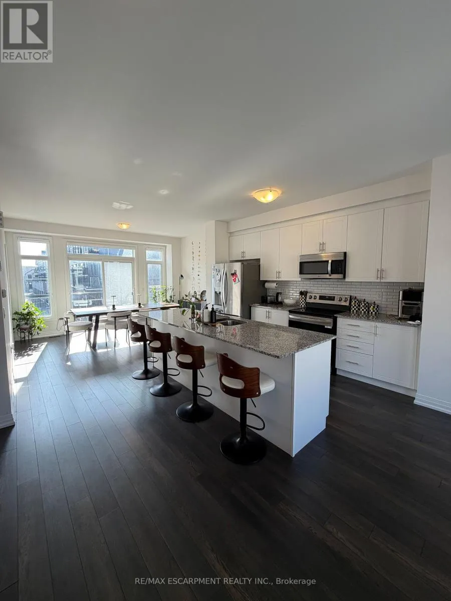 Airport Road Welcome to a under 1 year new home in the highly desirable town of Mount Hope, Hamilton! This stunning three-story townhouse offers the epitome of modern living, boasting approximately 1900 sqft of meticulously designed space. Step inside to discover a haven of luxury and comfort. The main level greets you with an inviting ambiance, featuring sleek hardwood flooring, setting the tone for elegance throughout. Entertain with ease in the upgraded kitchen, where premium finishes abound. Revel in the beauty of granit countertops, complemented by MDF cabinets, a stylish faucet, and a spacious sink-perfect for culinary enthusiasts and gatherings alike. Enjoy seamless indoor-outdoor living with a beautiful balcony accessible from the living, kitchen, and dining areas. Whether you're savoring morning coffee or hosting soirées under the stars, this space offers a serene retreat for relaxation and connection. Convenience meets luxury with a two-car garage, providing ample parking and storage options. Plus, the proximity to Hamilton Airport ensures easy access to travel, making commuting a breeze for jet setters and commuters alike. Don't miss the opportunity to make this brand-new townhouse your own-a place where sophistication meets comfort, and every detail is crafted with care. (id:27476)