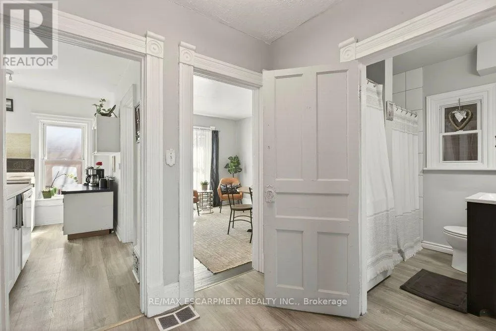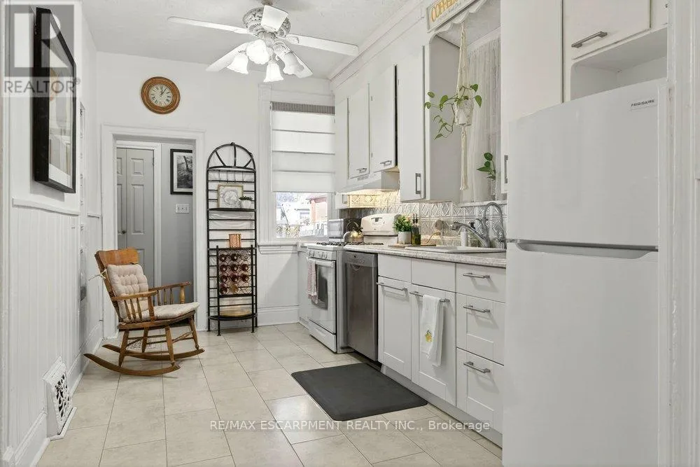 Cross Streets: BARTON STREET EAST. ** Directions: Wentworth St N to Barton St E to Cheever St. Set in the heart of Hamilton, this lovingly updated character home offers the perfect blend of timeless charm, flexible living space, and incredible future potential. Step inside to a bright white kitchen, inviting living room, and large formal dining area designed for both everyday comfort and effortless entertaining. A stylish four-piece bath completes the main floor. Upstairs, the second level offers a rare and versatile layout with two spacious bedrooms, a second full kitchen, convenient laundry, and an additional four-piece bathroom, ideal for extended family, in-laws, or comfortable multi-generational living. The third floor adds two more generous bedrooms, creating plenty of space to suit any need. The recently waterproofed basement with sump pump adds exceptional value, featuring a second laundry area and separate walk-up entrance to the backyard, offering endless possibilities for additional living space or future suite conversion. Thoughtfully updated over the years for peace of mind, improvements include a metal roof, newer windows/doors, water softener/purifier, updated electrical, concrete driveway and fence and more. Outside, enjoy a private backyard retreat with a newer concrete patio and driveway, steel fire escape, and parking for two vehicles. Beautiful stained glass details add warmth and character throughout. With its unique layout, multiple living spaces, and flexibility for multi-generational living, this is a rare opportunity to own a truly special home in one of Hamilton's most charming and established neighbourhoods. (id:27476)