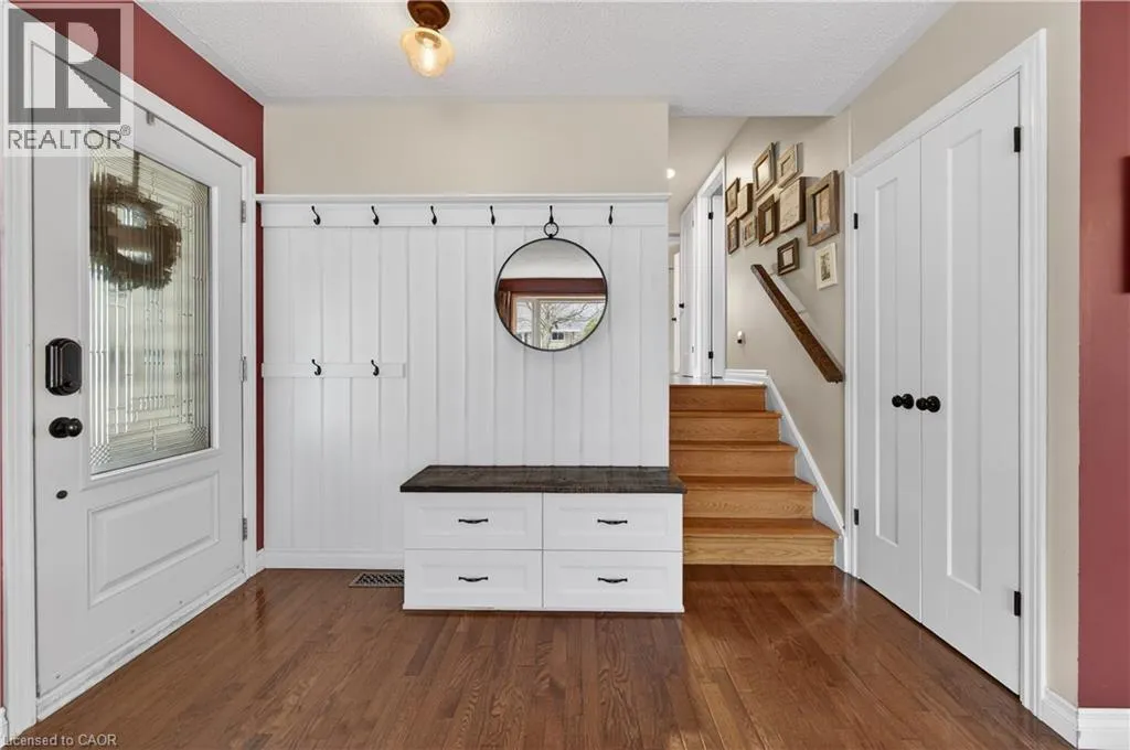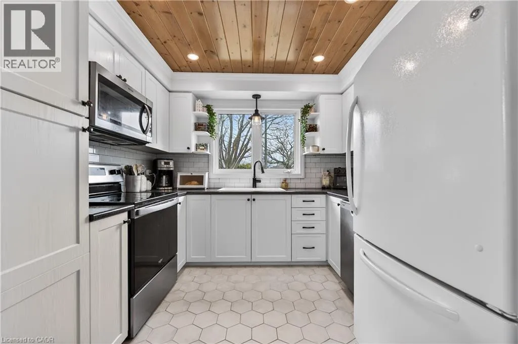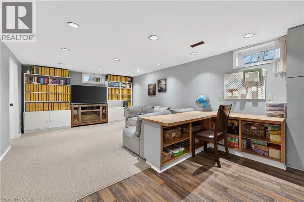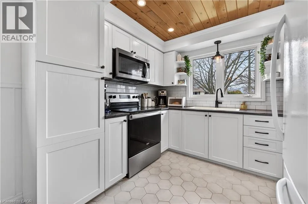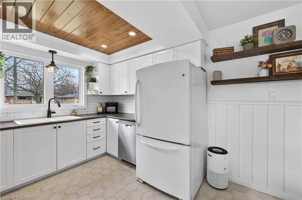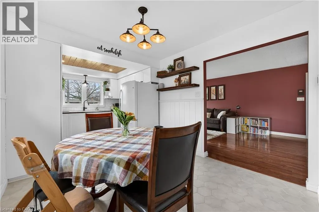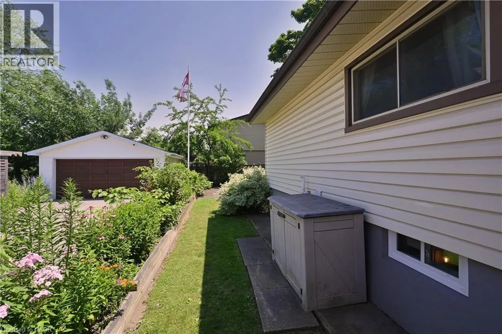 From the LINK: travel north on Garth, turn east on Limeridge Rd W, turn north on Elgar, property on the right Welcome to this beautifully maintained 4+1 bedroom, 2 full bath 3-level backsplit located in a highly desirable West Mountain neighbourhood. The renovated kitchen and dining area features heated floors and a walkout to a private patio with awning - ideal for indoor-outdoor living. The formal living room showcases hardwood flooring and a bright bay window with built-in seating. Upstairs includes four generously sized bedrooms and a stylishly updated 4-piece bath. The fully finished lower level offers a spacious rec room with built-ins, an additional bedroom/office, updated 3-piece bath, and a refreshed laundry/utility area. Step outside to a large backyard featuring mature trees, beautifully maintained gardens, and a charming decorative garden shed. Updates include a metal roof and new eavestroughs (2017), Bath Fitter tub (2018), and a full kitchen/dining renovation with heated floors, basement flooring, and newly paved driveway (2020), new mechanicals (furnace, A/C, rented water heater), a Whirlpool range, and stacked dryer (2021), renovated bath/laundry 2022, Whirlpool washer (2025) and dishwasher (November 2024). With a convenient side entrance from the dining area, this home offers excellent in-law suite potential. Conveniently located close to schools, parks, recreation, shopping, the Linc, and major highways. (id:27476)