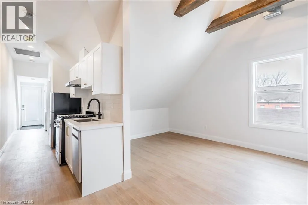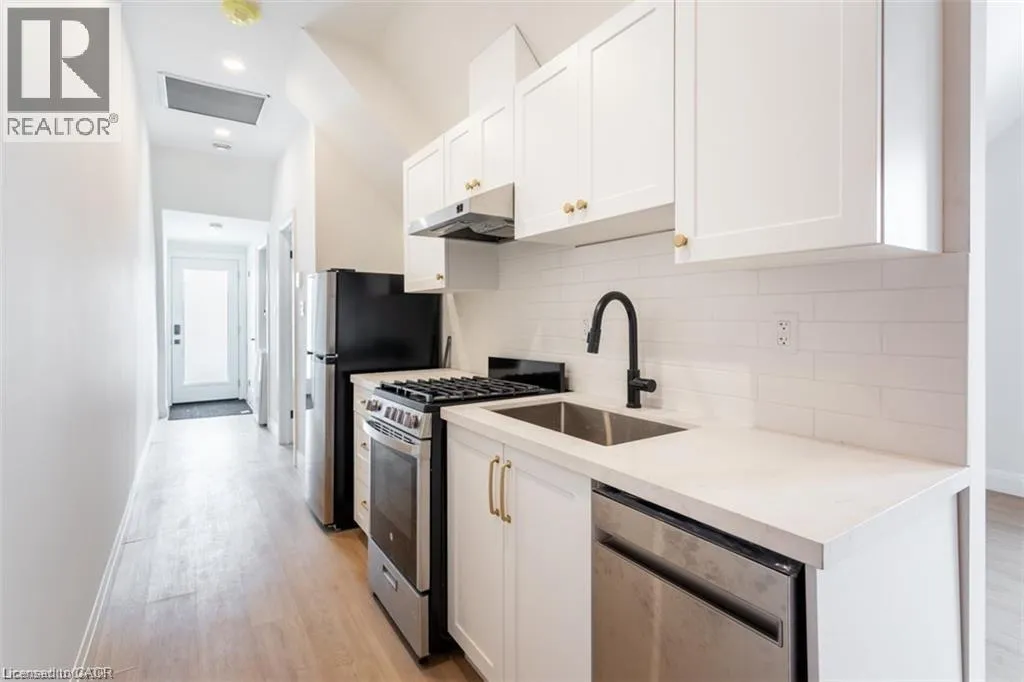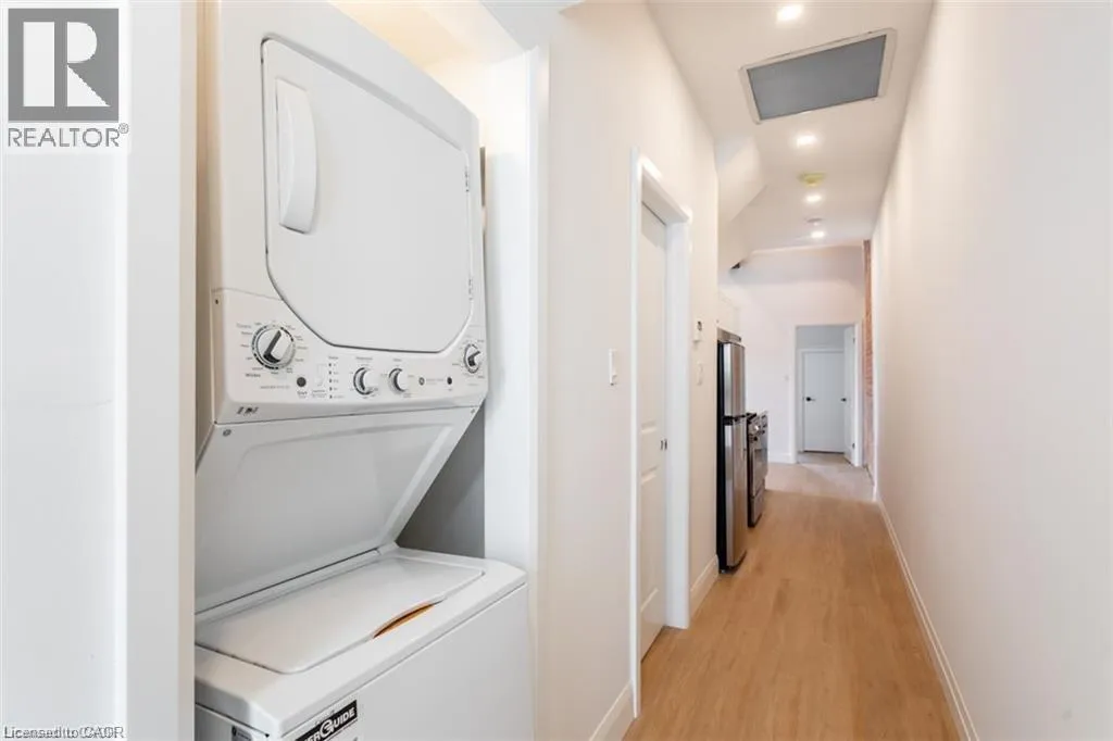 Wilson St, Left On Mary St, Left On Cannon St E, Left On Catharine St N 2 Bedroom 1 Bathroom Unit to lease in clean well maintained building. Open concept living and kitchen area featuring light vinyl floorings, quartz counter top in the kitchen and stainless steel appliances including gas range and a dishwasher. In unit laundry for added convenience. Large recessed windows let plenty of light into the unit. Enjoy a little outdoor hideaway just off the main entry. Perfect for morning coffee or after dinner treat. Gas included in lease price. Parking available at an extra fee of $50. Enjoy fantastic walkability. 8 minutes walk to Hamilton General, 5 min to James ST N shopping, cafes and restaurants. 10 minutes by transit to McMaster University. (id:27476)