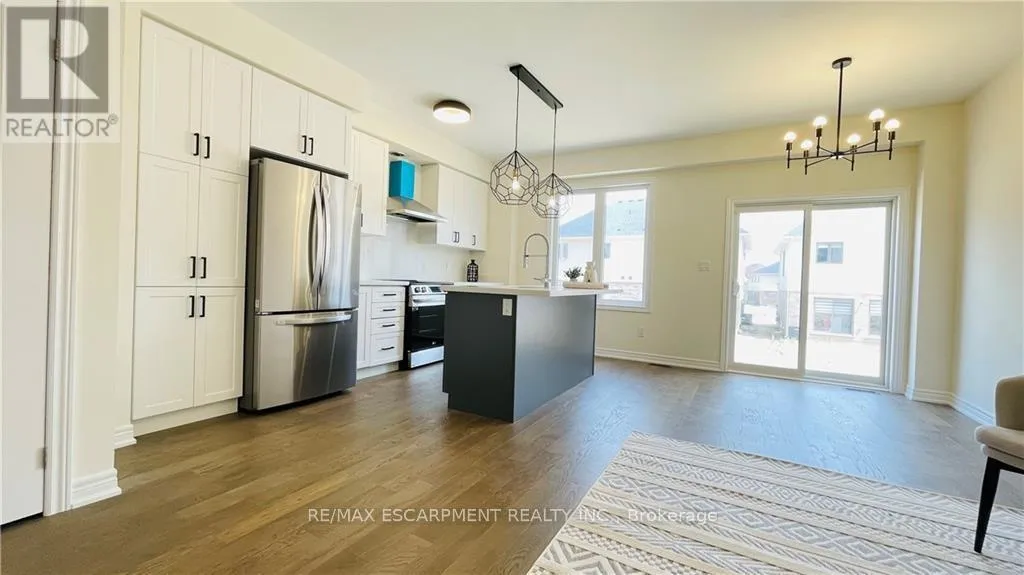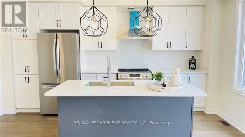 Cross Streets: Upper James & Decenzo. ** Directions: Upper James to Regina to Decenzo to Mia. Welcome home to 27 Mia Drive - a beautifully upgraded 1-year-old townhouse offering modern style and everyday comfort in a growing, family-friendly community. This spacious 3-bedroom, 3-bath home features upgraded contemporary hardwood flooring throughout the main level and smooth ceilings for a clean, modern feel. The thoughtfully designed kitchen showcases split-finish, soft-close cabinetry with extended upper cabinets, a 2' pantry, upgraded hardware, and sleek quartz countertops paired with a full quartz backsplash. Brand new stainless steel appliances complete the space, making it both functional and stylish. The bright dining area offers a walk-out to the backyard - perfect for easy indoor-outdoor living and entertaining. Upstairs, you'll find three well-sized bedrooms, including a comfortable primary retreat featuring a walk-in closet and a private 3-piece ensuite. All bathrooms have been tastefully upgraded with modern finishes. Ideally situated in a newer subdivision, this home is just steps to Dr. William Bethune Park and conveniently close to shopping, restaurants, and everyday amenities - offering the perfect blend of comfort, style, and location. (id:27476)