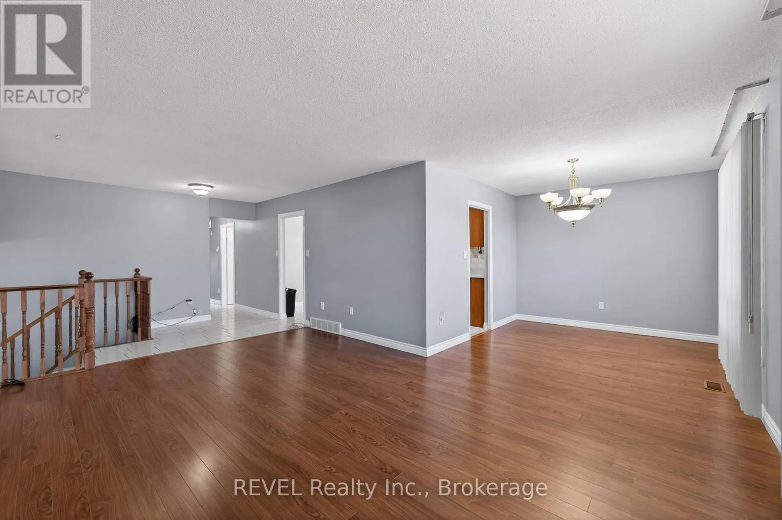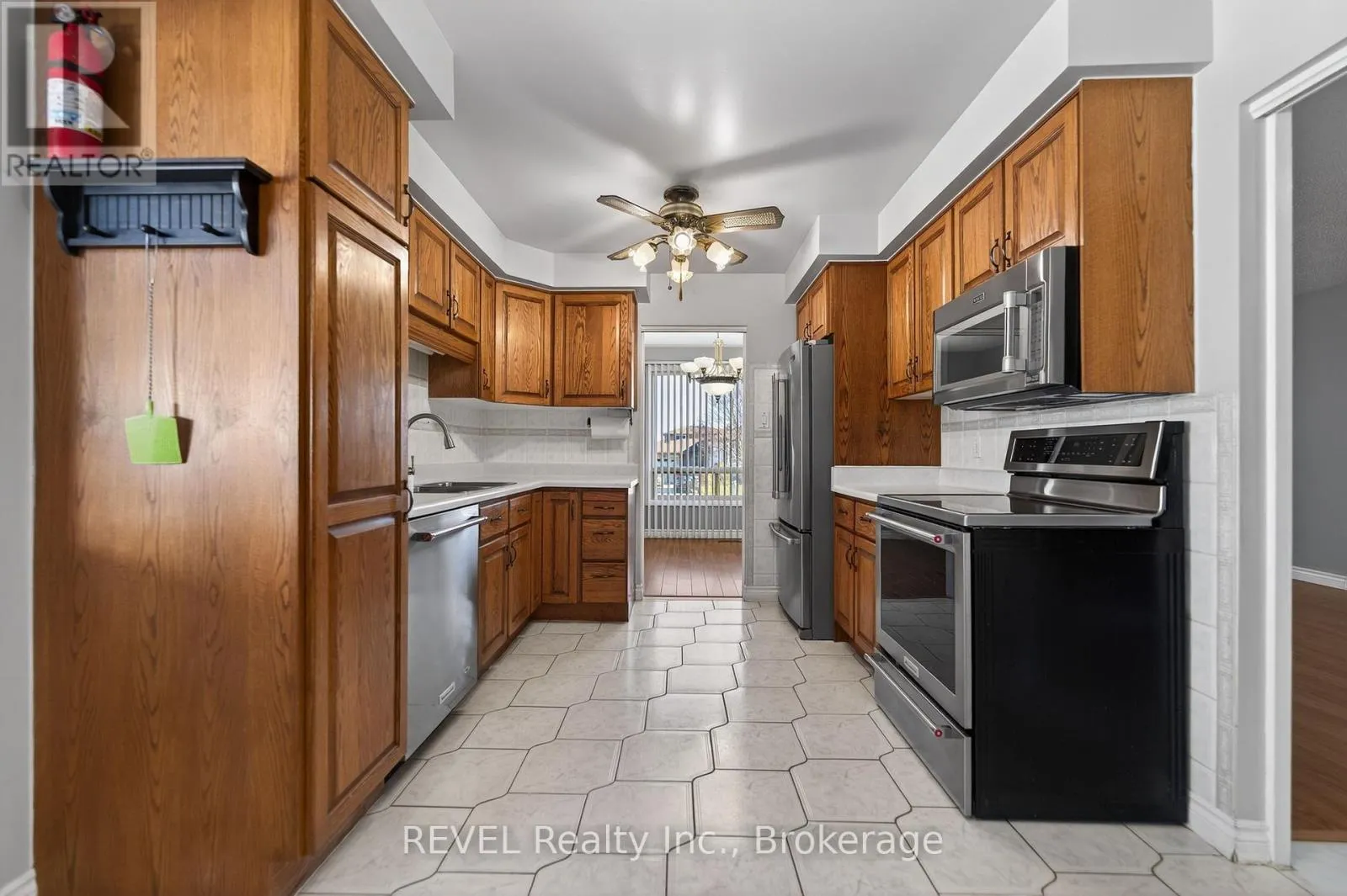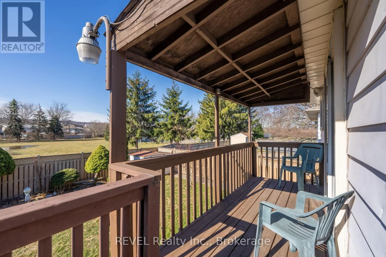 Cross Streets: Barton and Hale St. ** Directions: Barton St to Hale St to Seaton Pl Dr to Lynwood. Welcome to this spacious side-split home in the heart of Stoney Creek offering over 2,500 sq ft of finished living space and a layout that provides flexibility for families, entertaining, or multi-generational living. Ideally located with direct rear gate access to Ferris Park and no rear neighbours, this property offers both privacy and convenience.Step through the insulated front porch into a bright and functional main level featuring an open-concept living and dining area with laminate flooring. The kitchen is equipped with stainless steel appliances and a cozy dinette space. Two bedrooms on the main floor both with carpet flooring, along with a 4-piece bathroom. The spacious primary bedroom includes a walk-in closet and patio doors leading to a raised wood deck overlooking the backyard and park.The fully finished lower level expands the living space with a good sized rec room complete with a gas fireplace, vinyl flooring, and patio doors that walk out to the backyard. Two additional bedrooms with newer vinyl flooring, a 4-piece bathroom, and a laundry room with washer and dryer complete the level. With a separate basement walk-up, this space offers excellent potential for an in-law suite or rental setup. Enjoy outdoor living with a large concrete patio, a three-season sunroom with gas line for a future fireplace, and beautifully landscaped front and rear yards. The fully fenced backyard provides direct gated access to the park and plenty of room for entertaining. Additional highlights include a double car garage, a four-car driveway, roof in good condition (10 years old), furnace and A/C roughly 12 years old, and updated sliding doors. Immediate possession available. Conveniently located close to shopping, schools, parks, and all major amenities. (id:27476)
