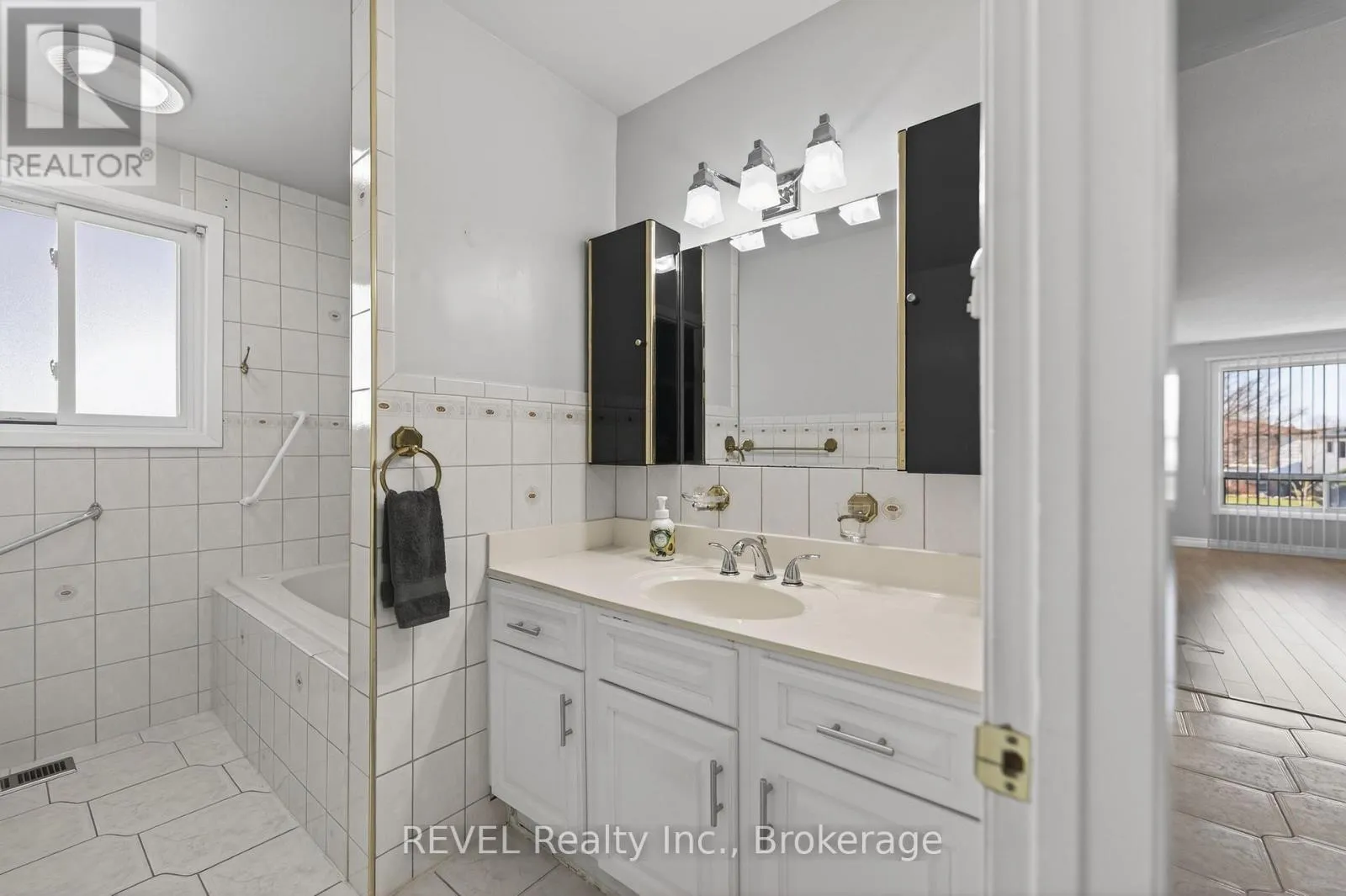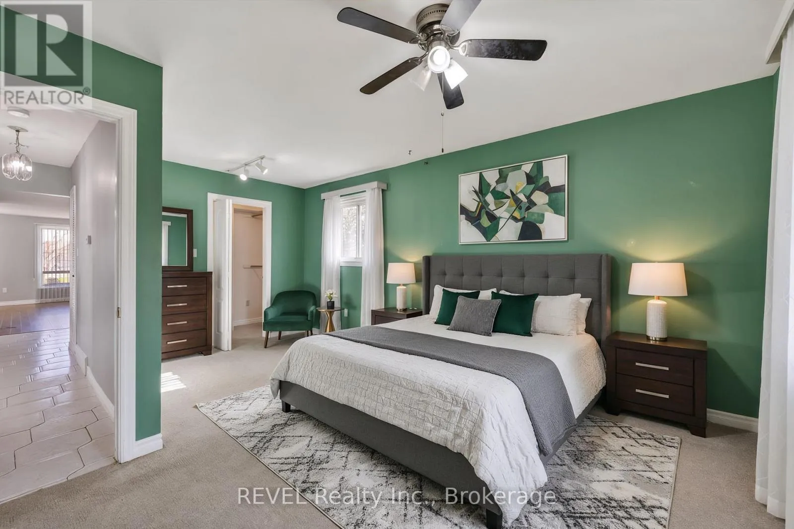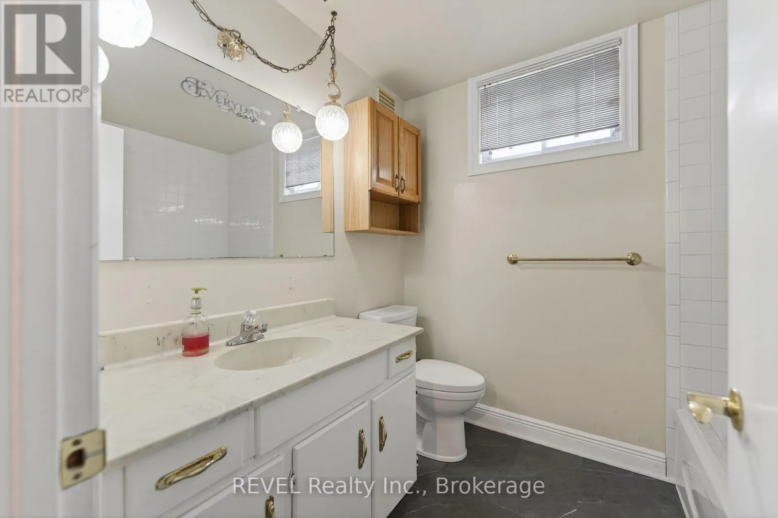 Cross Streets: Barton and Hale St. ** Directions: Barton St to Hale St to Seaton Pl Dr to Lynwood. Welcome to this spacious side-split home in the heart of Stoney Creek offering over 2,500 sq ft of finished living space and a layout that provides flexibility for families, entertaining, or multi-generational living. Ideally located with direct rear gate access to Ferris Park and no rear neighbours, this property offers both privacy and convenience.Step through the insulated front porch into a bright and functional main level featuring an open-concept living and dining area with laminate flooring. The kitchen is equipped with stainless steel appliances and a cozy dinette space. Two bedrooms on the main floor both with carpet flooring, along with a 4-piece bathroom. The spacious primary bedroom includes a walk-in closet and patio doors leading to a raised wood deck overlooking the backyard and park.The fully finished lower level expands the living space with a good sized rec room complete with a gas fireplace, vinyl flooring, and patio doors that walk out to the backyard. Two additional bedrooms with newer vinyl flooring, a 4-piece bathroom, and a laundry room with washer and dryer complete the level. With a separate basement walk-up, this space offers excellent potential for an in-law suite or rental setup. Enjoy outdoor living with a large concrete patio, a three-season sunroom with gas line for a future fireplace, and beautifully landscaped front and rear yards. The fully fenced backyard provides direct gated access to the park and plenty of room for entertaining. Additional highlights include a double car garage, a four-car driveway, roof in good condition (10 years old), furnace and A/C roughly 12 years old, and updated sliding doors. Immediate possession available. Conveniently located close to shopping, schools, parks, and all major amenities. (id:27476)