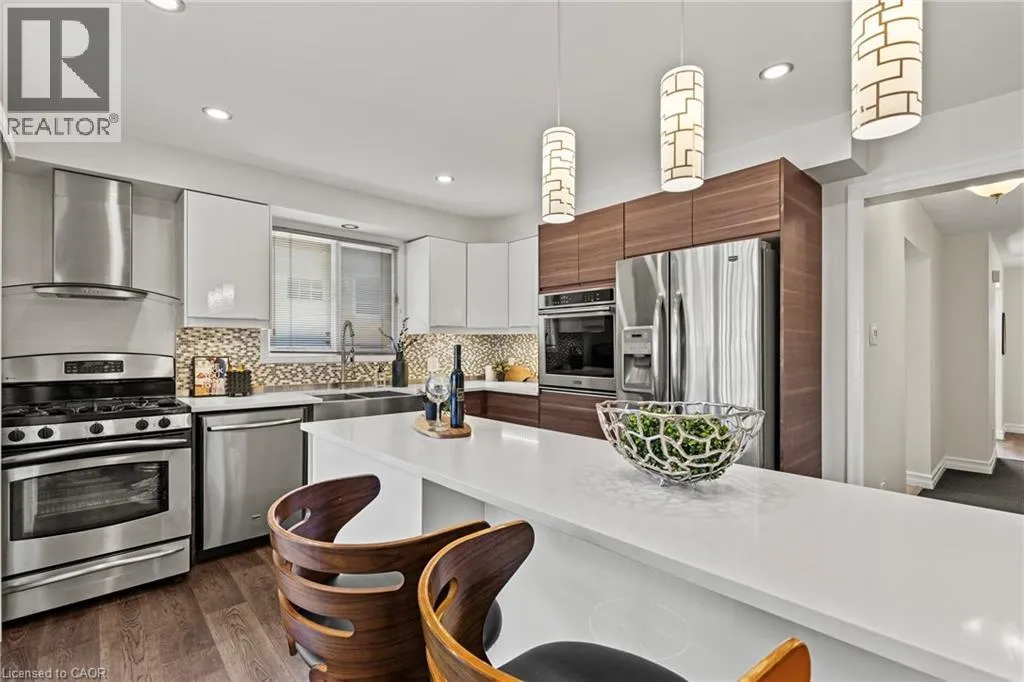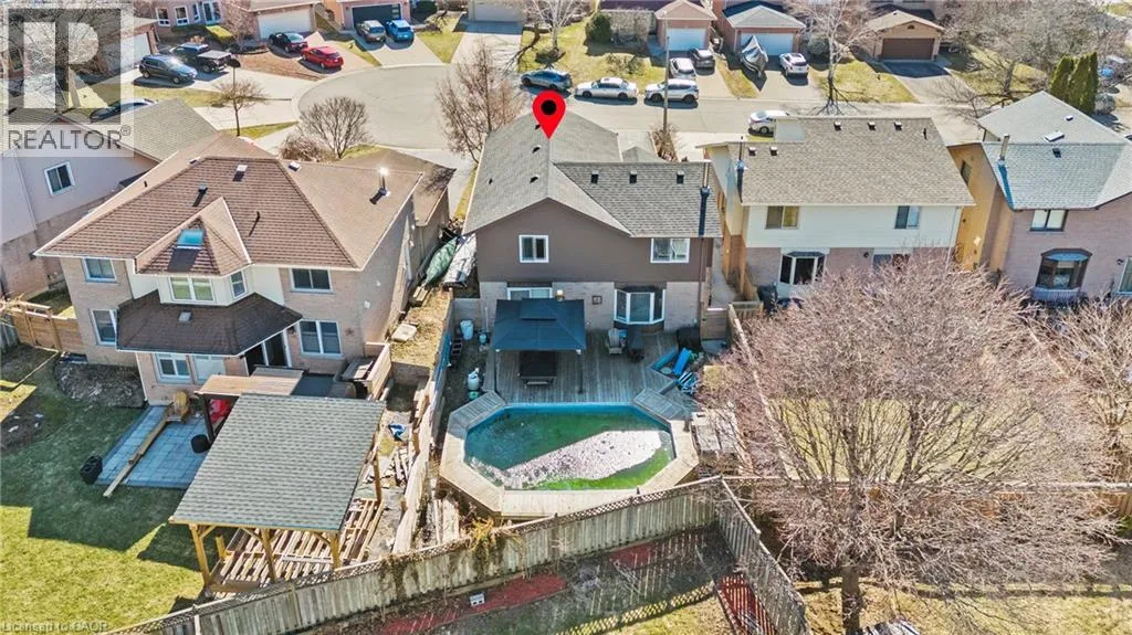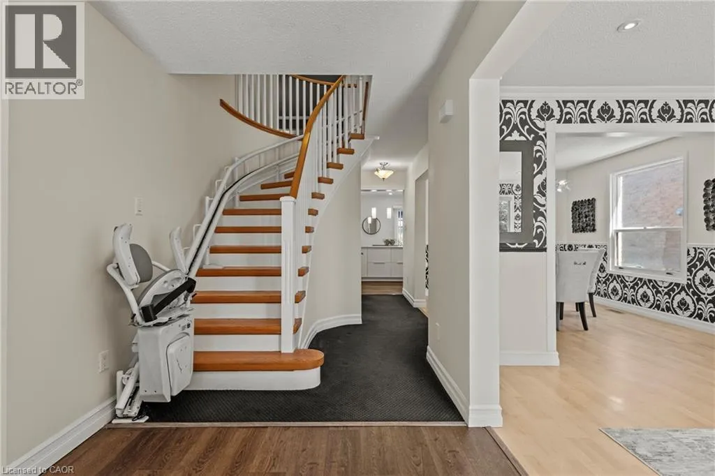 Upper Wentworth - Southpark Ave - Rushdale Dr - Ricardo Crt Make a splash this summer with your very own pool! Tucked away on a quiet court, this upgraded 4+1 bed, 3.5 bath, 2 storey home offers just over 2700 sqft of finished living space and many incredible features perfect for a growing family. The main level contains a welcoming foyer next to a joined living/dining room with large windows and an electric fireplace. Cook in this modern open concept kitchen (2016) with large island, stone countertops, tile backsplash, and built-in stainless steel appliances that overlooks a cozy sunken family room with a brick fireplace with gas insert. A laundry room with access to a powder room, garage, and side entrance rounds out the convenient main floor features. The second level contains 4 generous sized bedrooms with a modern main bathroom (2015) with glass shower and a huge primary bedroom with ensuite and large closets. The fully finished basement contains an exercise room, 5th bedroom, large rec-room, 3 piece bathroom (2022), and tons of storage. Step outside to a fully fenced yard containing a huge wooden deck surrounding an above ground pool (new liner 2024), perfect for relaxing in the sun or entertaining guests. The property offers unique accessibility features such as wheelchair accessible entryway and electric stair lift. Conveniently located near highway access, shopping, restaurants, and everyday amenities. Additional Upgrades: A/C (2023), Furnace (2020), Backflow Valve (2019), Roof (2018), Electrical Panel (2016), 2nd Floor Windows (2016). Won't last long! (id:27476)