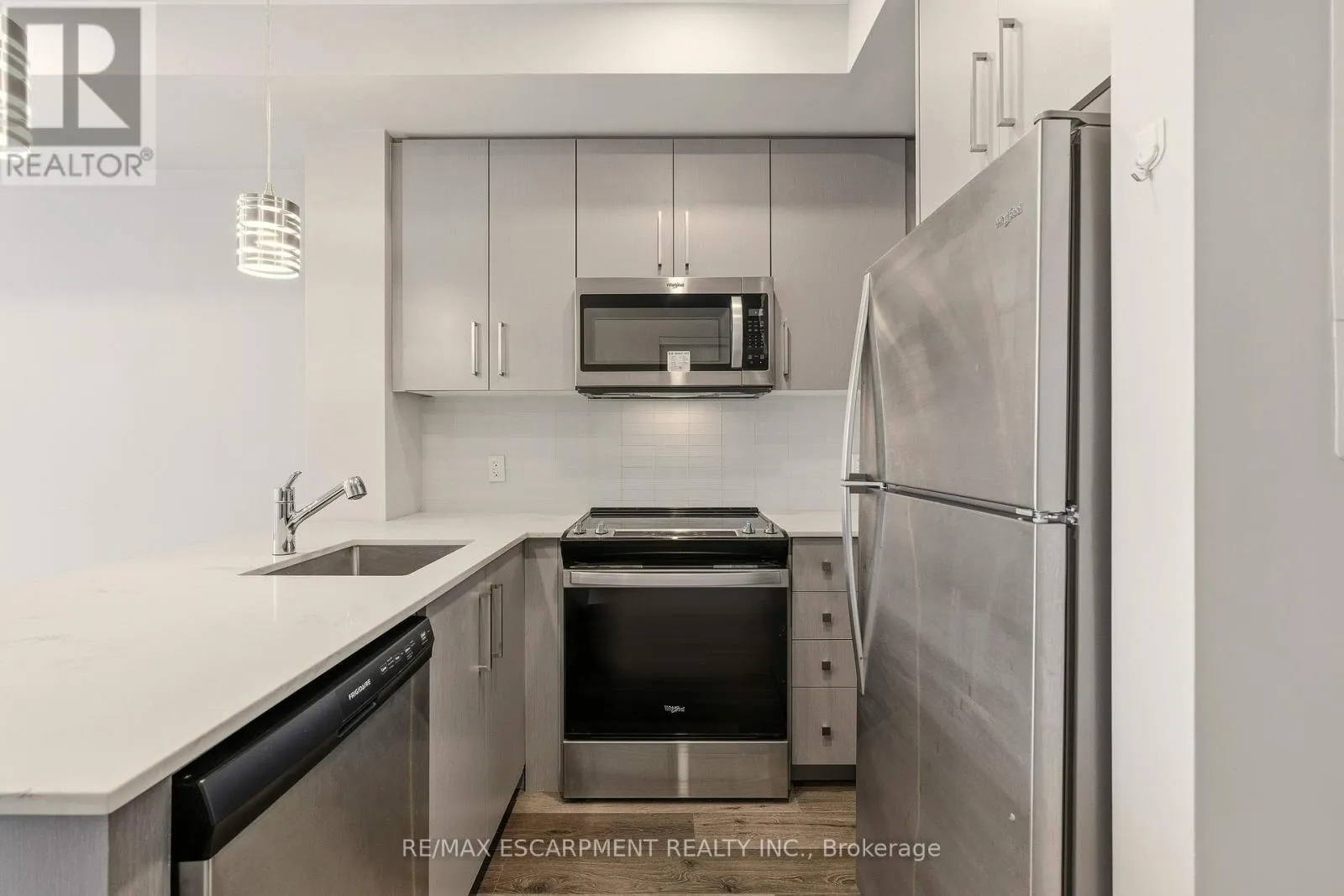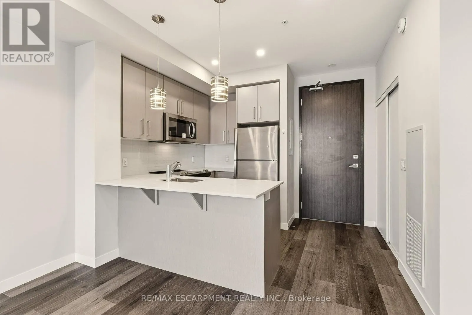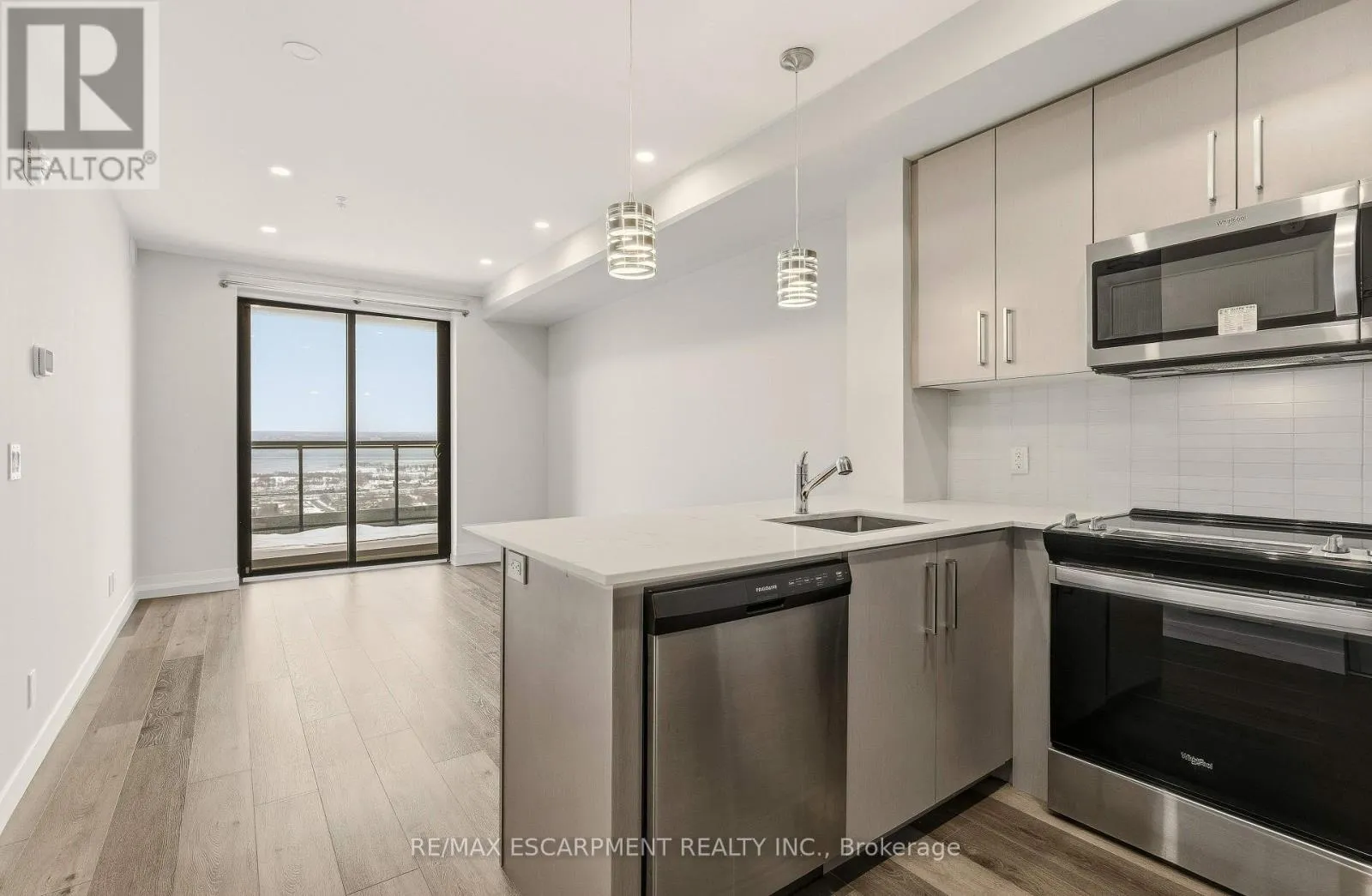 Cross Streets: King St. West. ** Directions: King St. West to Queens St. South. Stylish urban lifestyle living in the heart of Hamilton! This luxurious condo boasts 538 SqFt, 9FT ceilings, Vinyl Flooring & stainless steel appliances. Bright Floor-To-Ceiling windows with open concept living/dinning room & kitchen w/Quartz countertops glass tile backsplash & counter stool seating. Living Room has a walkout to an oversize balcony with a fabulous view of the lake and the escarpment. Convenient In-suite laundry w/ front load washer, Dryer. There is a Locker with this unit. Superb amenities party lounge w/ gorgeous kitchen, Fitness studio, Tranquil Yoga desk, Landscaped rooftop terrace with BBQ's, separate bike storage. Quick walk to Hess Village, Parks, Breweries, Shops, Restaurants & Cafes. Short distance to the prestigious McMaster University & Mohawk College. Art Gallery of Hamilton & First Ontario event Centre just down Queen St! Steps to GO Train & Future Queen Street LRT. Easy commuting on Hwy's & 403 & QEW to Stoney Creek, Niagara, Burlington, Oakville & GTA. (id:27476)