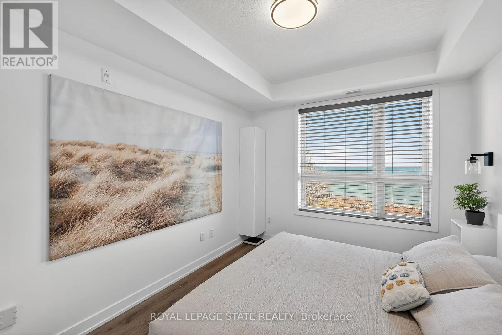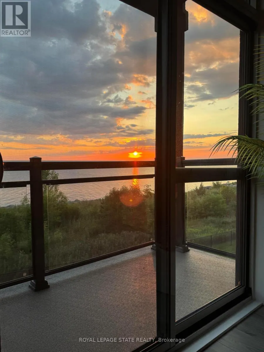 Cross Streets: Frances Avenue. ** Directions: North Service Road to Green Road to Frances Avenue to Southshore Crescent. Stunning two-bedroom corner unit boasting unobstructed lake views and stylish, contemporary design and décor. Highlights of this impeccably presented home include private balcony, open concept layout, upgraded Quartz counters, upgraded kitchen backsplash, slatted wall panelling, kitchen island breakfast bar, stainless-steel appliances and two exclusive underground parking spaces. Enjoy spacious front entranceway, ample windows, abundant natural light, picturesque sunsets and panoramic year-round Lake Ontario views. Building amenities include elegant lobby, welcoming party room, convenient fitness area, large bicycle storage room and roof top patio with scenic Niagara Escarpment and waterfront views. Perfectly located close to the lake, highway, walking trails and shopping with easy access to Hamilton, Burlington and the Niagara area. (id:27476)