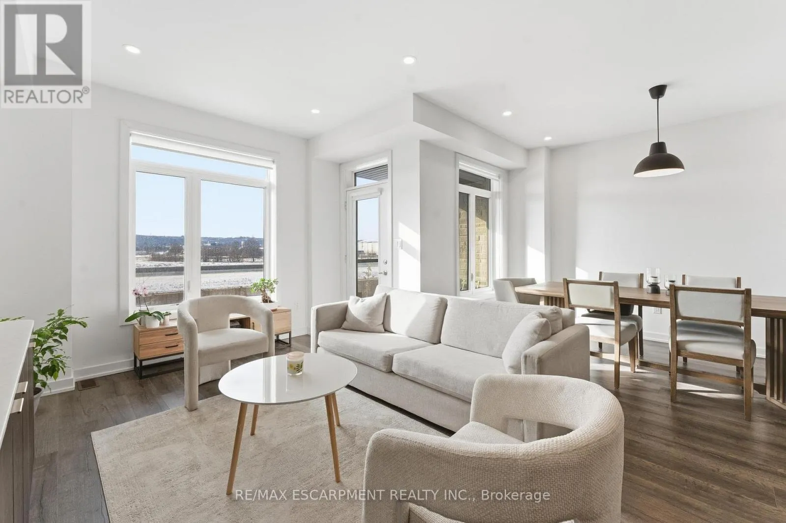 Fruitland / Lakeview / N Service Stylish freehold townhome steps from the lake. This bright, modern 2-bedroom home offers 1,310 sq. ft. above ground with 9-foot ceilings, an open-concept layout, and a sleek kitchen designed for entertaining. The sun-filled living and dining area walks out to a private balcony, perfect for morning coffee or evening drinks. Located minutes from Confederation Beach Park, the harbour, and the GO Station, this home is ideal for commuters, first-time buyers, or downsizers seeking low-maintenance living in a vibrant lakeside community. Set back within the complex for quiet enjoyment, with quick QEW access when you need it. A move-in-ready alternative to condo living - enjoy space, privacy, and ownership with no monthly fees. (id:27476)