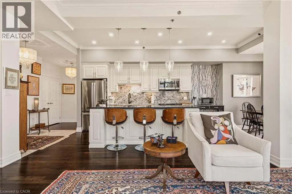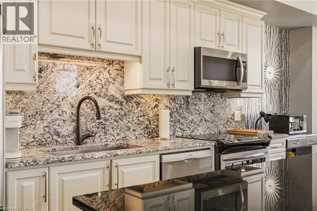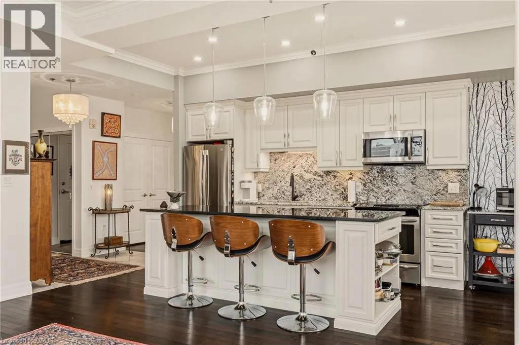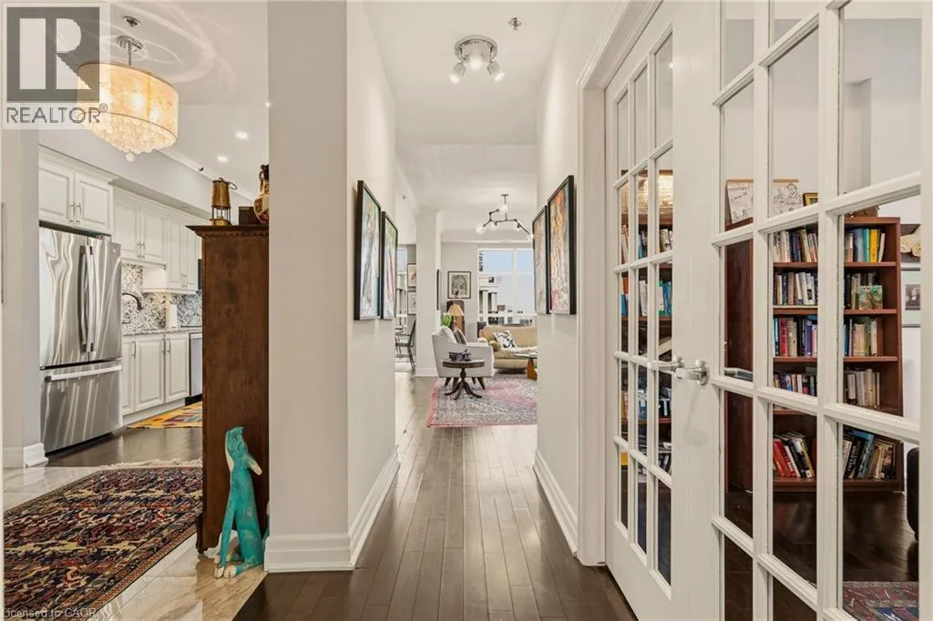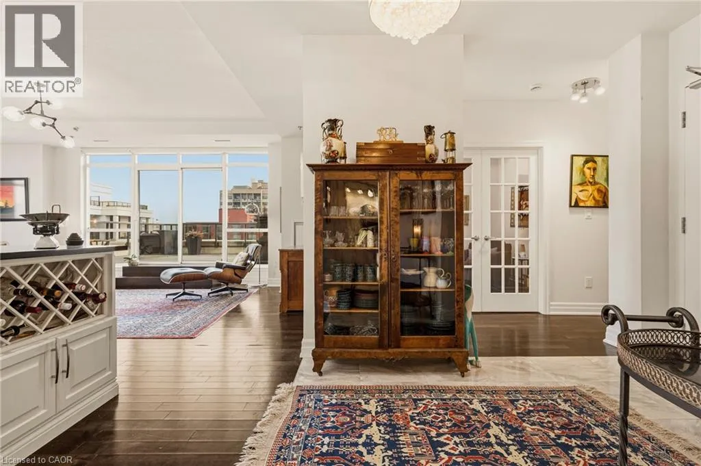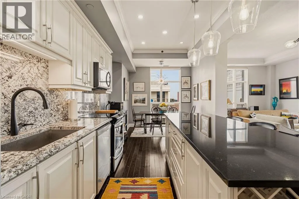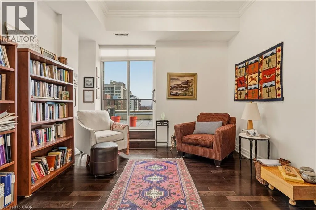 MAIN ST W TO PARK ST S TO CHARLTON AVE W Perched above the vibrant core of downtown Hamilton, this extraordinary penthouse redefines condo living with an unmatched blend of space, style, and outdoor luxury. Spanning an impressive 1,740 sq ft, this rare corner suite is bathed in natural light and showcases sweeping south-eastern views of the city skyline and the stunning escarpment from virtually every angle. Step inside to a thoughtfully designed open-concept layout that offers both flow and distinction, with unique living spaces that cater to everyday comfort and effortless entertaining. The living room and kitchen are the heart of the home, beautifully appointed with high-end finishes, striking stone countertops, and a generous island with bar seatingâperfect for gathering with friends or preparing meals in style. Floor-to-ceiling windows and a sliding glass walk-out seamlessly connect the indoors to an extraordinary outdoor experience. The crown jewel? An expansive private rooftop terrace of almost 1,400 sq ftâan entertainerâs dream and a true urban oasis accessible from the living room, den, and primary bedroom. Whether you're hosting summer soirées, enjoying morning coffee, or unwinding under the stars, this space delivers a lifestyle rarely found in condo living. The bright and spacious primary suite features a 3-piece ensuite and a large walk-in closet. A well-proportioned second bedroom offers its own private balcony retreat, while the versatile den is ideal for a home office or guest space. A 4-piece bathroom, and convenient in-suite laundry complete this exceptional offering. Residents also enjoy a Party Room, Exercise Room and dedicated Bike Room. All of this in a prime downtown location, steps to Hamiltonâs best dining, shopping, schools, and transitâwhere city living meets elevated comfort in a truly one-of-a-kind penthouse residence. (id:27476)