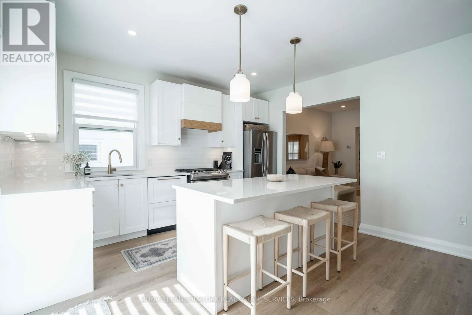 Cross Streets: Concession St. ** Directions: Concession St to East 23rd St. Welcome to this meticulously maintained, turn-key home on the Hamilton Mountain - a true gem. Offering two spacious bedrooms (with the potential to convert the main level into three), two bathrooms, and a fully fenced professionally landscaped yard, this home is designed for both comfort and entertaining. Step out from the kitchen onto the deck and enjoy the perfect outdoor setup for summer evenings and hosting family and friends. Inside, the fully renovated interior showcases a beautifully updated kitchen with a large island, quartz countertops, under-cabinet lighting, stainless steel appliances, a dedicated bar area with a beverage/wine fridge, and sleek floating oak shelves. Additional upgrades include luxury vinyl flooring throughout, modern railings, pot lights, renovated bathrooms, main floor laundry with a 2024 washer and dryer, a custom-built garden shed, and an owned tankless water heater. A rare double-car driveway adds exceptional value for the area, while the basement offers the perfect retreat fora hobbyist, handyman, or anyone in need of extra storage space. Located in a fantastic family-friendly neighbourhood, just steps to the shops, restaurants, patios, and everyday amenities of Concession Street, this is a home that truly checks all the boxes. (id:27476)