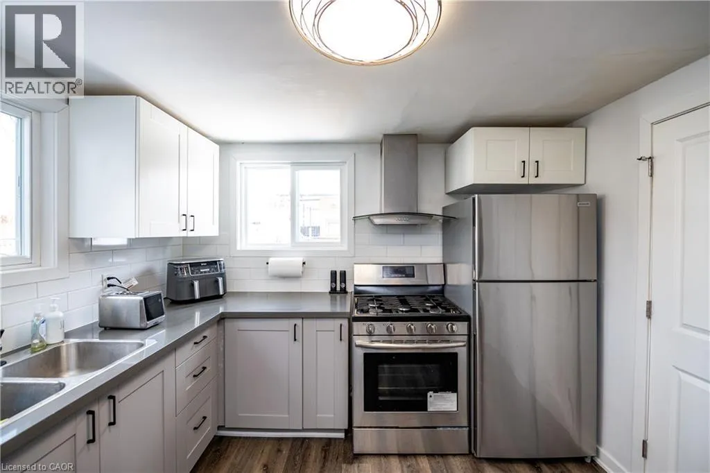 CAMPBELL AVE. and FREDERICK AVE. This charming 2-bedroom, 1-bathroom bungalow is ideal for first-time buyers or those looking to downsize. Recently updated with fresh paint throughout, the home features a modern kitchen complete with stainless steel appliances, quartz countertops, and a bright newer windows that fill the space with natural light. The open layout, new flooring, and neutral finishes make it truly move-in ready, just unpack and enjoy. Step outside to a spacious backyard, perfect for summer BBQs, gardening, or a safe play area for children. The private side driveway accommodates up to 4 cars and leads to a detached garage, offering plenty of parking and storage. Located in a family-friendly Hamilton neighbourhood, this home offers easy access to schools, parks, shopping, and transit! (id:27476)