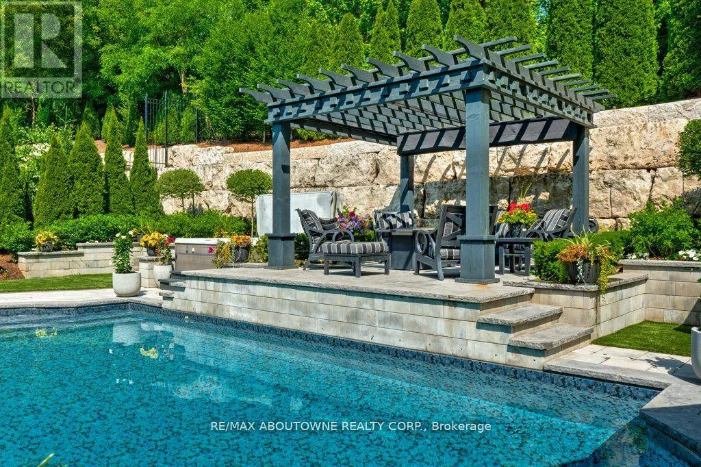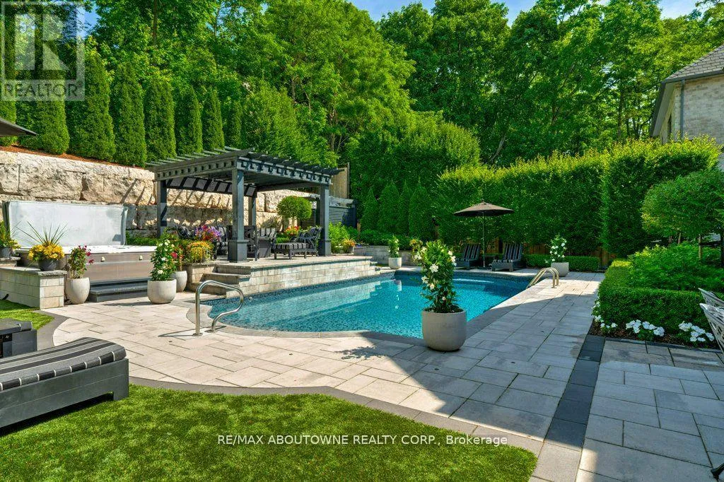 Green Ravine Drive Welcome to 47 Legacy Lane a true gem nestled in the heart of Ancaster within an exclusive, private gated community. This stunning home is the perfect blend of luxury, craftsmanship, and functionality, offering a thoughtfully curated lifestyle both inside and out. From the moment you arrive, the quality of this home is unmistakable. The exterior has been transformed into a private resort-like oasis featuring concrete stone inlays, a hot tub, a pergola with a fire table, a fully equipped outdoor kitchen with built-in BBQ, and a breathtaking saltwater pool. Surrounded by mature trees, professional landscaping, perennial gardens, artificial turf, and a built-in irrigation system, the grounds offer beauty and ease of maintenance year-round. Inside, the home continues to impress with oversized doors and trim, hardwood flooring throughout, and 10-ft ceiling's that enhance the sense of space and elegance. The open-concept layout includes grand principal rooms, a dramatic two-storey family room, and a dreamy chefs kitchen perfect for entertaining. The MAIN FLOOR PRIMARY SUITE offers comfort and privacy, while the additional four bedroomsand3.5 bathrooms provide ample space for family and guests. The expansive lower level features above-grade windows and is brimming with potential ideal for creating a custom gym, media room, or in-law suite. Perfectly located near conservation areas, walking trails, golf courses, top-rated schools, shops, and major highways, this is a rare opportunity to own a turnkey luxury home in one of Ancaster's most coveted communities. Move in and start enjoying everything this exceptional property has to offer. (id:27476)