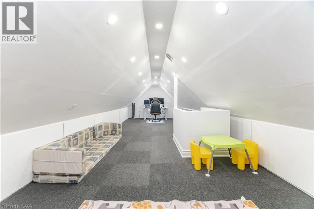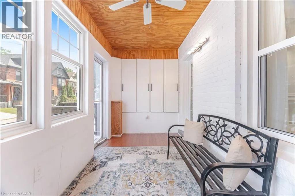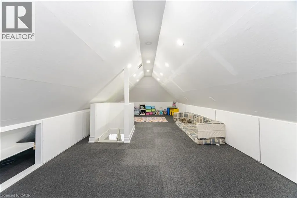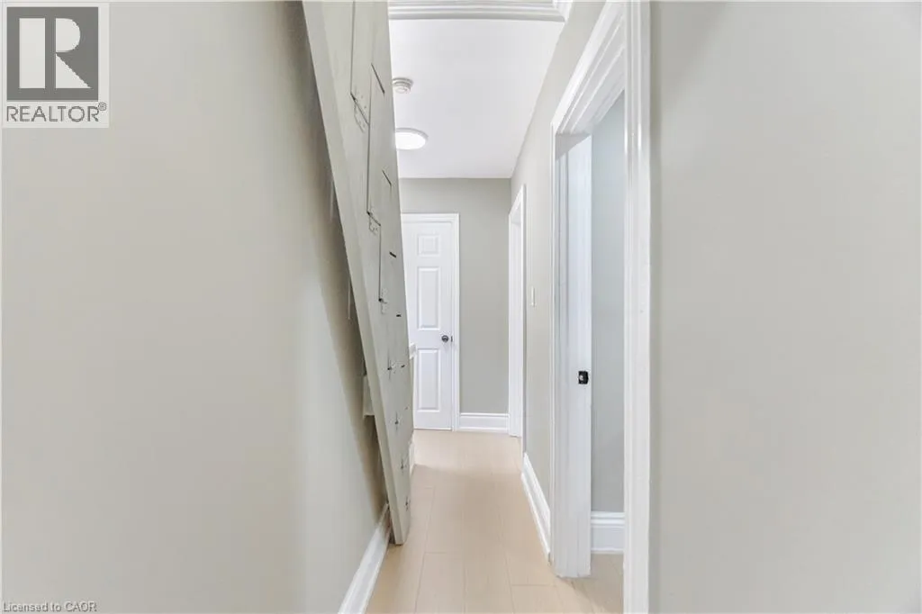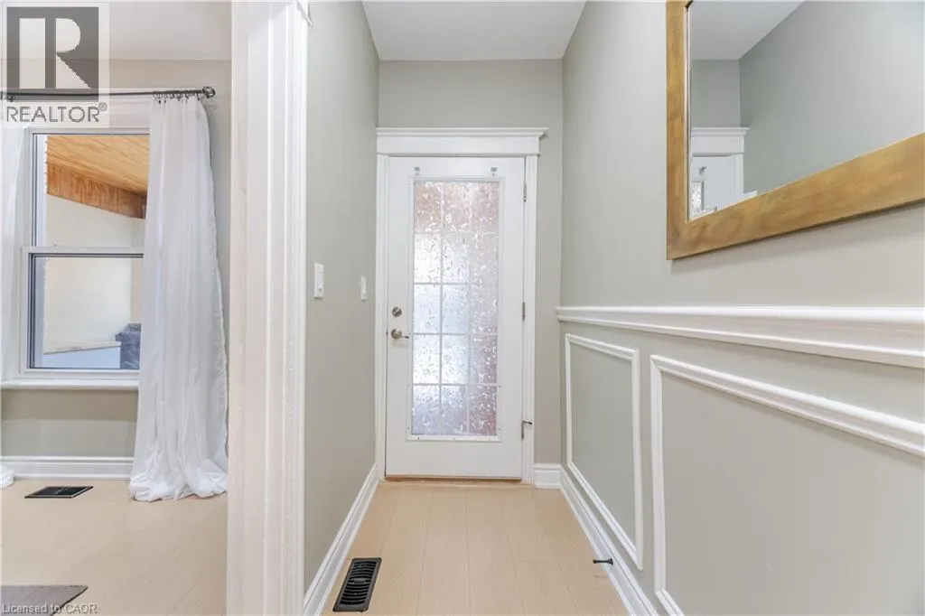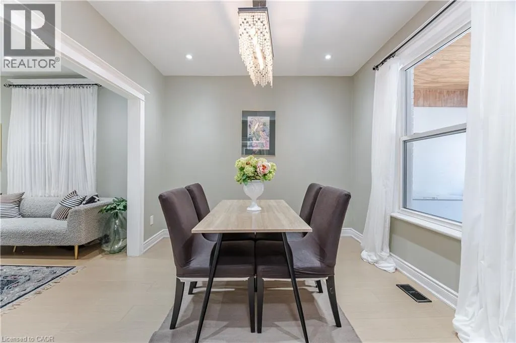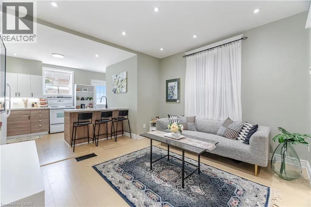 Wentworth St N to Wilson St to Stirton St Welcome to 61 Stirton St a beautifully renovated Victorian-style home in the heart of Hamilton, where timeless character meets modern upgrades. This move-in ready 3-bedroom, 2-bathroom detached double-brick home offers a bright interior and a functional layout ideal for everyday living. The main level features 9-foot ceilings, fresh paint, and durable waterproof laminate flooring. The open-concept kitchen is designed for both function and entertaining, complete with a modern island, valance lighting, and new quartz countertops and backsplash, overlooking a private, fully fenced backyard. The yard was professionally regraded with exposed concrete and stamped borders, perfect for outdoor enjoyment. Additional features include LED pot lights, second-floor laundry, an enclosed front porch, and new Red Oak stairs. The finished attic adds versatile living space. Major updates include: roof shingles (2023), central A/C (2022), gas furnace (2023), full interior waterproofing with lifetime warranty (2022), exterior waterproofing (2022), updated windows, and lead pipe removal (2021). Includes one parking space. A fantastic opportunity in a central Hamilton location-don't miss it! (id:27476)