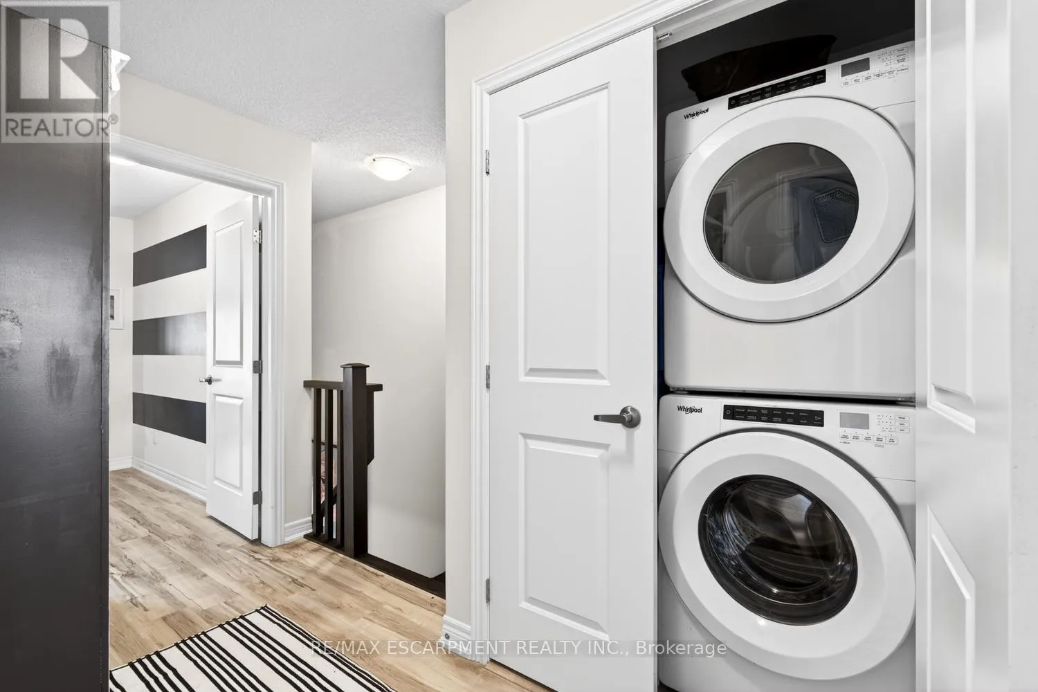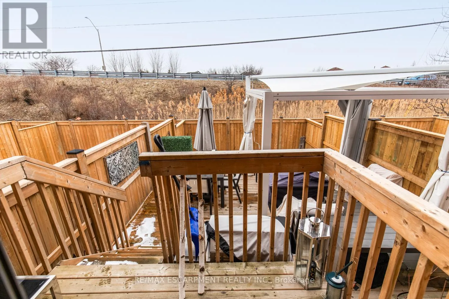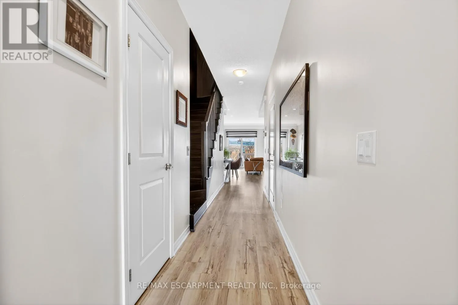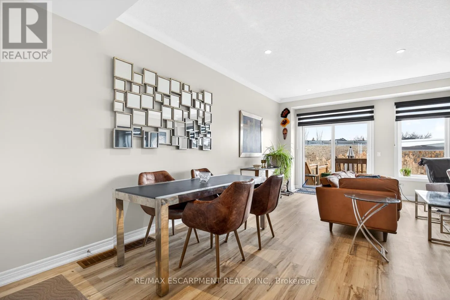 Cross Streets: Baseline Rd. ** Directions: Winona Rd - Baseline Rd. Beautiful 3 bedroom, 2.5 bathroom townhome with over 2,200 sq ft of finished living space. Bright open concept main floor with modern flooring, pot lights, and spacious living and dining areas. Stylish kitchen with dark cabinetry, stone countertops, stainless steel appliances, subway tile backsplash, and large island with breakfast bar. Upper level offers a generous primary bedroom, two additional bedrooms, and convenient second-floor laundry. Finished lower level provides extra living space for a rec room, office, or gym. Private fenced backyard with deck and patio area. Attached garage with driveway parking. Great location close to parks, schools, shopping, and quick highway access. (id:27476)
