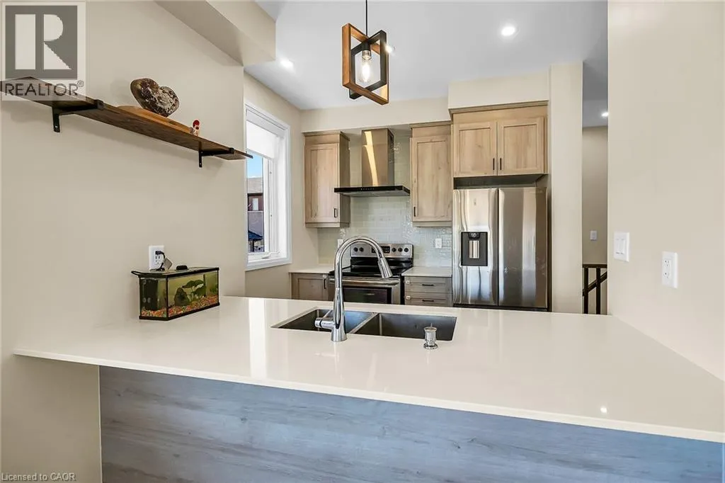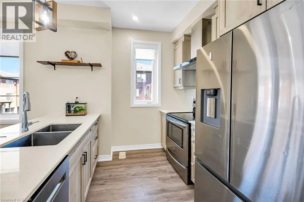 BARTON TO WOODWARD Welcome to this fantastic 3-bedroom, 2-bathroom end-unit townhome located in the heart of Hamilton! Offering both style and function, this home features a bright, open layout with an abundance of large windows that flood the space with natural light. The living and dining areas create the perfect setting for family gatherings and relaxation. Enjoy the added privacy of being an end unit. The kitchen is well-appointed, offering ample counter space and cabinetry. Step outside to your own private balcony, a perfect spot to unwind, enjoy your morning coffee, or relax with a book in the fresh air. Conveniently located just minutes from highway access, local shops, and all essential amenities, this home truly combines comfort and convenience. (id:27476)