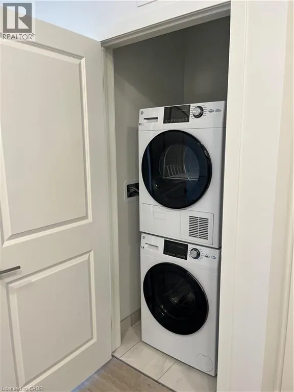 North Service Rd to Green Rd NEW, clean & never lived in; be the 1st!! Welcome yourself home to the NEW MUSE condominium. 1 BR condo on the 6th level, steps to ROOFTOP patio, BBQ's & all amenities. This MAUVE unit features with breathtaking LAKEVIEWS & a PRIVATE BALCONY (650 sqft total; 525 interior, 35 exterior) Environmentally friendly geo-thermal heating/cooling means TENANTS only pay HYDRO/WATER above their rent. HEAT INCLUDED! Bright & inviting 9' ceilings, natural light floods in through the wall to wall windows, stainless steel kitchen appliances, stackable washer/dryer included INSUITE! Easy to maintain vinyl flooring in open space, tile flooring in oversized bathroom & laundry areas. WALKOUT to lovely BALCONY. Includes UNDERGROUND PARKING & LOCKER STORAGE. Stellar amenities include SMART Home technology (APP-based climate control, digital entry, energy monitoring, parcel locker etc), Wellness room, Pet Spa, Party room, Art Lounge, Roof Top 392 sq ft TERRACE with BBQ's & MORE! This DESIRABLE Stoney Creek location is steps to the WATERFRONT & LAKE ACCESS; Peaceful walks & relaxation just beyond your doorstep. This neighbourhood is 2nd to none featuring easy access to Pickle ball courts, Confederation Park Trail into Burlington, tennis court, minutes to GO Train & easy QEW highway access. (id:27476)