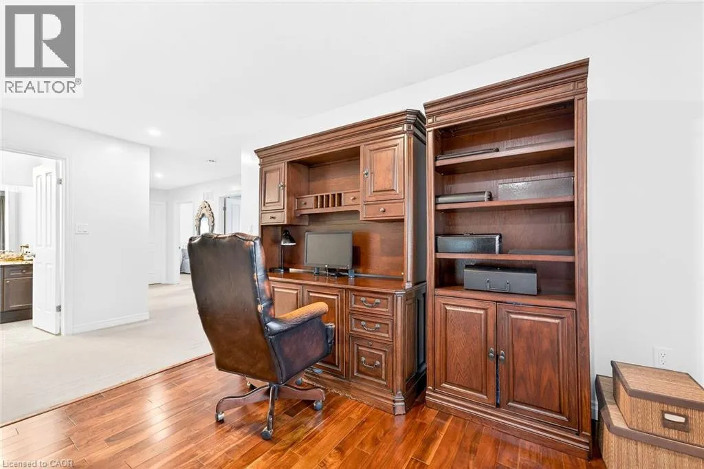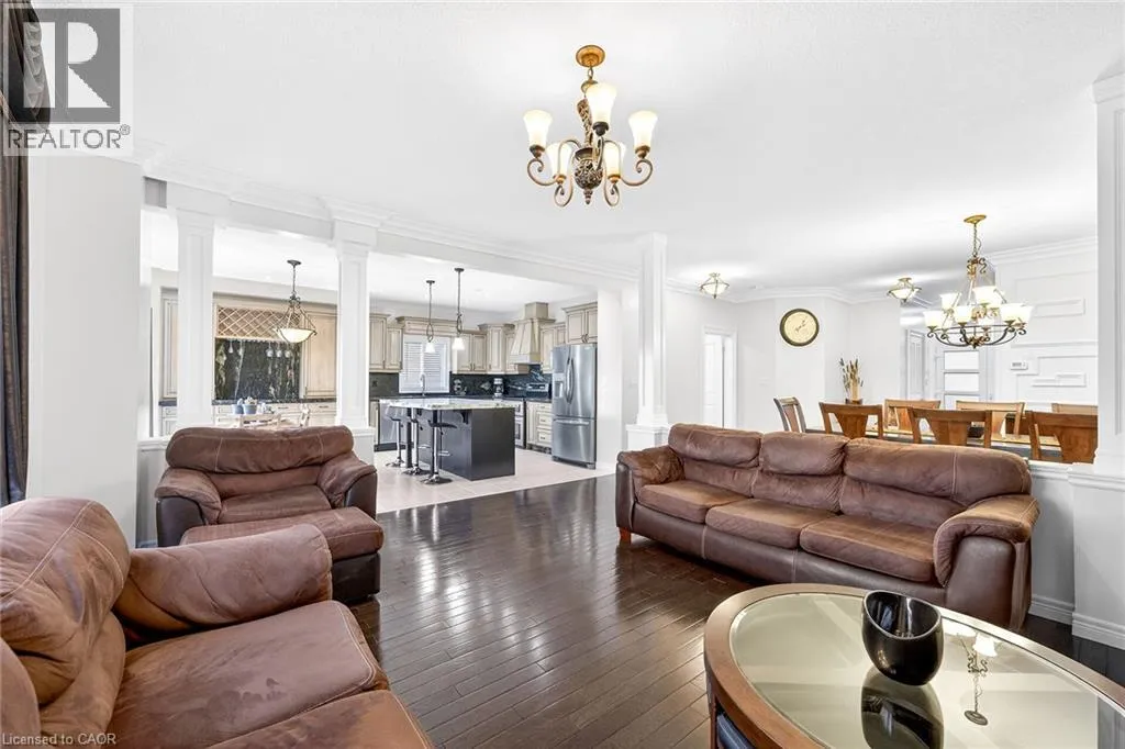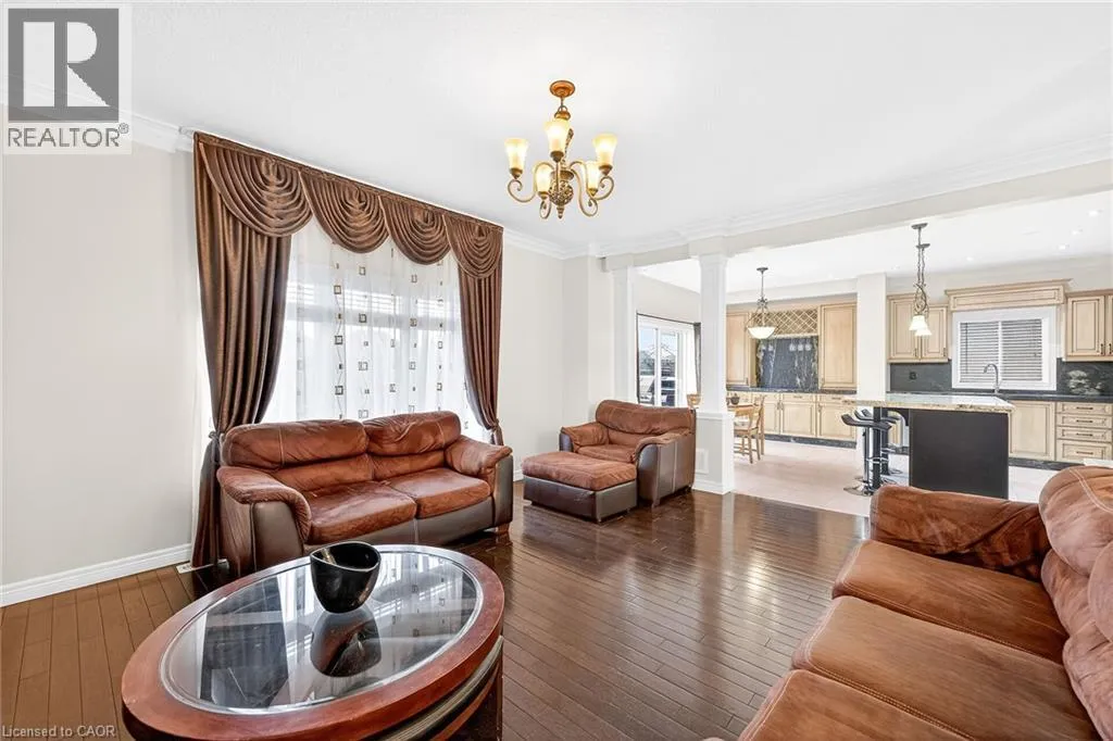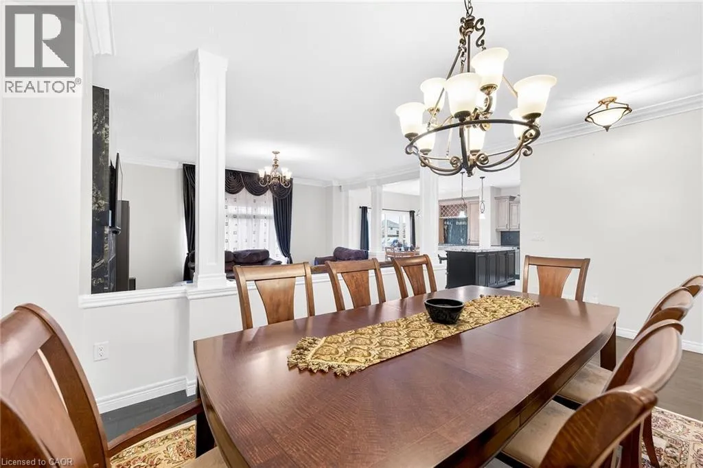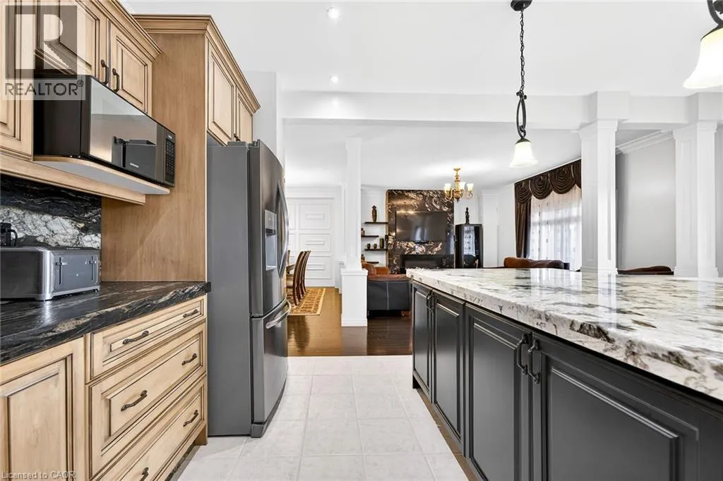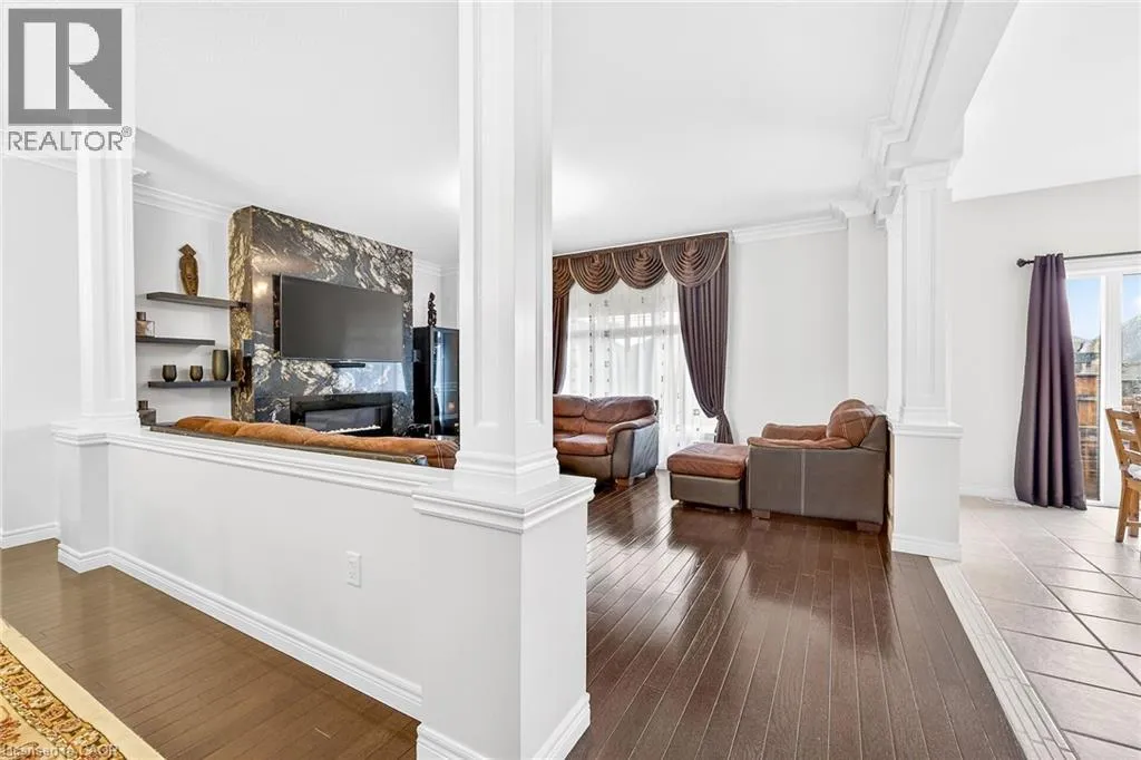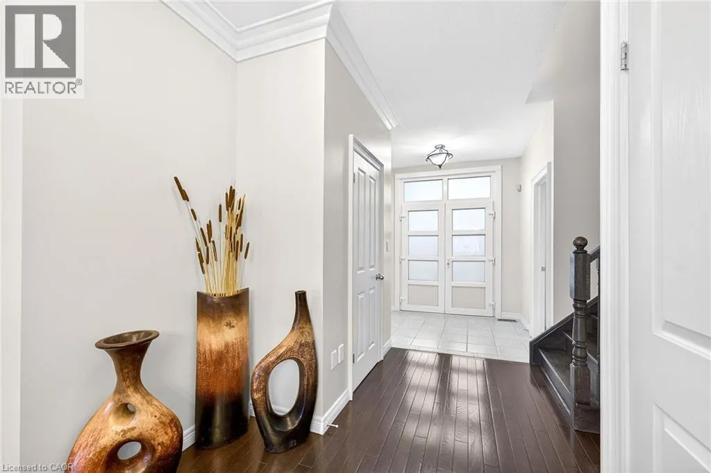 Raymond to Irwin Ave Welcome to this beautifully appointed home in Ancasterâs Meadowlands. This solid 2 story, 4 bedroom home offers 2,724 sq ft featuring a grand foyer, 9ft ceilings, crown moulding, hardwood flooring and tile throughout the main level. Presenting an open-concept layout with separate dining area & spacious living room with fireplace. The upgraded eat-in kitchen showcases granite countertops, pot lights, a center island, ample cabinetry and walk-out to the deck. This level also includes the convenience of having a main level laundry room plus a pantry closet, interior garage access, and a modern powder room. Great space that caters to the entire family. Upstairs, youâll find four generous bedrooms plus a bonus area perfect for an office or library. Notice the impressive primary bedroom with double walk-in closets and a luxurious 5-piece ensuite. A lovely 4-piece bathroom completes the upper level. The partially finished basement presents plenty of space with an exercise area, 9-foot ceilings, a second fireplace, full bathroom rough-in and plenty of room for storage. Just use your imagination to recognize the excellent potential for additional living space. Enjoy the outdoors with a quality made two-tier deck, pergola, and a large shed, providing a comfortable setting for relaxation or entertaining guests. A buffer of greenspace between rear neighbours adds an extra level of privacy. Complete with a double driveway, double garage and imported German-made front door, this home is ideally situated on the quiet end of the street, in a family-friendly neighbourhood. A spacious and well-maintained home that easily accommodates the evolving needs of a growing family. (id:27476)